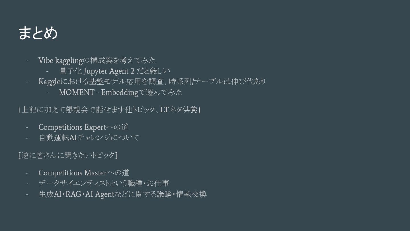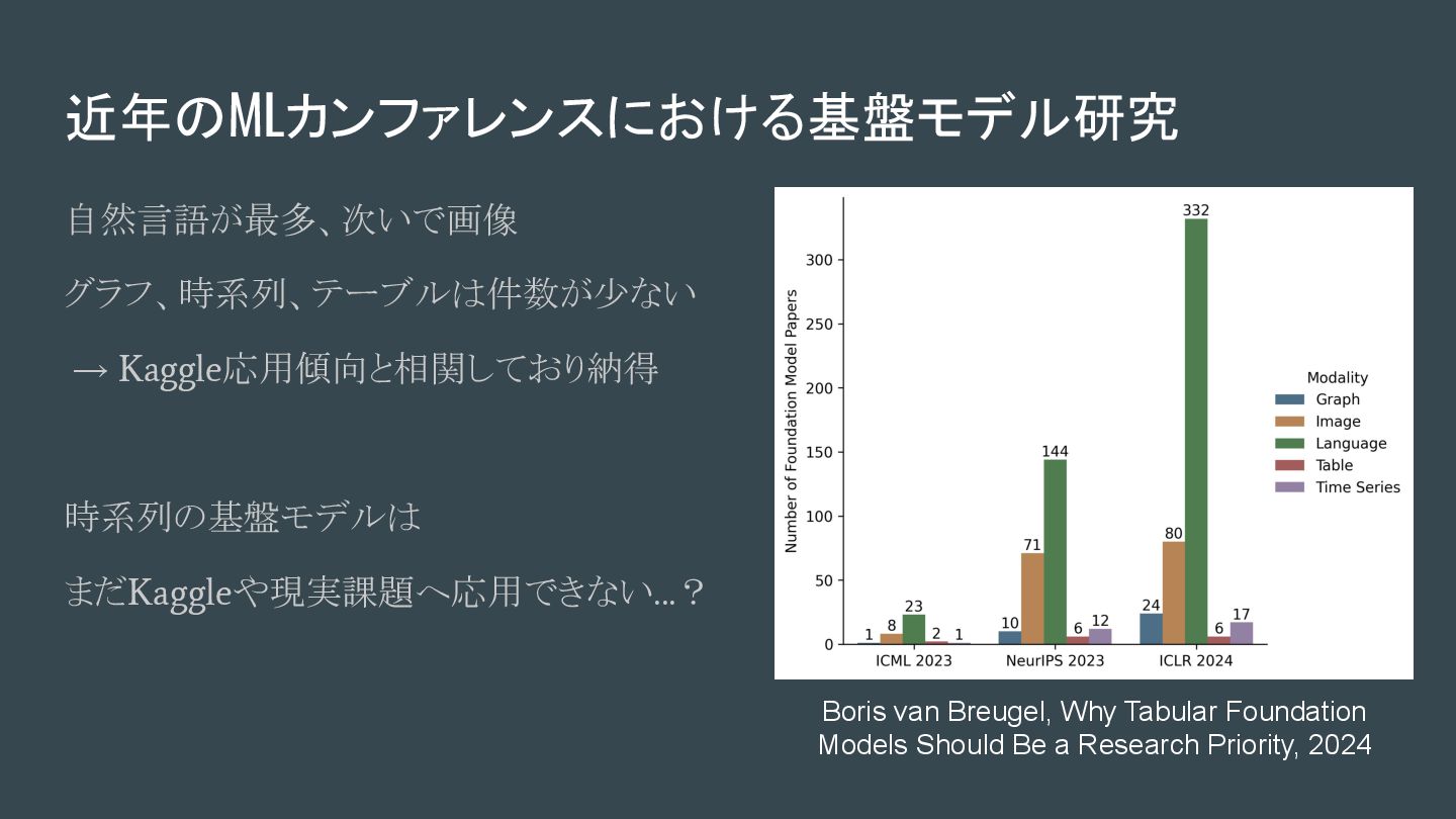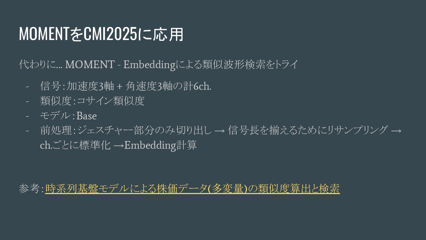 (2024, ) - [2402.03885] MOMENT: A Family of Open Time-series Foundation Models - MOMENT: A Family of Open Time-series Foundation Models, ICML'24 - 時系列データの多様なタスク(予測、分類、異常検知、補間など)に対応可能な汎 用の時系列基盤モデルとして提案されているモデルファミリー - Small, Base, Large - Transformerベース (アーキテクチャ・優位性、詳細理解できていないですごめんなさい ) - 時系列の表現学習が可能、Embedding 計算が可能 - 先人による日本語詳細解説:時系列基盤モデルへ①:MOMENT【論文】
