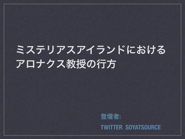 ϛεςϦΞεΞΠϥϯυʹ͓͚Δ ΞϩφΫεڭतͷߦํ ొஃऀ: TWITTER SOYATSOURCE