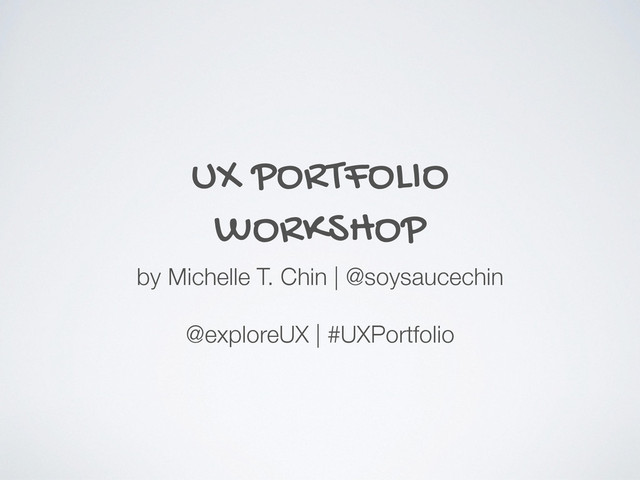 Here are the slides from the UX Portfolio Workshop I did at exploreUX (a DC area meetup for UX enthusiasts) on 4/22/14. The workshop was part presentation and part activities to get participants in the right mindset for creating their UX portfolios.