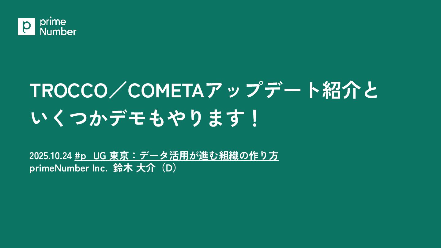 TROCCO/COMETAアップデート紹介と いくつかデモもやります! 2025.10.24 #p_UG 東京:データ活用が進む組織の作り方 primeNumber Inc. 鈴木 大介(D)
