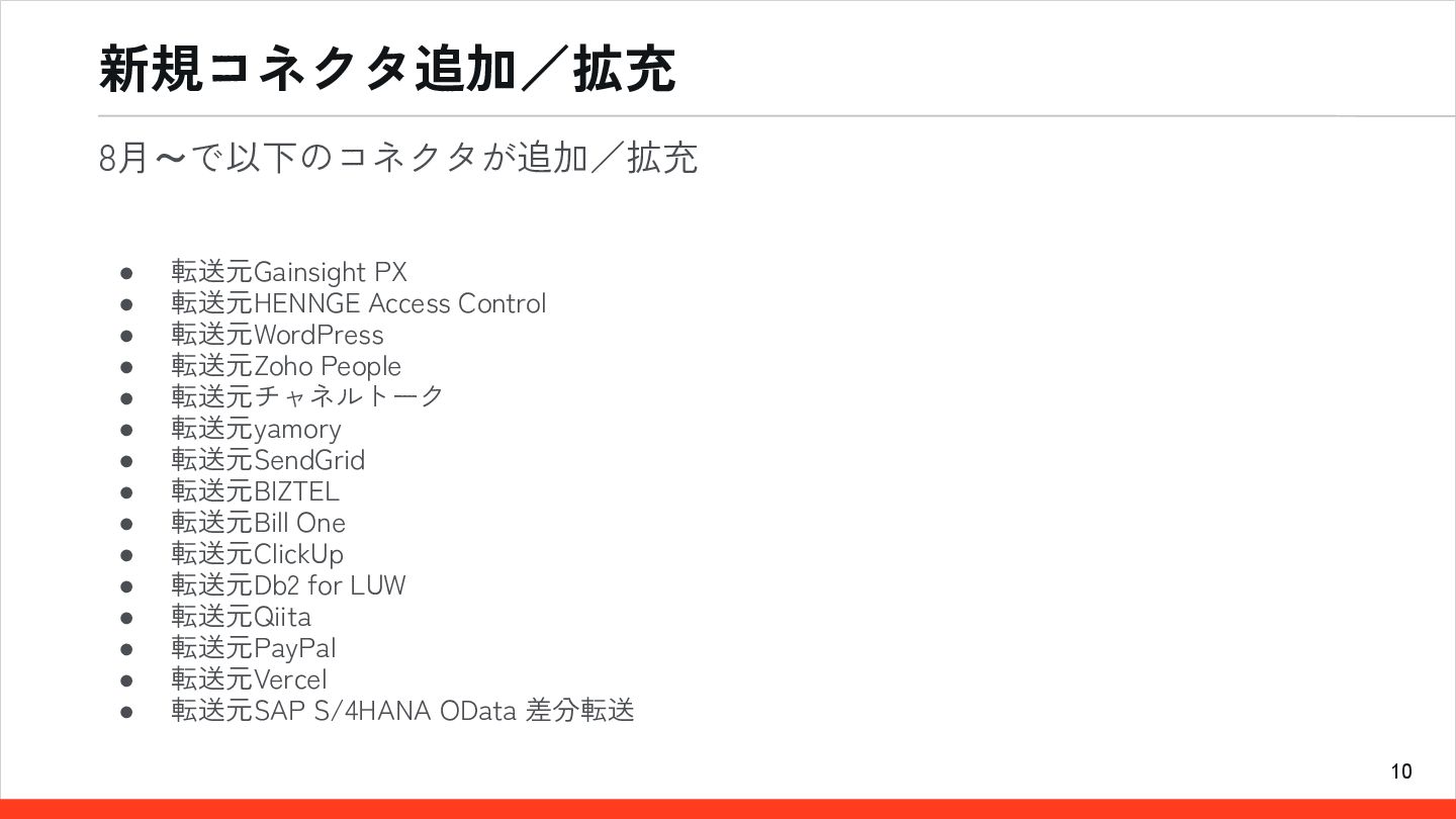 10 新規コネクタ追加/拡充 • 転送元Gainsight PX • 転送元HENNGE Access Control •