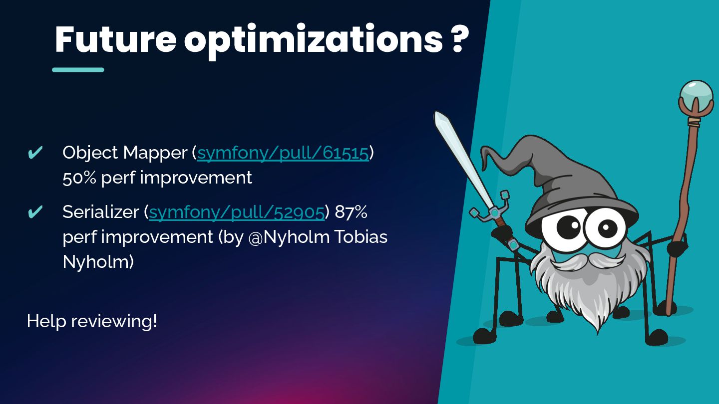 Future Optimizations: Highlighting ongoing work in the Object Mapper and Serializer components that promise up to 50% and 87% performance improvements, respectively.