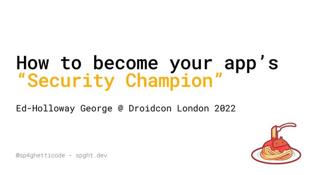 In this session, we will take an introductory look at mobile security, the threats we face as mobile developers and the steps you can take to become a 'security champion' for your app to protect your business and, most importantly, your users.