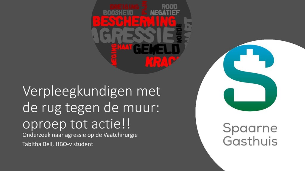 met agressie en geweld van de verpleegkundigen op de afdeling Vaatchirurgie kunnen geoptimaliseerd worden door de huidige E-learning aan te vullen of echt toe te spitsen op het beleid van het SG en het verpleegkundige beroep.