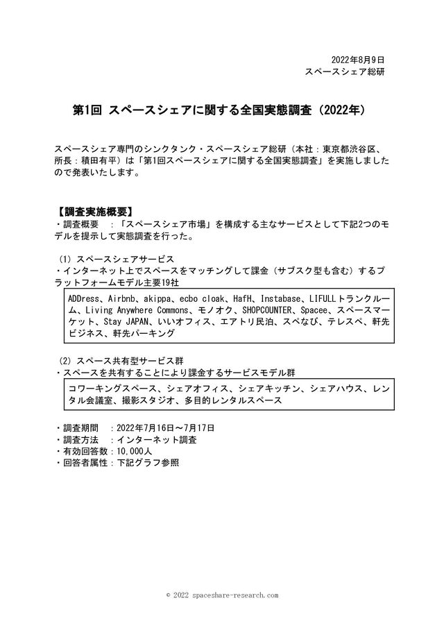・調査名/スペースシェア総研 「 第1回スペースシェアに関する全国実態調査」