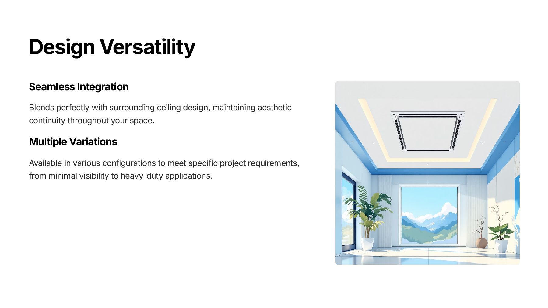 Each ceiling trap door unit is GREENPRO certified, reflecting our commitment to eco-friendly manufacturing practices, energy efficiency, and environmental responsibility. Designed for flexible sizing, our systems can be customized to fit any ceiling layout while maintaining a sleek and seamless appearance. The precision-engineered design ensures easy installation, smooth operation, and long-term durability, minimizing maintenance requirements.
