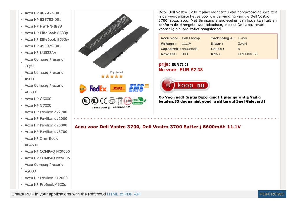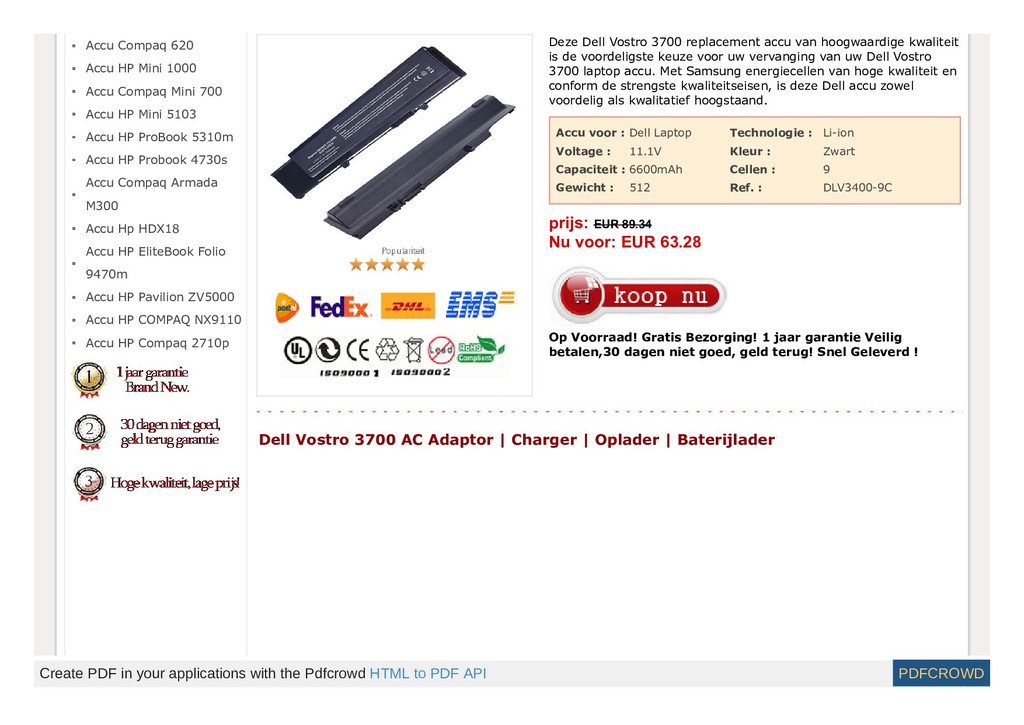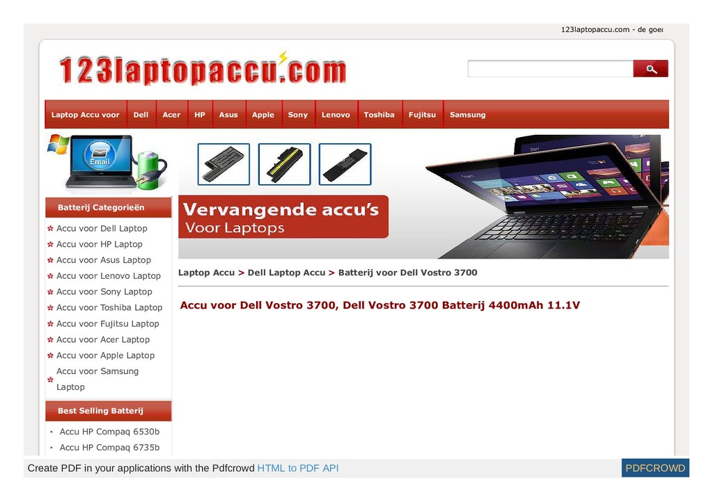 http://www.123laptopaccu.com/dell-vostro-3700.html Deze Dell Vostro 3700 replacement accu van hoogwaardige kwaliteit is de voordeligste keuze voor uw vervanging van uw Dell Vostro 3700 laptop accu. Met Samsung energiecellen van hoge kwaliteit en conform de strengste kwaliteitseisen, is deze Dell accu zowel voordelig als kwalitatief hoogstaand.