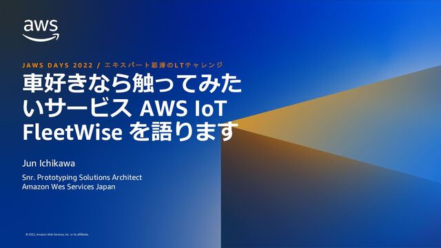 JAWS DAYS 2022の「AWS SA/エキスパート怒濤のLTチャレンジ」で話をした AWS IoT FleetWiseの紹介 https://jawsdays2022.jaws-ug.jp/sessions/A17/