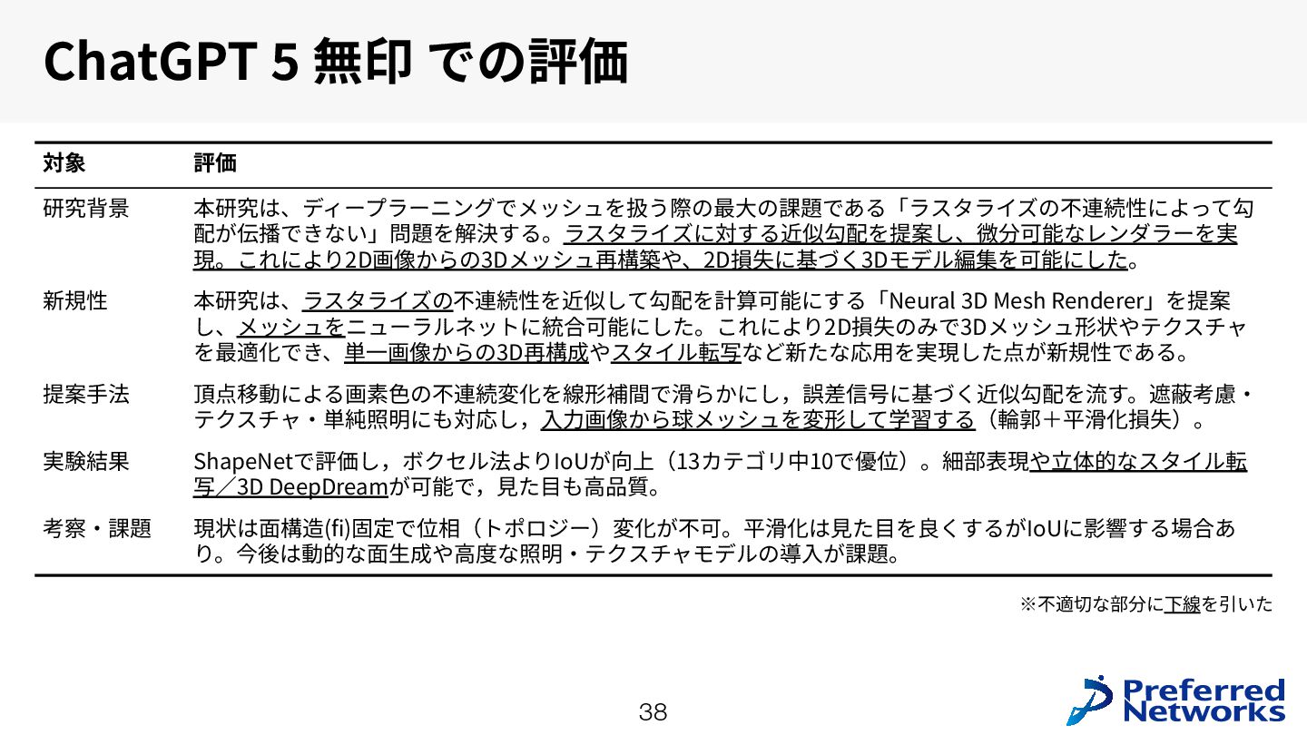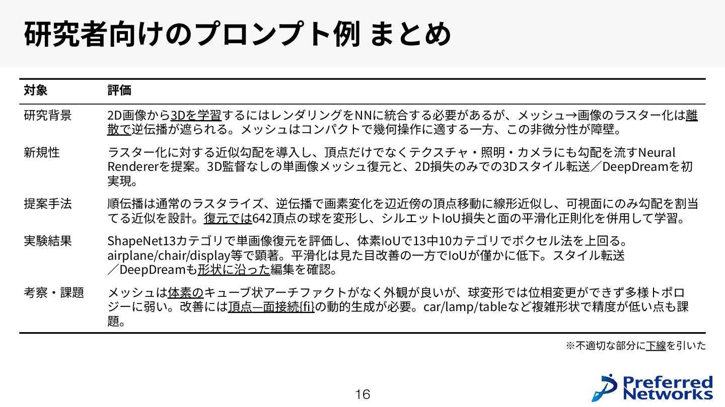 - 深層学習と3Dキャプチャ・3Dモデル生成(土木学会応用力学委員会 応用数理・AIセミナー) https://speakerdeck.com/pfn/20250109_jsce_pfn
