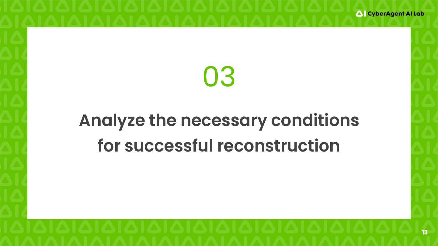 13. 16 Investigation of the conditions for successful reconstruction We investigated