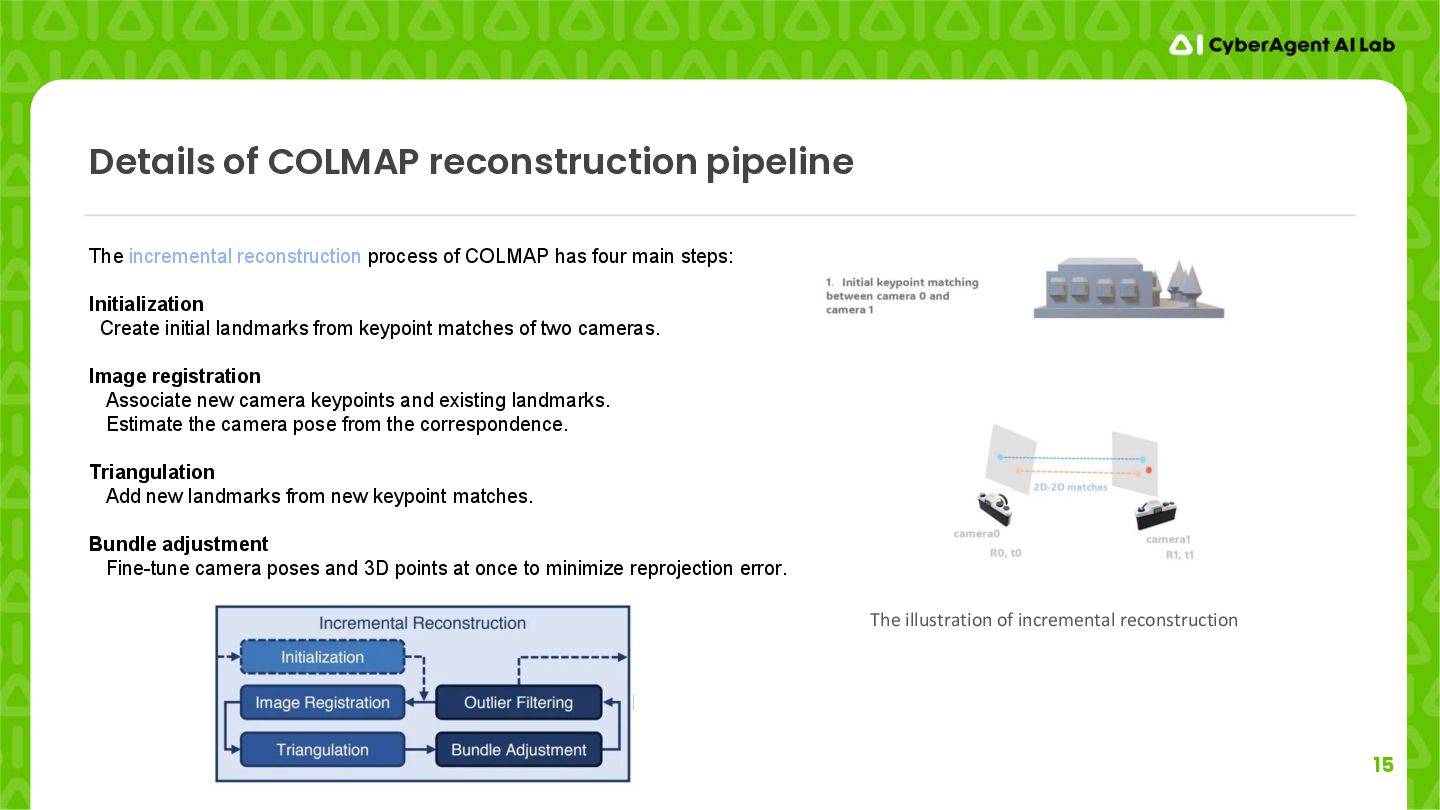 12. 15 Details of COLMAP reconstruction pipeline The illustration of incremental