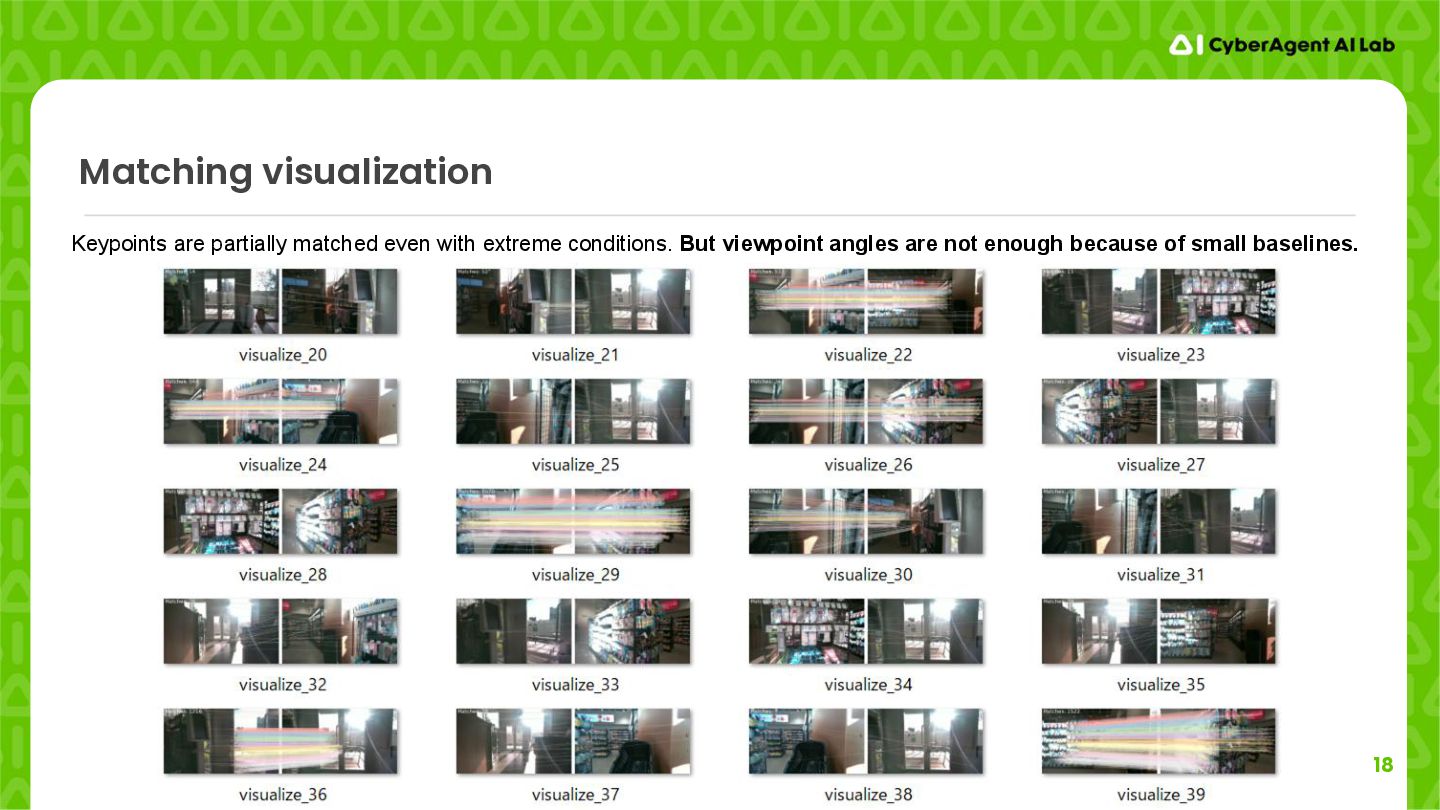15. 18 Matching visualization Keypoints are partially matched even with extreme