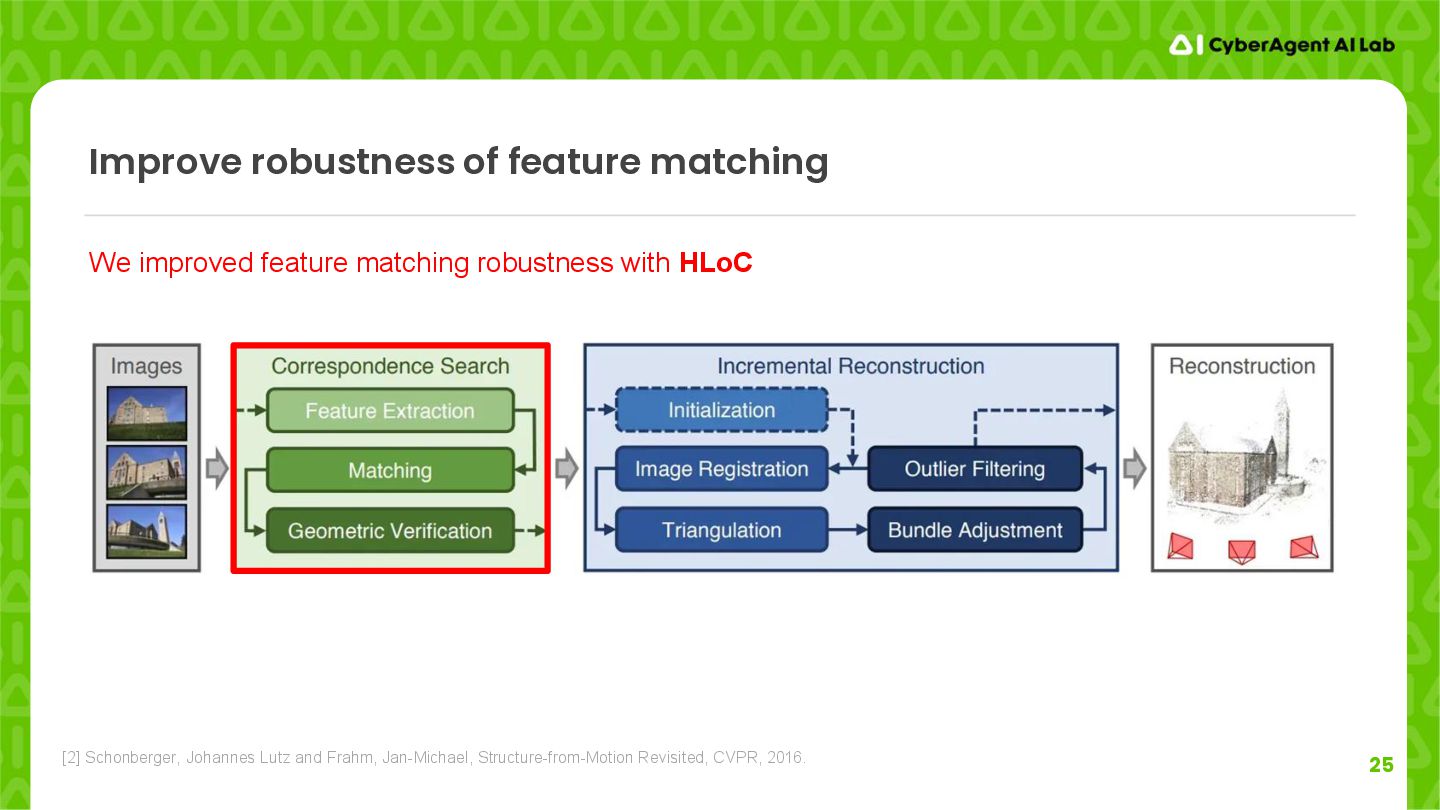20. 25 Improve robustness of feature matching [2] Schonberger, Johannes Lutz