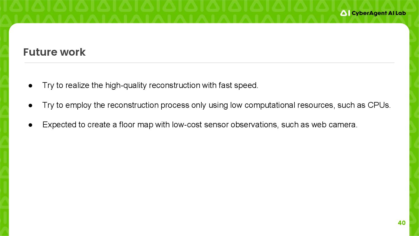34. 40 Future work • Try to realize the high-quality reconstruction
