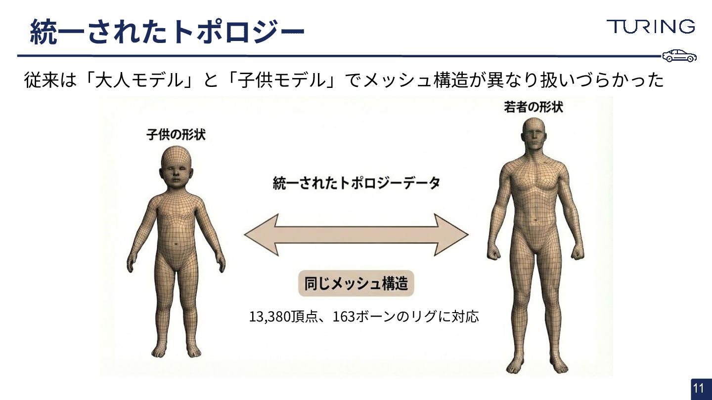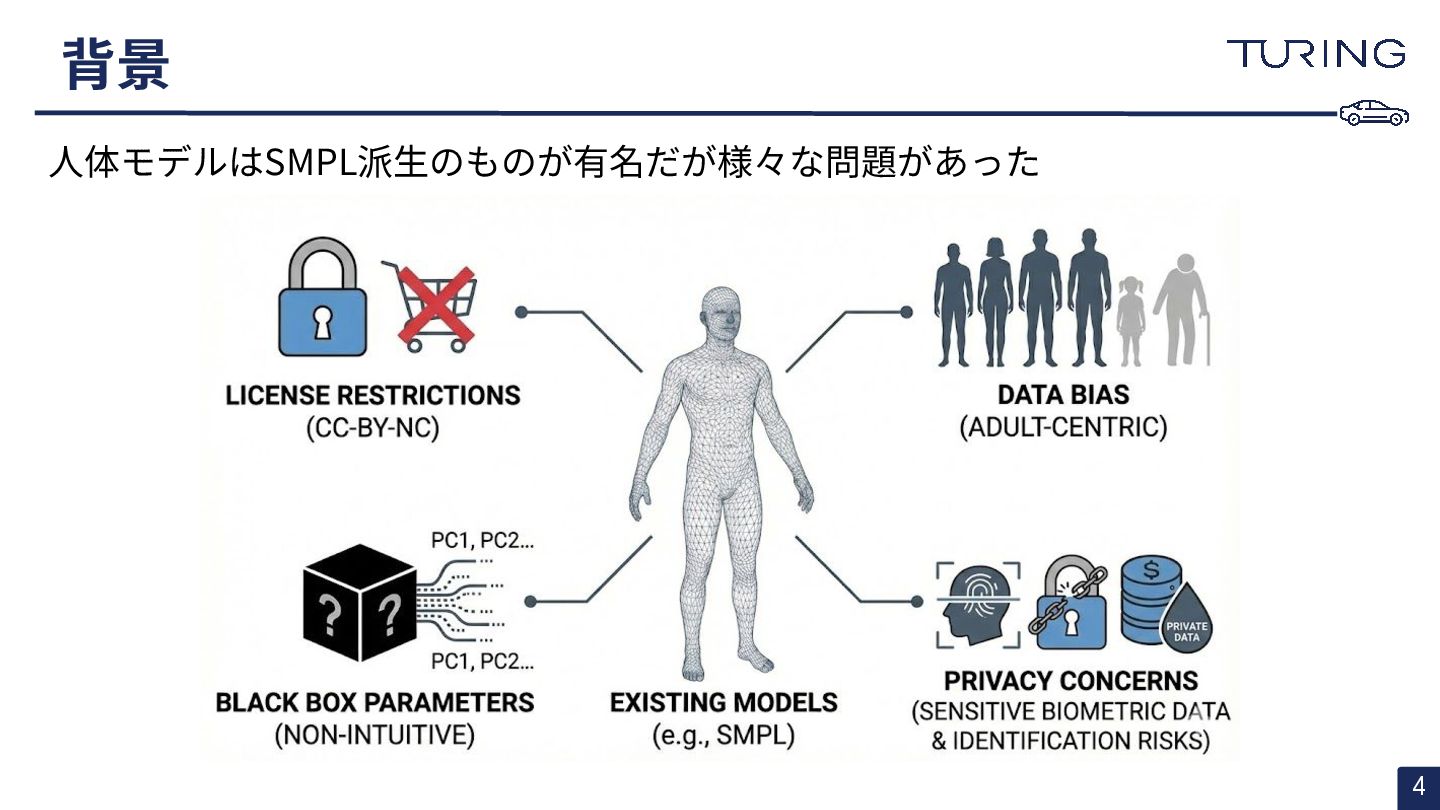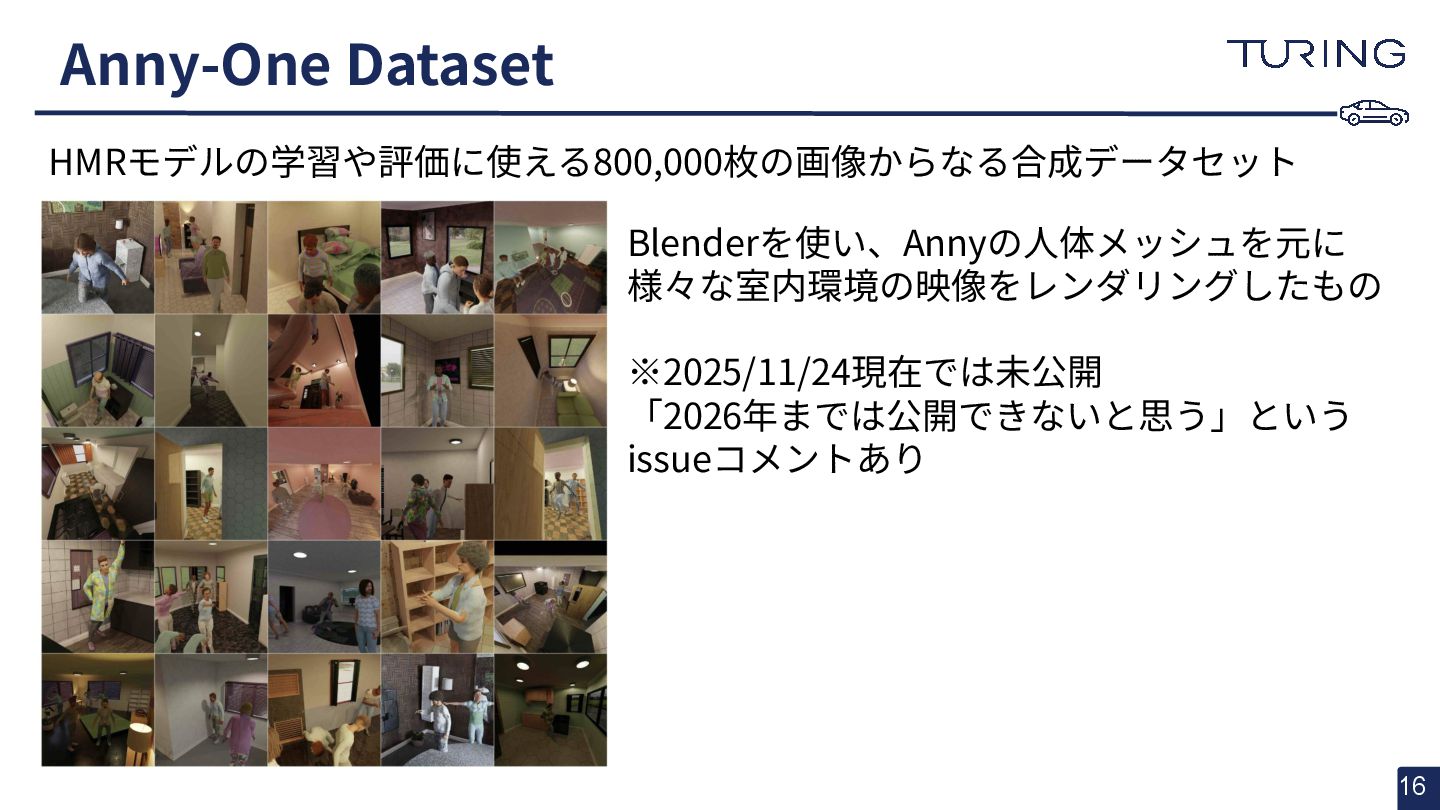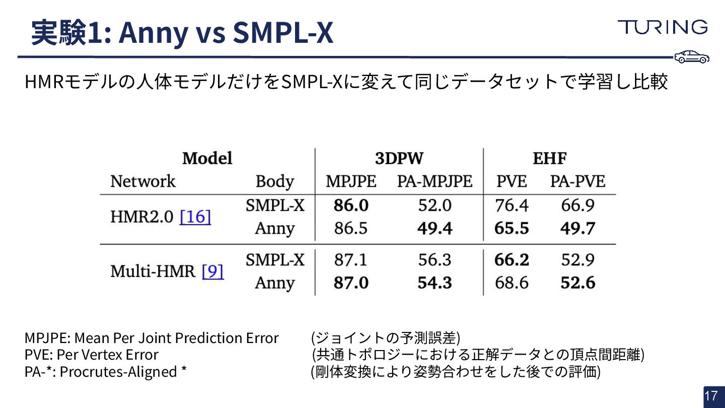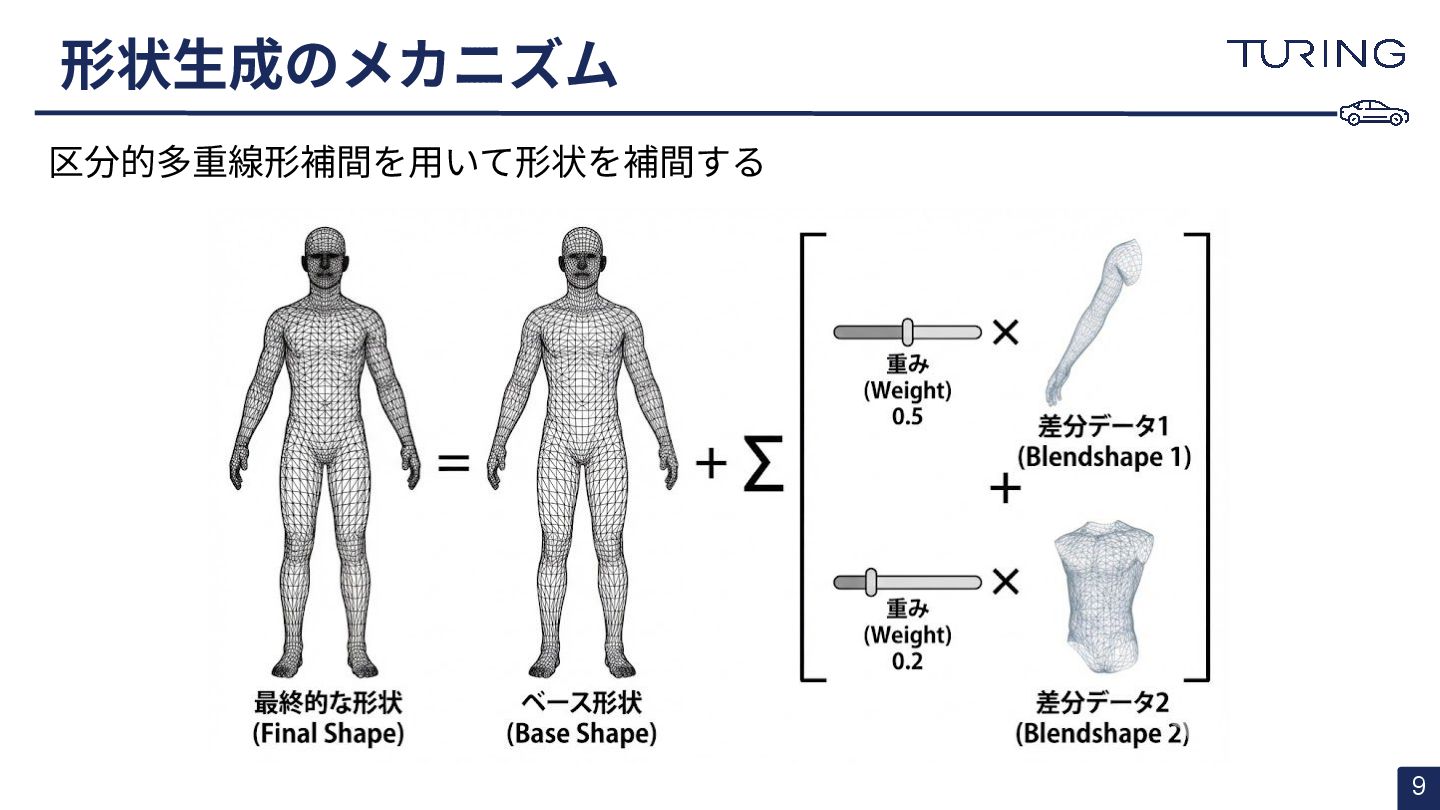 - 様々な人体形状に対応可能なスキャンフリーの人体メッシュモデルAnnyを提案 - スキャンに基づかない手法でありながらSMPLと同等以上の表現力を持ち、直感的なパラメータ操作で人体のモデリングが可能 - 微分可能なモデルとして実装されており、Apache 2.0ライセンスで公開されている - +αとして実際に3DGSと組み合わせた簡易的な実験を実施