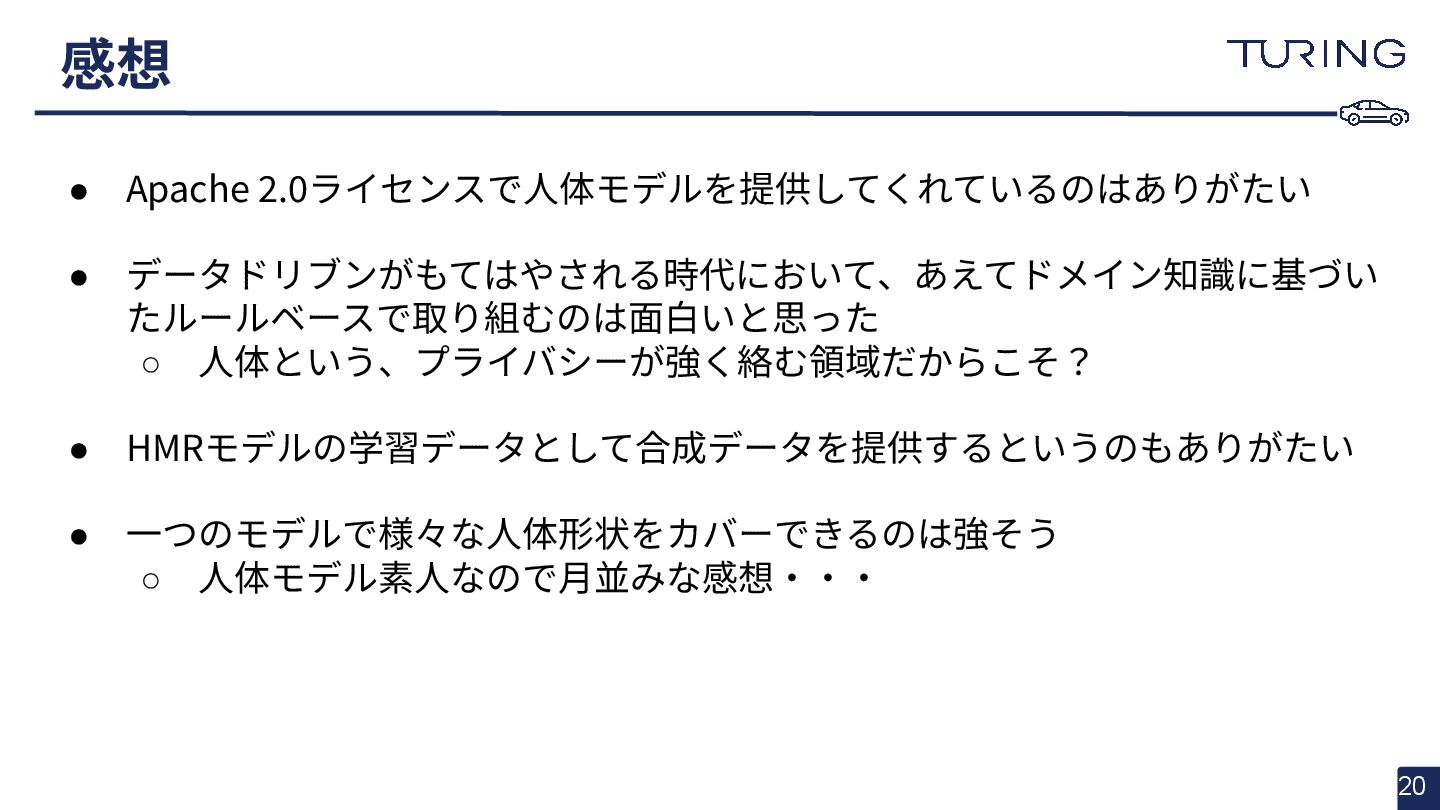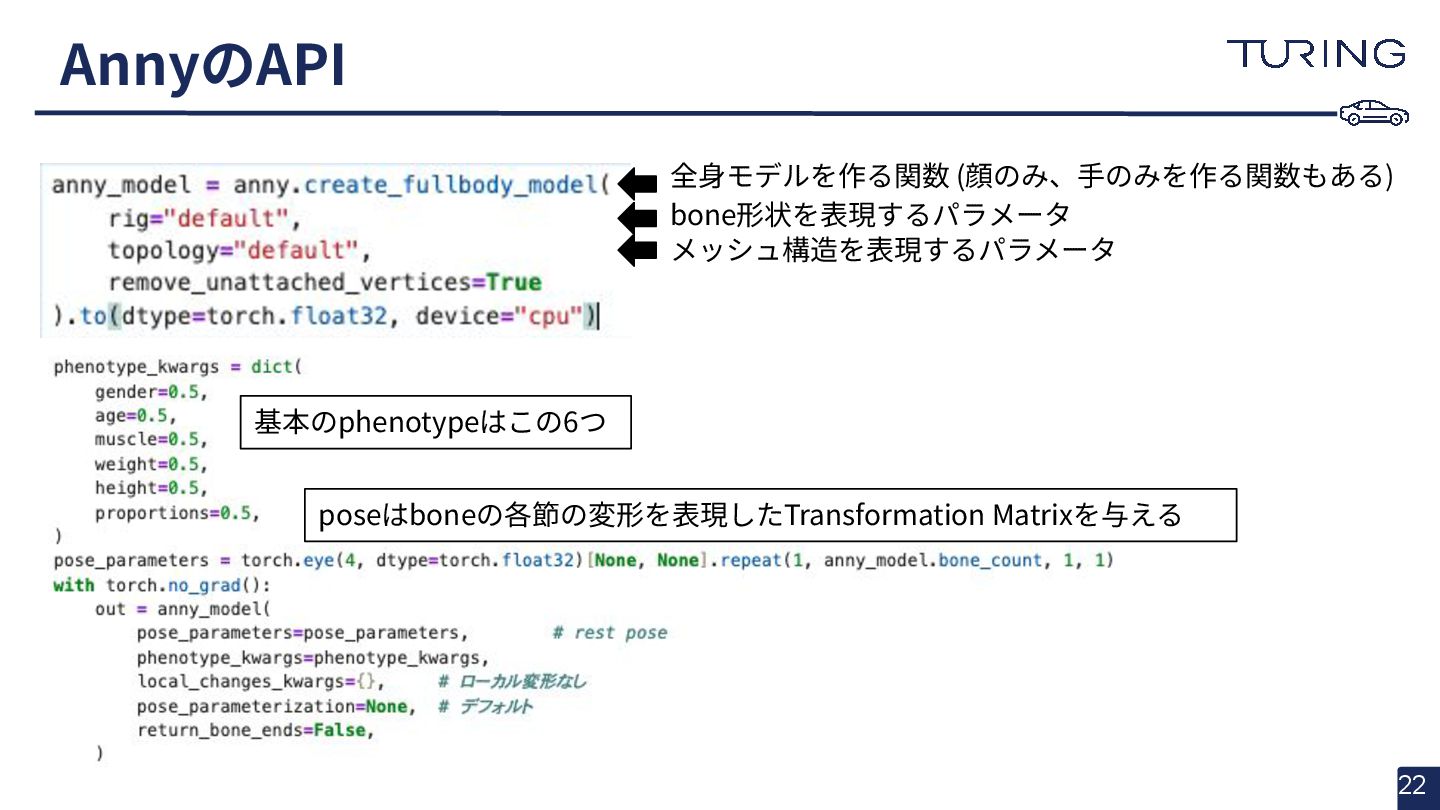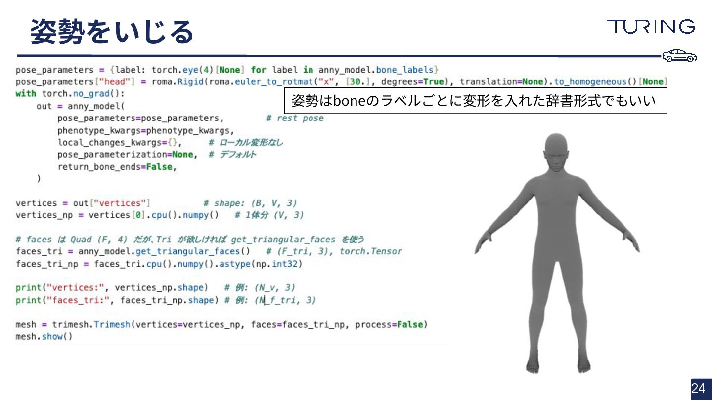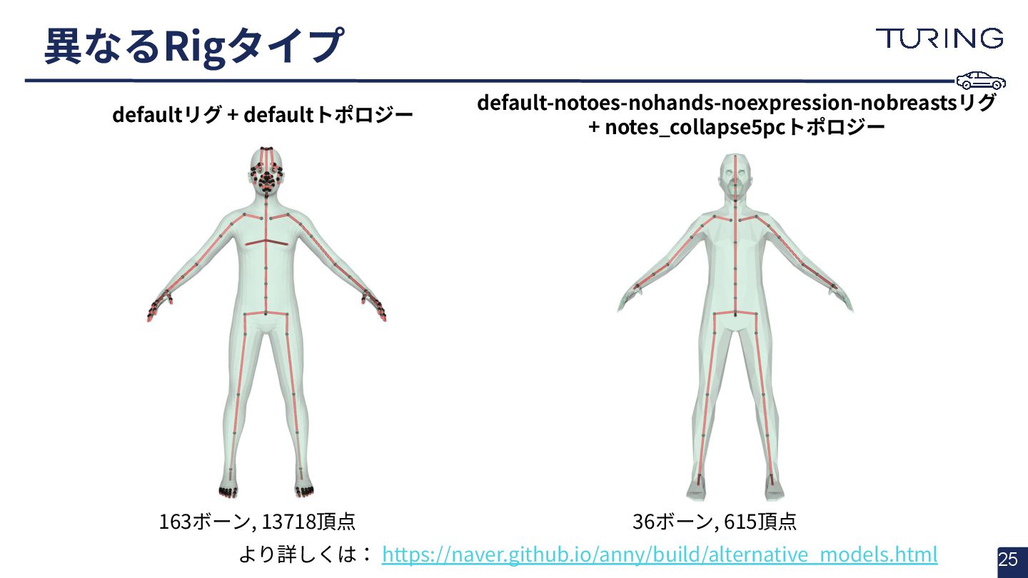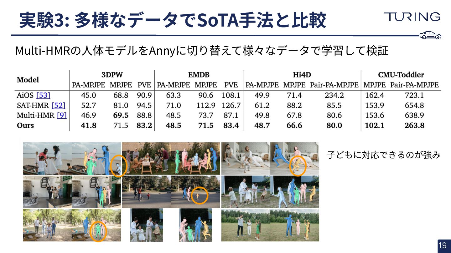 - 様々な人体形状に対応可能なスキャンフリーの人体メッシュモデルAnnyを提案 - スキャンに基づかない手法でありながらSMPLと同等以上の表現力を持ち、直感的なパラメータ操作で人体のモデリングが可能 - 微分可能なモデルとして実装されており、Apache 2.0ライセンスで公開されている - +αとして実際に3DGSと組み合わせた簡易的な実験を実施