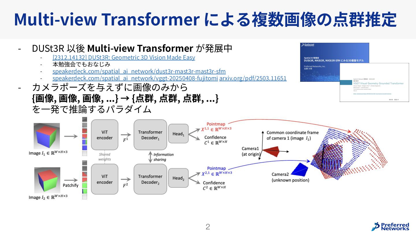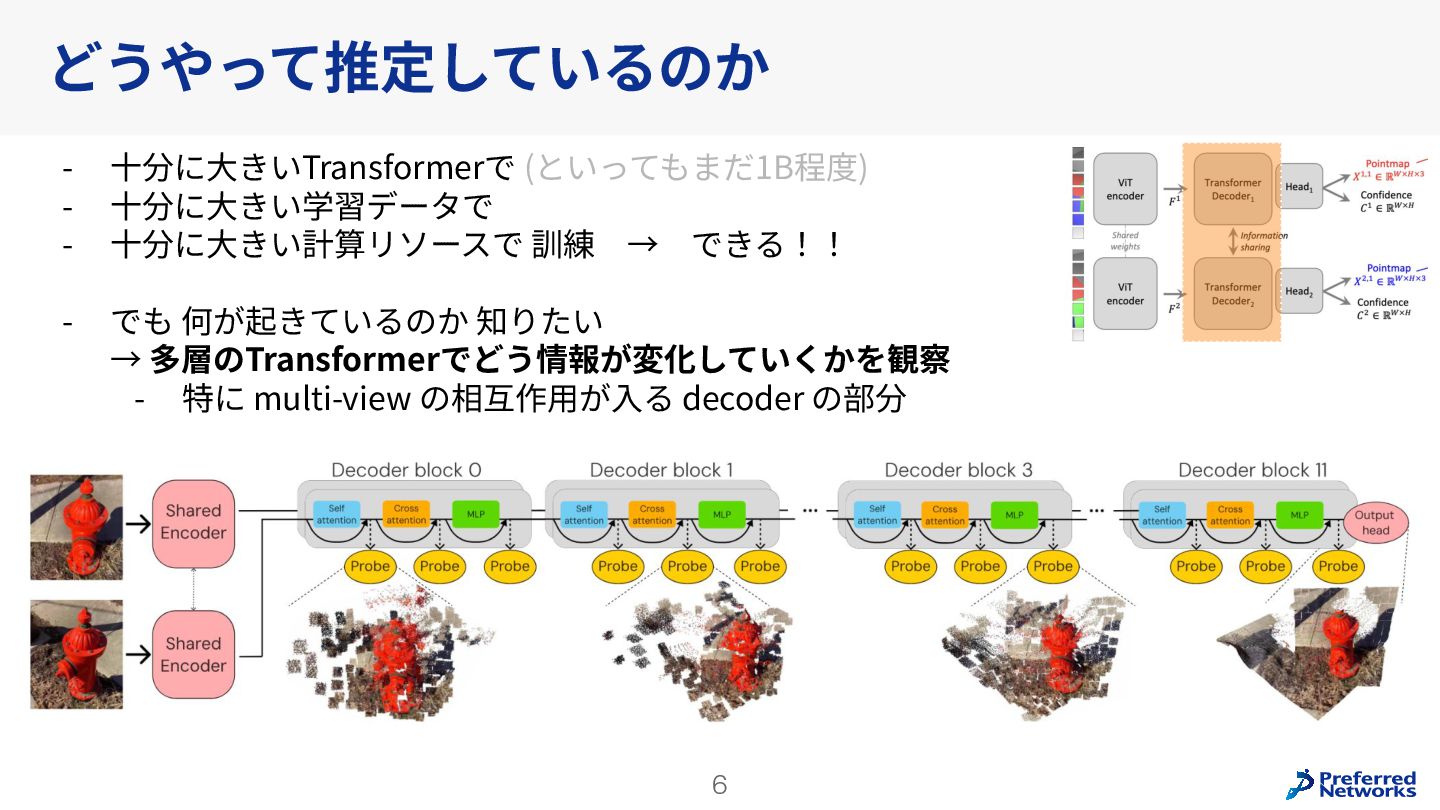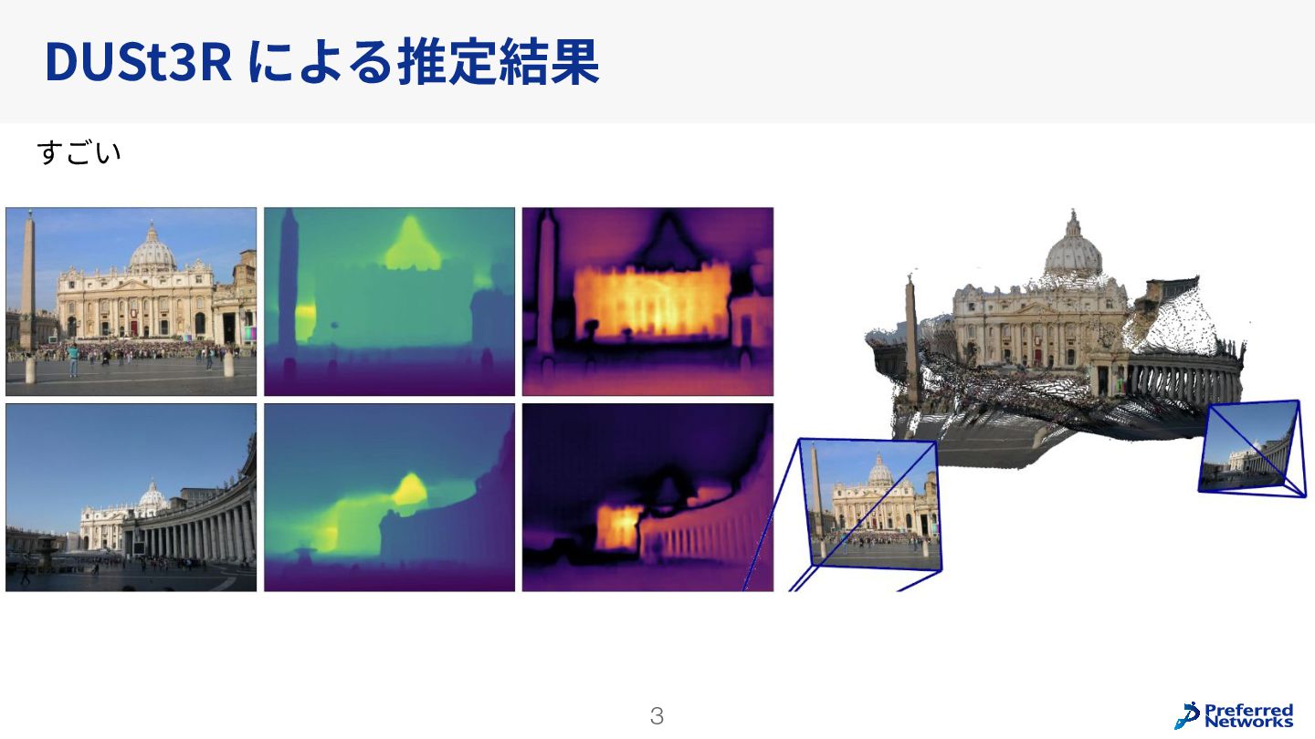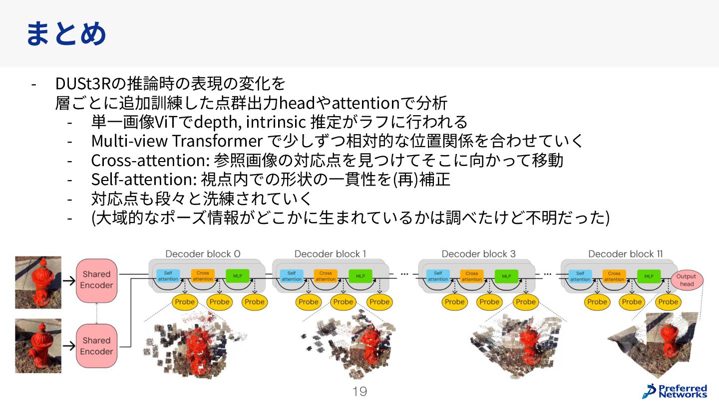 Understanding multi-view transformers https://arxiv.org/abs/2312.14132 カメラ位置姿勢なしの画像ペアから3D点群を求めるDUSt3Rの推論時のTransformerの挙動を分析。