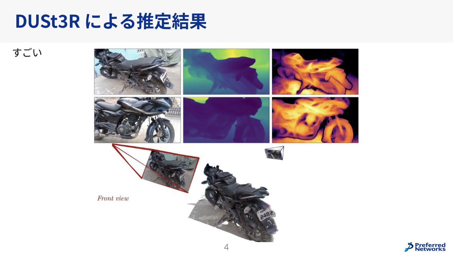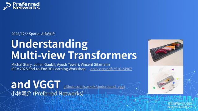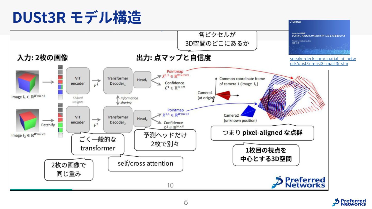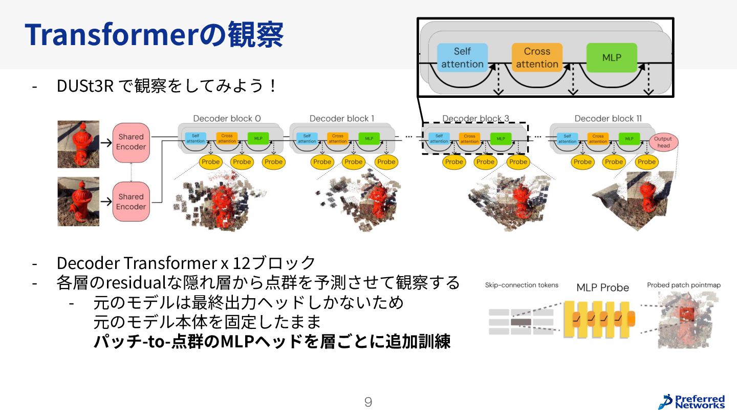 Understanding multi-view transformers https://arxiv.org/abs/2312.14132 カメラ位置姿勢なしの画像ペアから3D点群を求めるDUSt3Rの推論時のTransformerの挙動を分析。