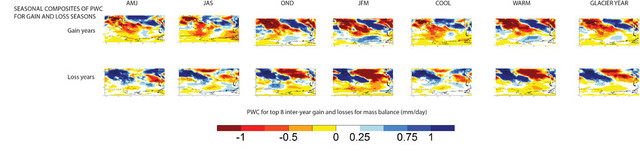 Composite plots for glacier mass balance gain and mass balance loss seasons and years