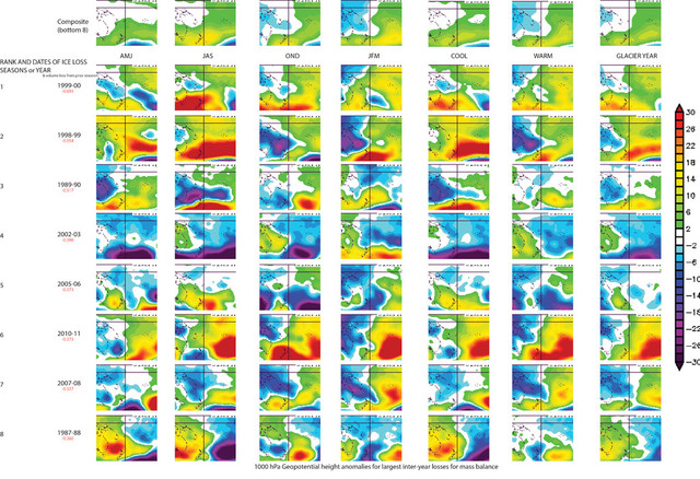 the individual seasons or years chosen for compositing that indicate mean climate conditions in the Southern Hemisphere associated with mass balance loss.