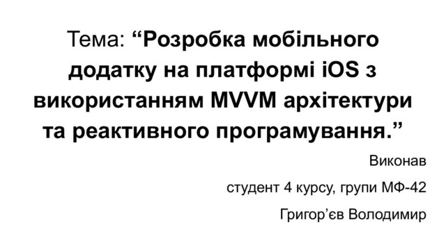 надає розробникам можливість зв’язувати данні. Тому треба звернутися до реактивного програмування. Для іOS є декілька реалізацій RP: - ReactiveCocoa - RxSwift (ReactiveX) - ReactiveKit