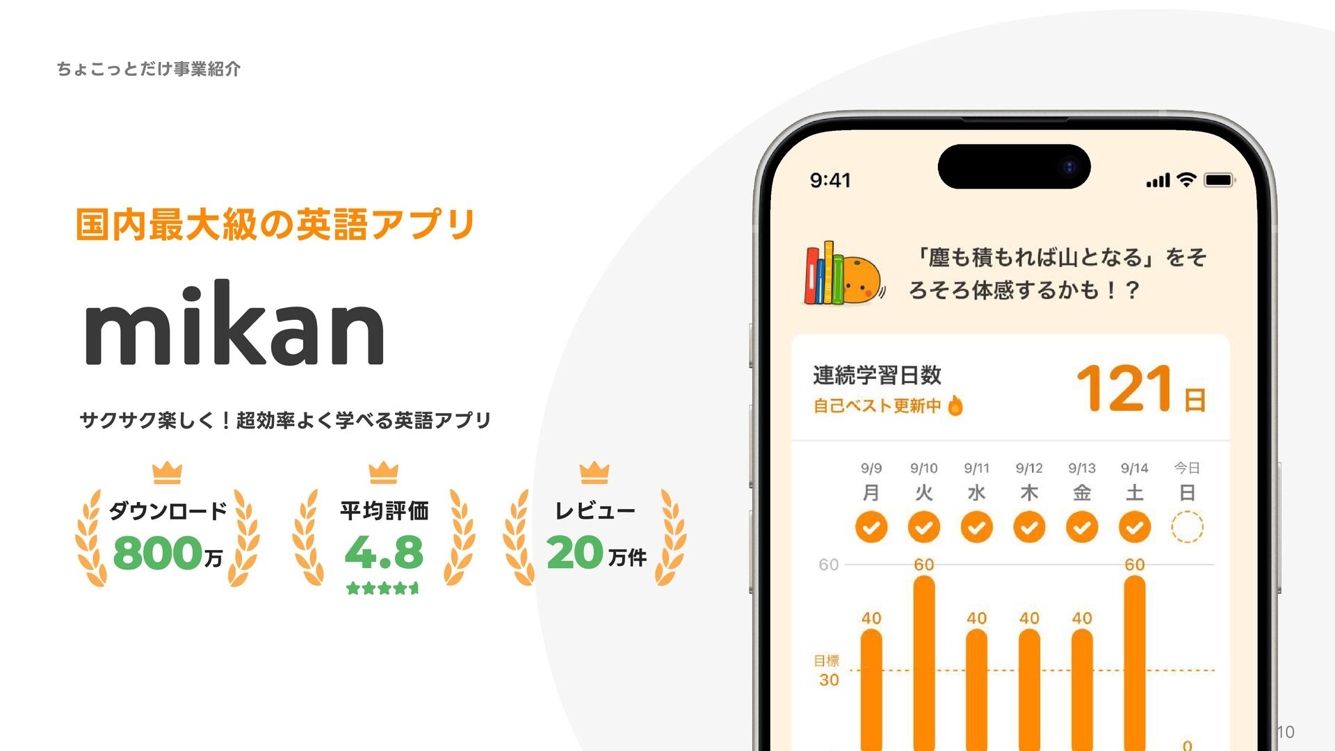 10 ちょこっとだけ事業紹介 サクサク楽しく!超効率よく学べる英語アプリ 国内最大級の英語アプリ