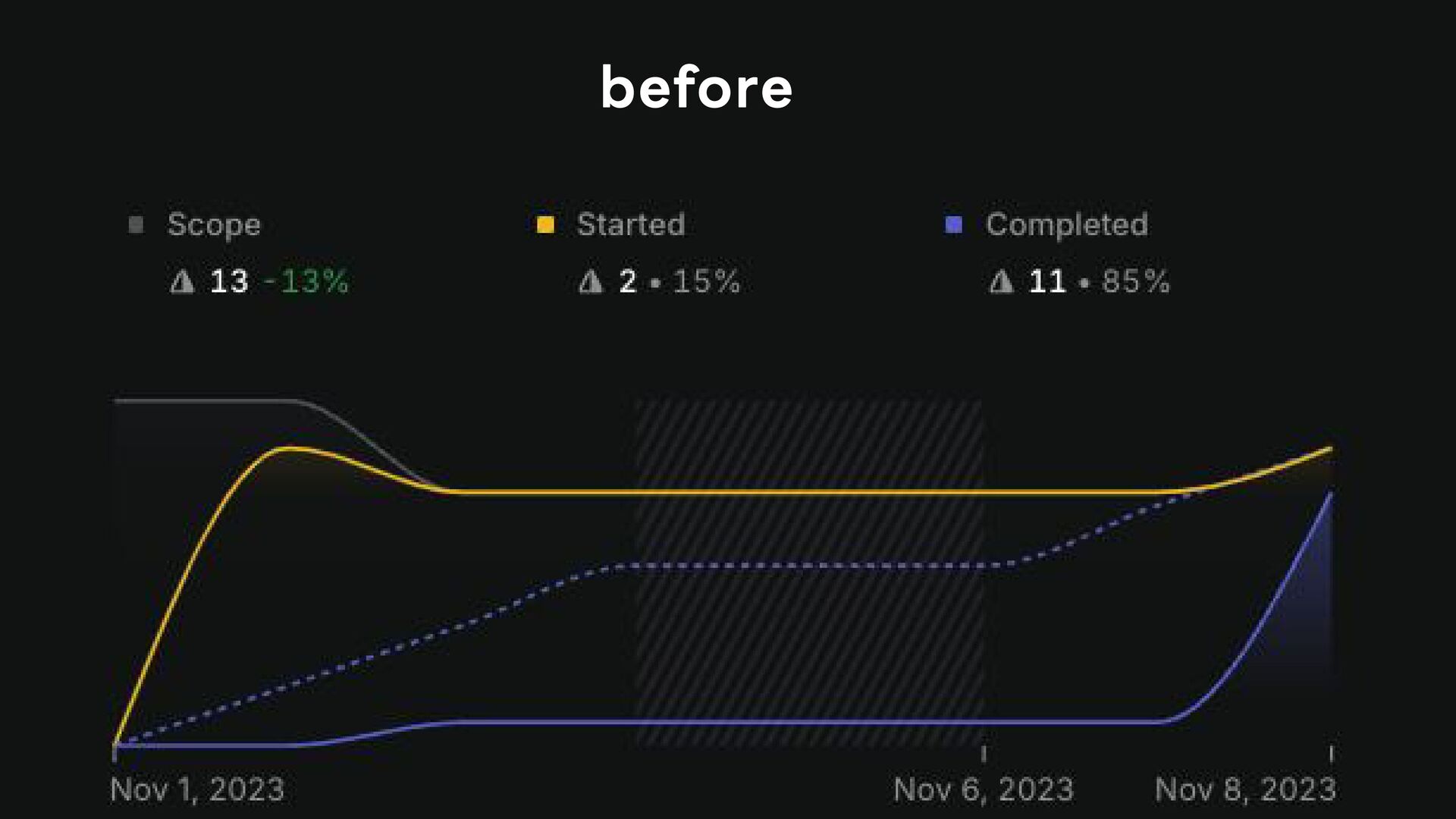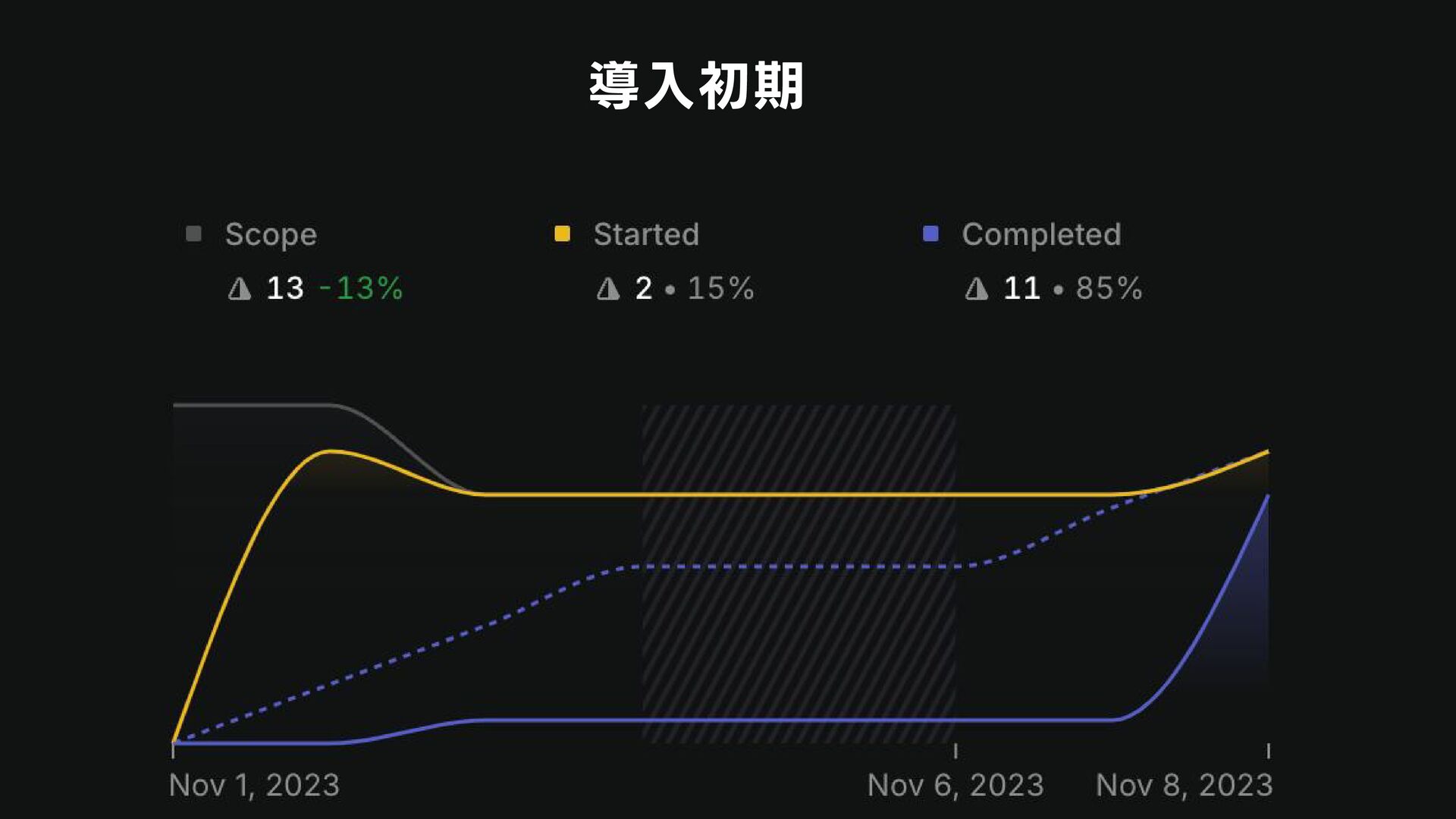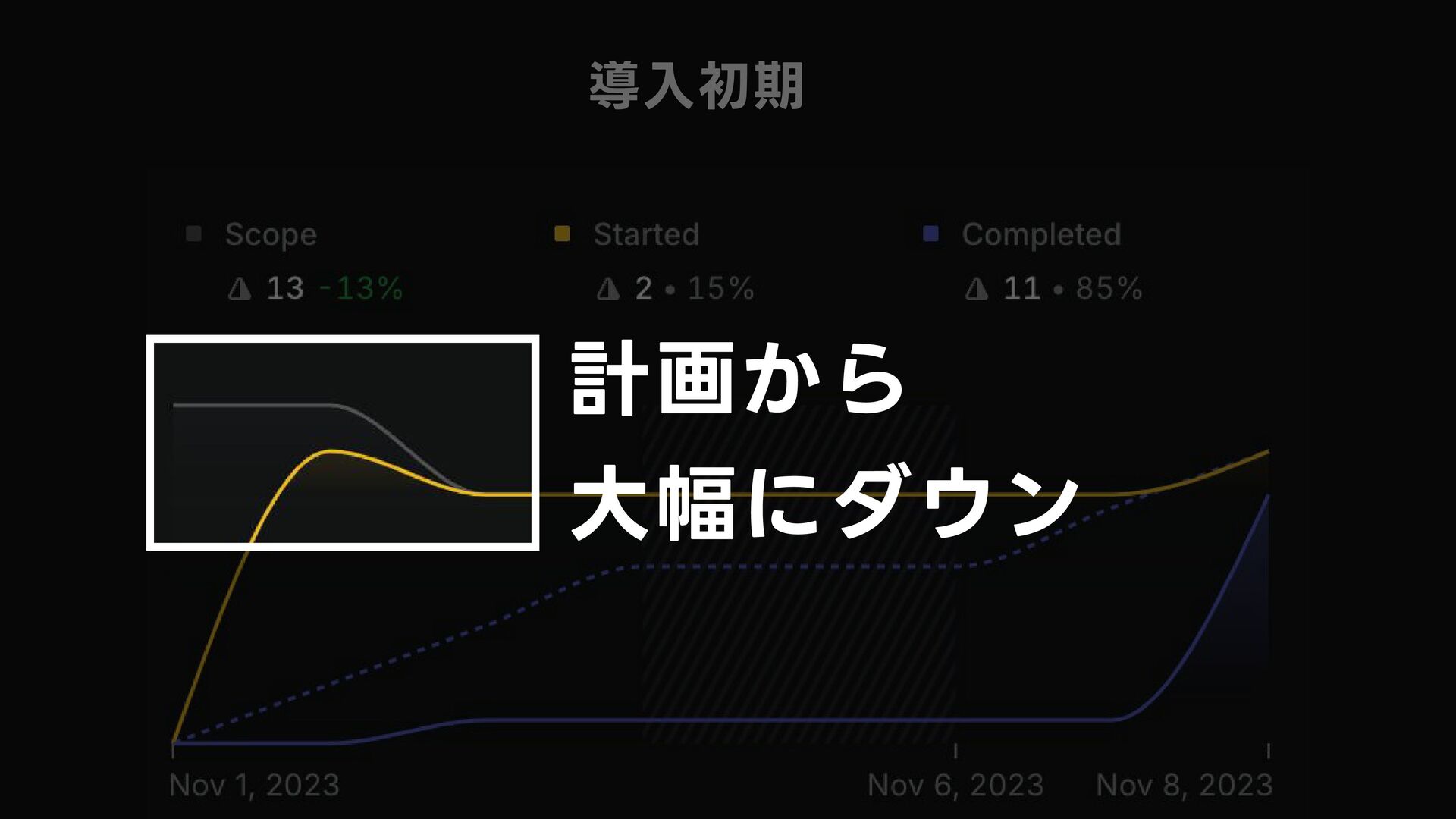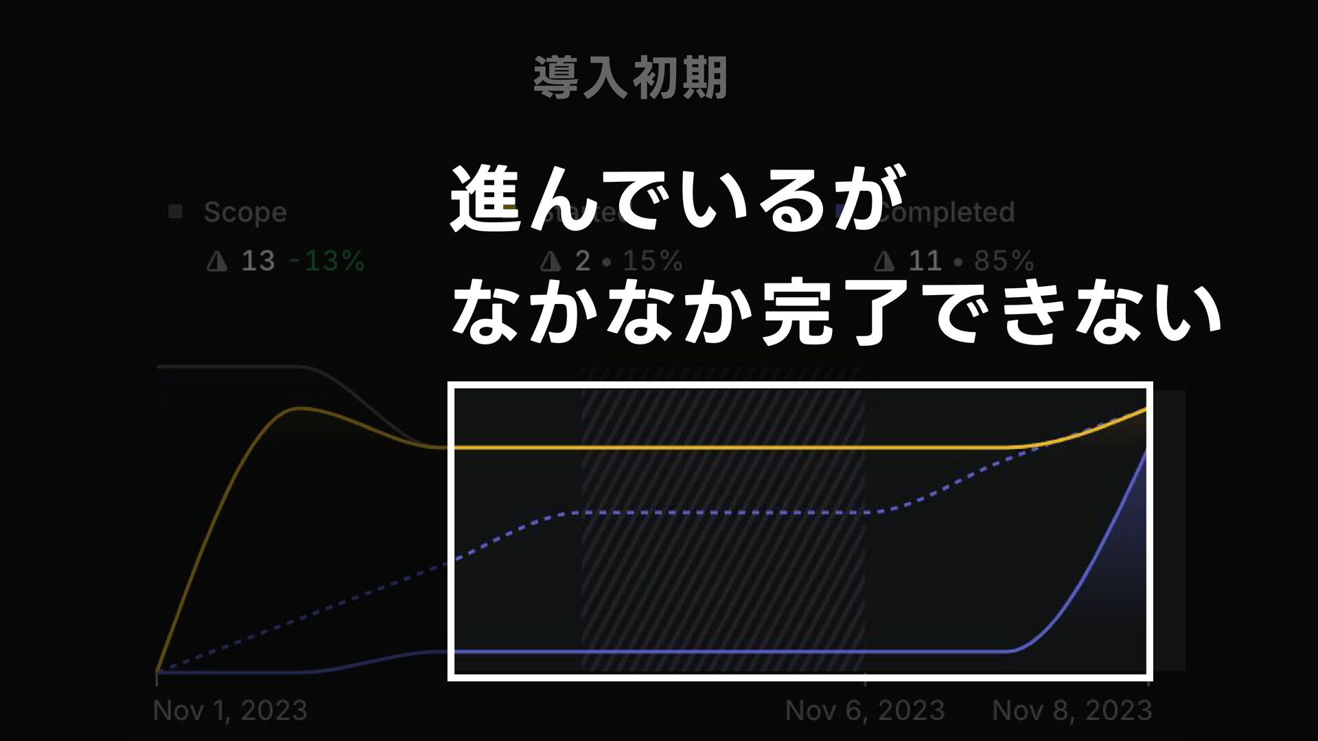 進んでいてもタスク上は完了できないので停滞してしま w 施策の前提が違ったりするので前のサイクルまでの実績が信用できない