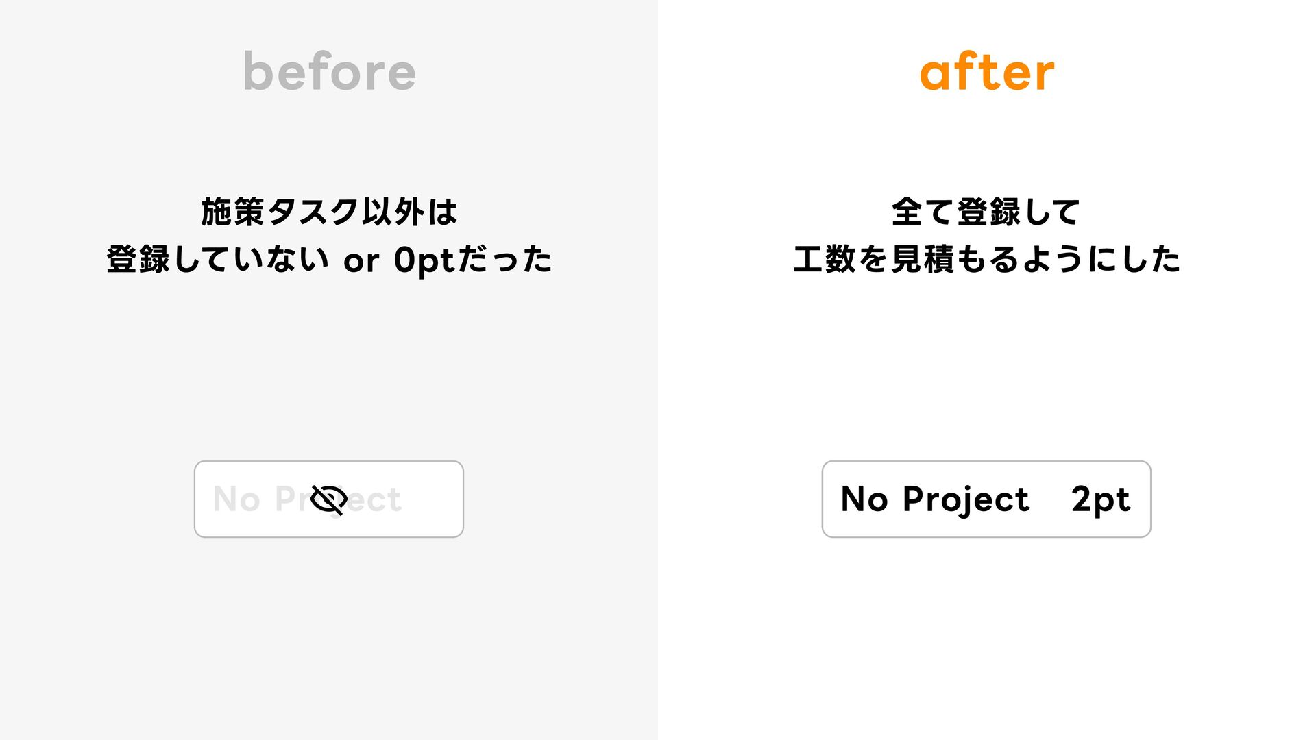 before after 全て登録して 工数を見積もるようにした 施策タスク以外は 登録していない or 0ptだった No Project