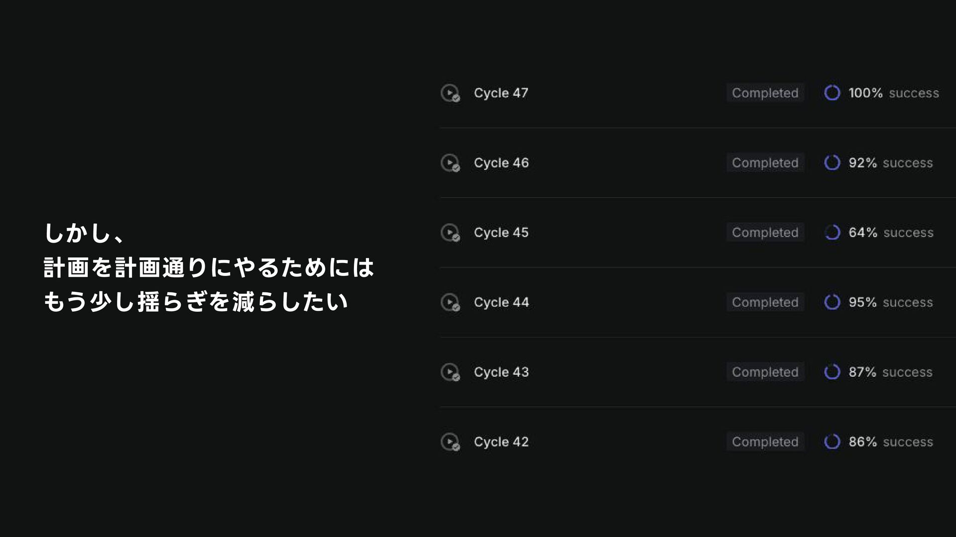 しかし、 計画を計画通りにやるためには もう少し揺らぎを減らしたい