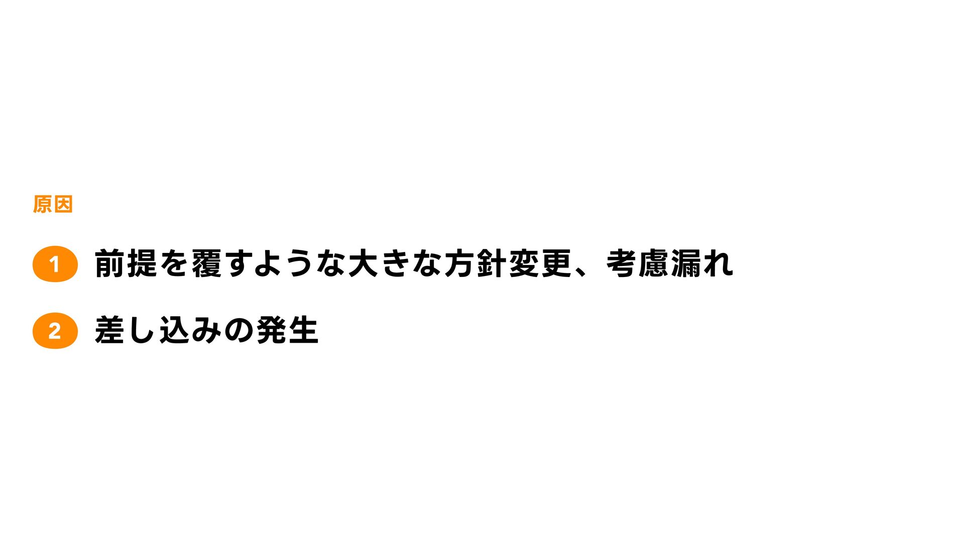 原因 1 前提を覆すような大きな方針変更、考慮漏れ 2 差し込みの発生
