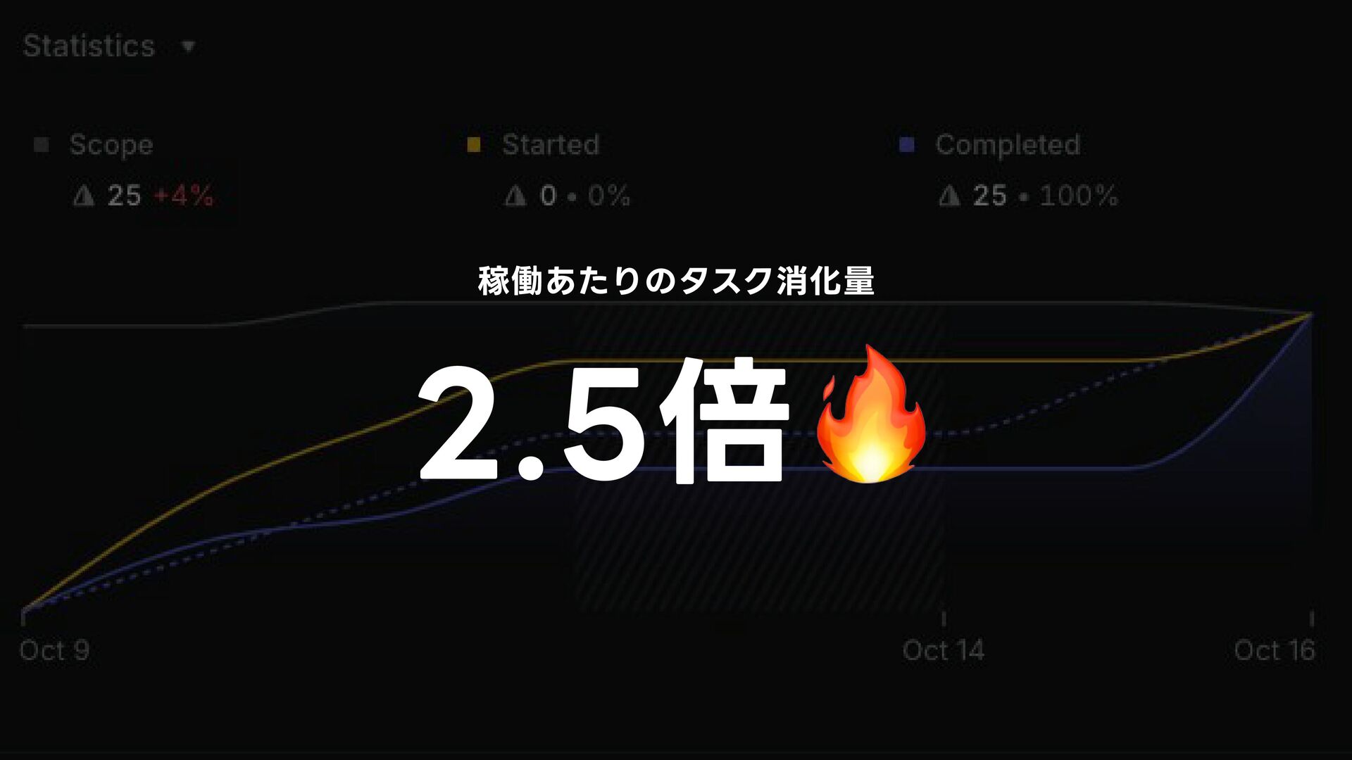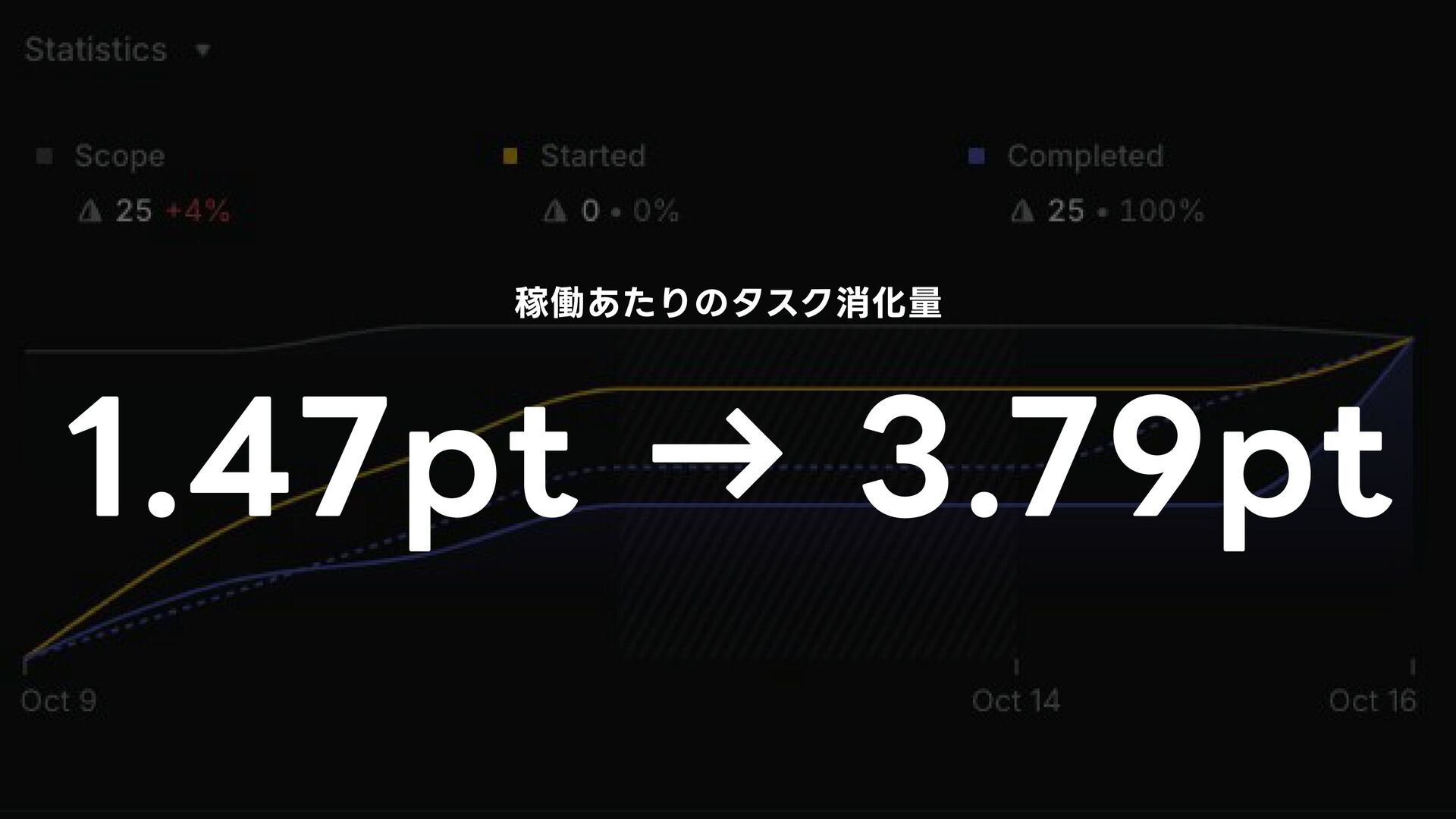 稼働あたりのタスク消化量 1.47pt → 3.79pt