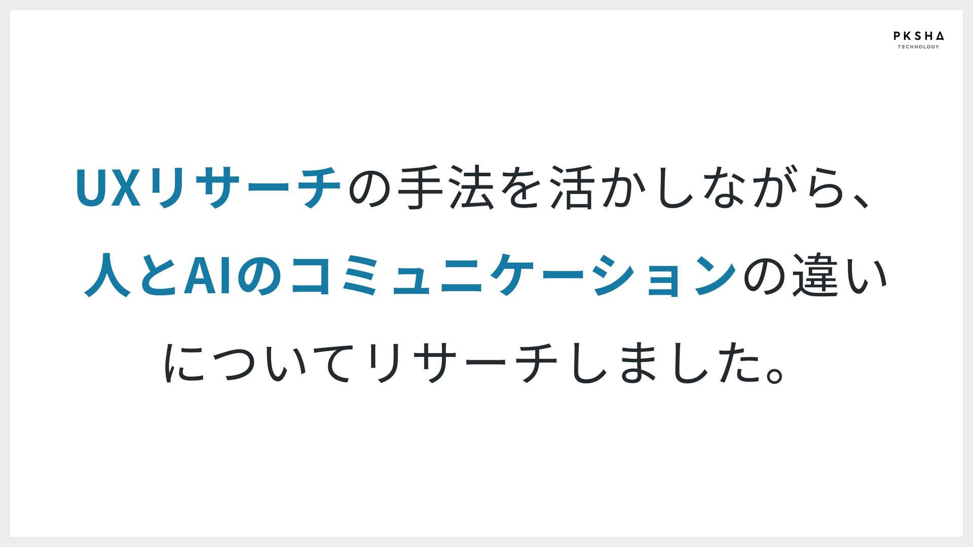 software Software is a "soft" technology that is shaped by the will of people. The software of the future can implement joy instead of sadness, connection instead of division, diversity instead of peer pressure in society. PKSHA Technology implements future software that co- evolves with people. 03 Result UXリサーチ結果について