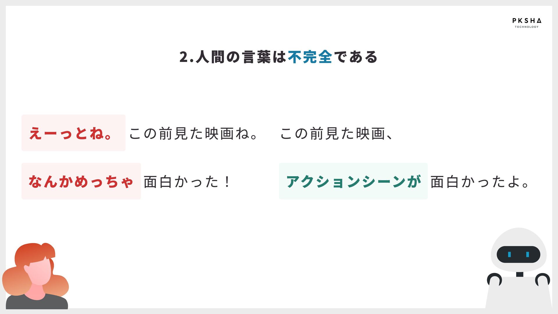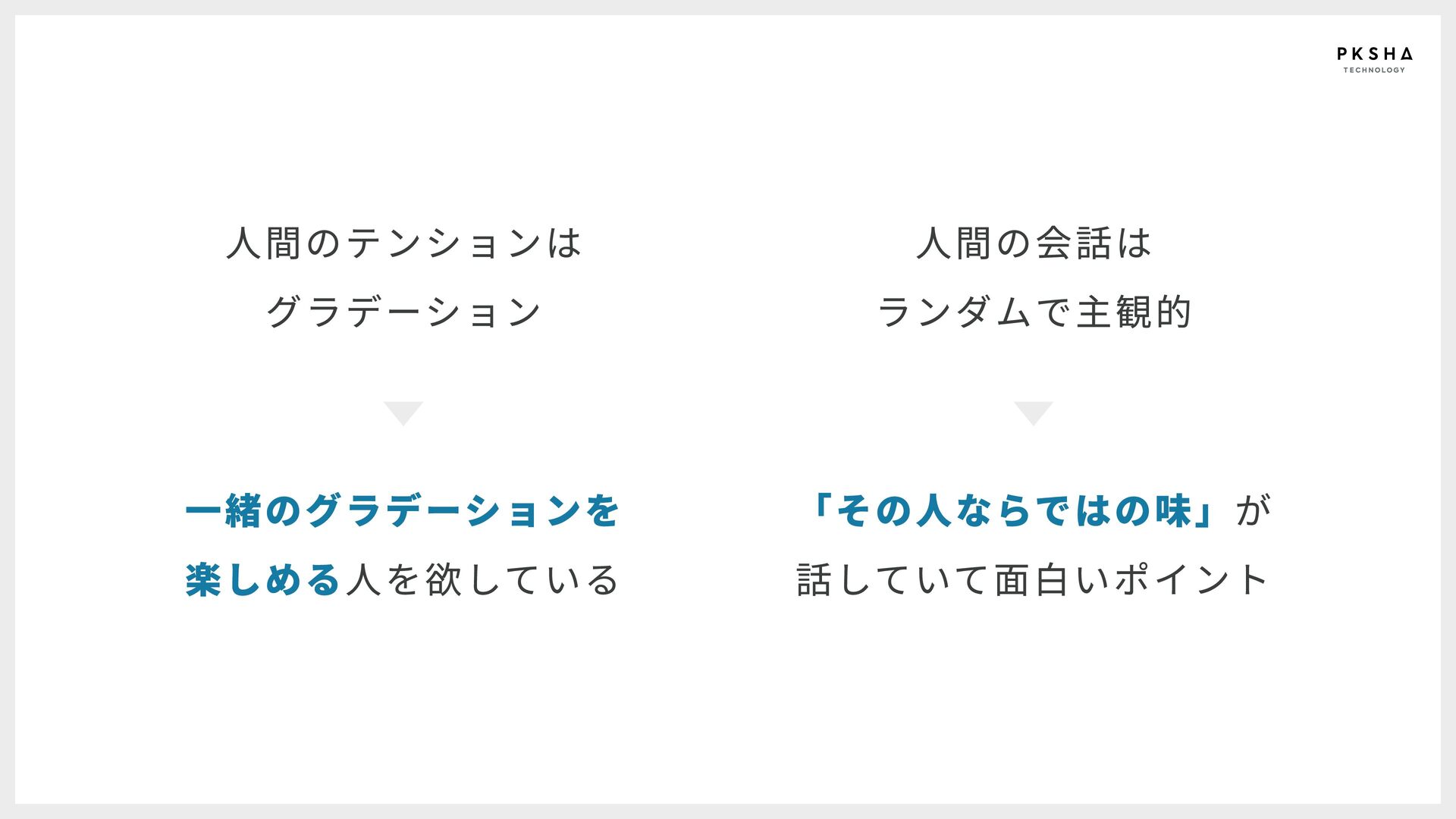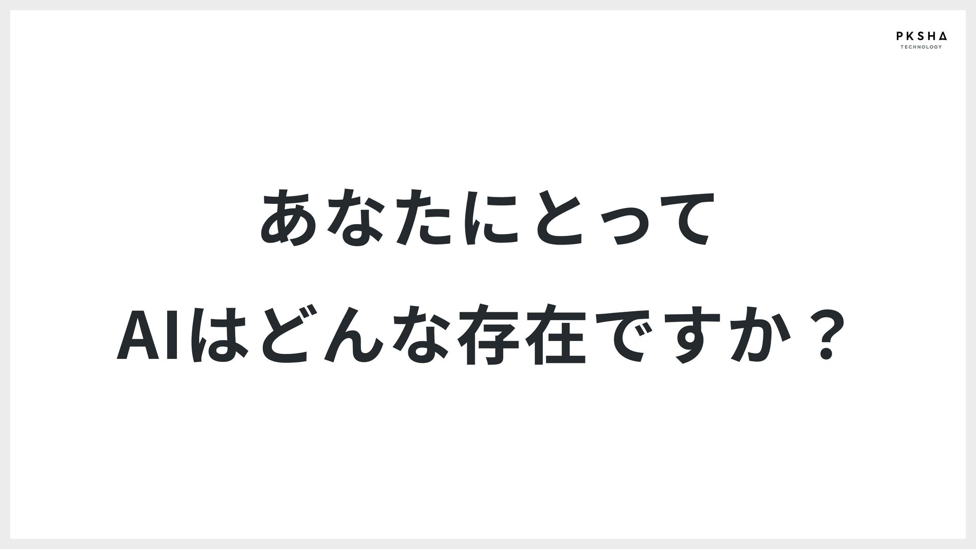 software Software is a "soft" technology that is shaped by the will of people. The software of the future can implement joy instead of sadness, connection instead of division, diversity instead of peer pressure in society. PKSHA Technology implements future software that co- evolves with people. 04 Conclusion まとめ