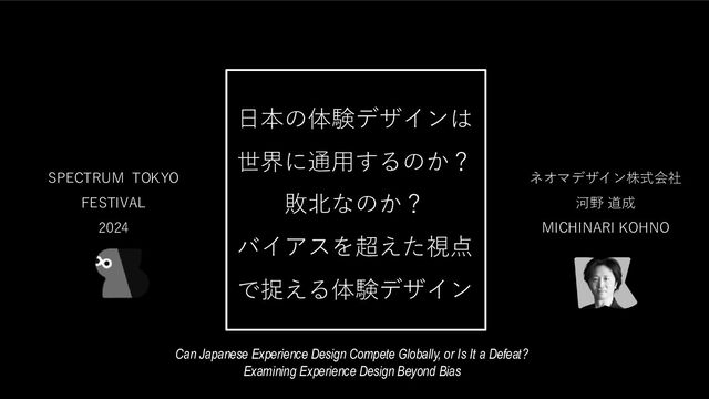 日本の体験デザインは世界に通用するのか?敗北なのか?:バイアスを超えた視点で捉える体験デザイン / Can Japanese Experience Design Compete Globally, or Is It a Defeat? Examining Experience Design Beyond Bias