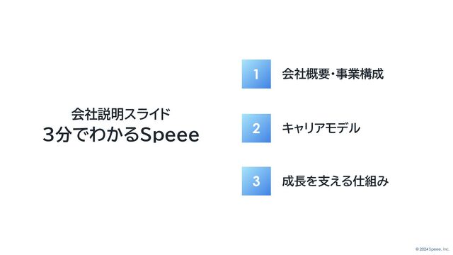 組織・人材マネジメント イントレプレナー 事業の成長戦略を描き、 実現に向けて推進する 市場優位性の高いスキルを磨き、 新しい価値創造をリードする 組織の成長戦略を練り、 自ら統率・育成していく 社内起業家としてSpeeeの 新たな成長の柱を作り出す 多様なキャリアパスがデザイン可能で、一人ひとりに最適なルートを見つけていくことができます。 その結果、全員が事業経営人材としてのキャリアを発展させていくことになります。(早期での選抜制度もあり) 本人のキャリアビジョン、適性、希望等を考慮して初期配属職種を決定します。 また、それ以降も職種間・事業部間でのポジションチェンジを通じて幅広い能力開発が可能です。 セールス / マーケティング データ分析 / コンサルティング リサーチ/ 戦略 新規事業企画 / 事業立ち上げ プロダクト マネジメント キャリアパス キャリアパスが多彩で、どのポジションからでもデジタル事業経営人材に必要な要素を獲得できます。