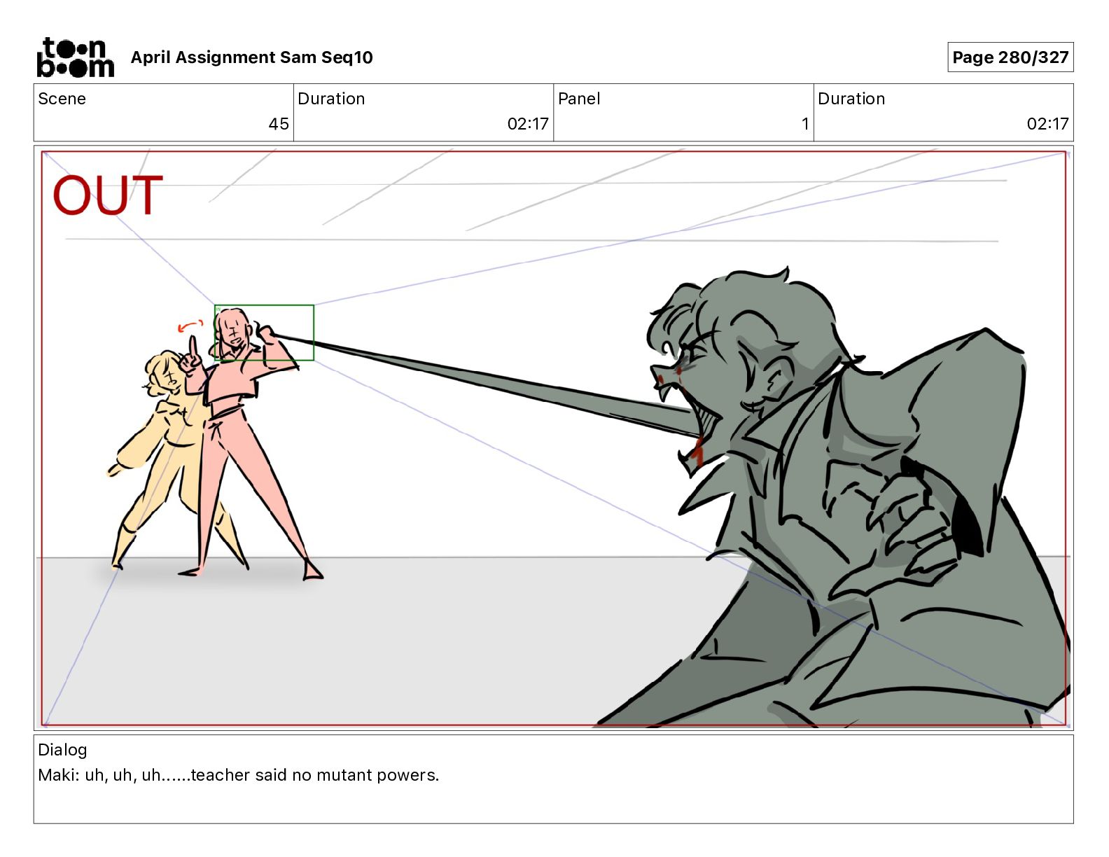 Dialog Maki: uh, uh, uh......teacher said no mutant powers. April Assignment Sam Seq10 Page 280/327
