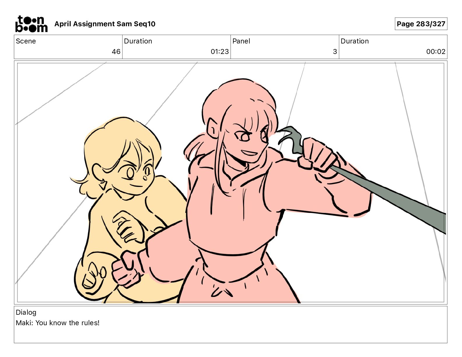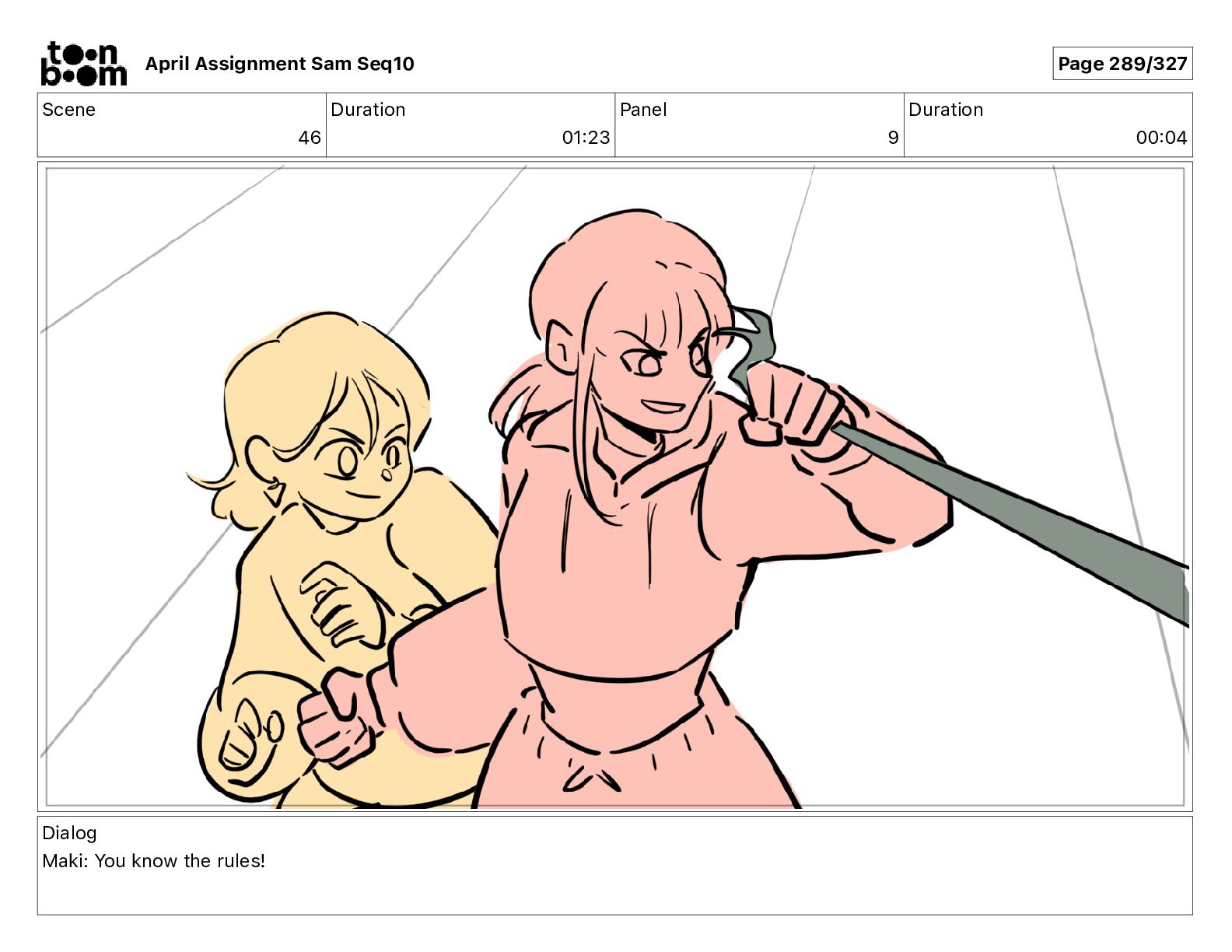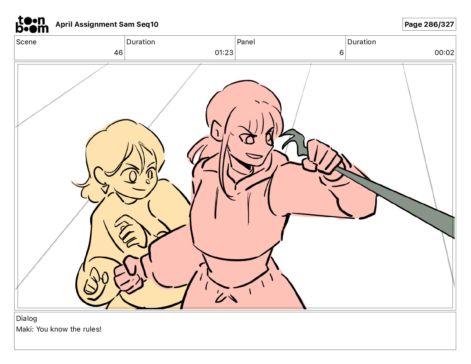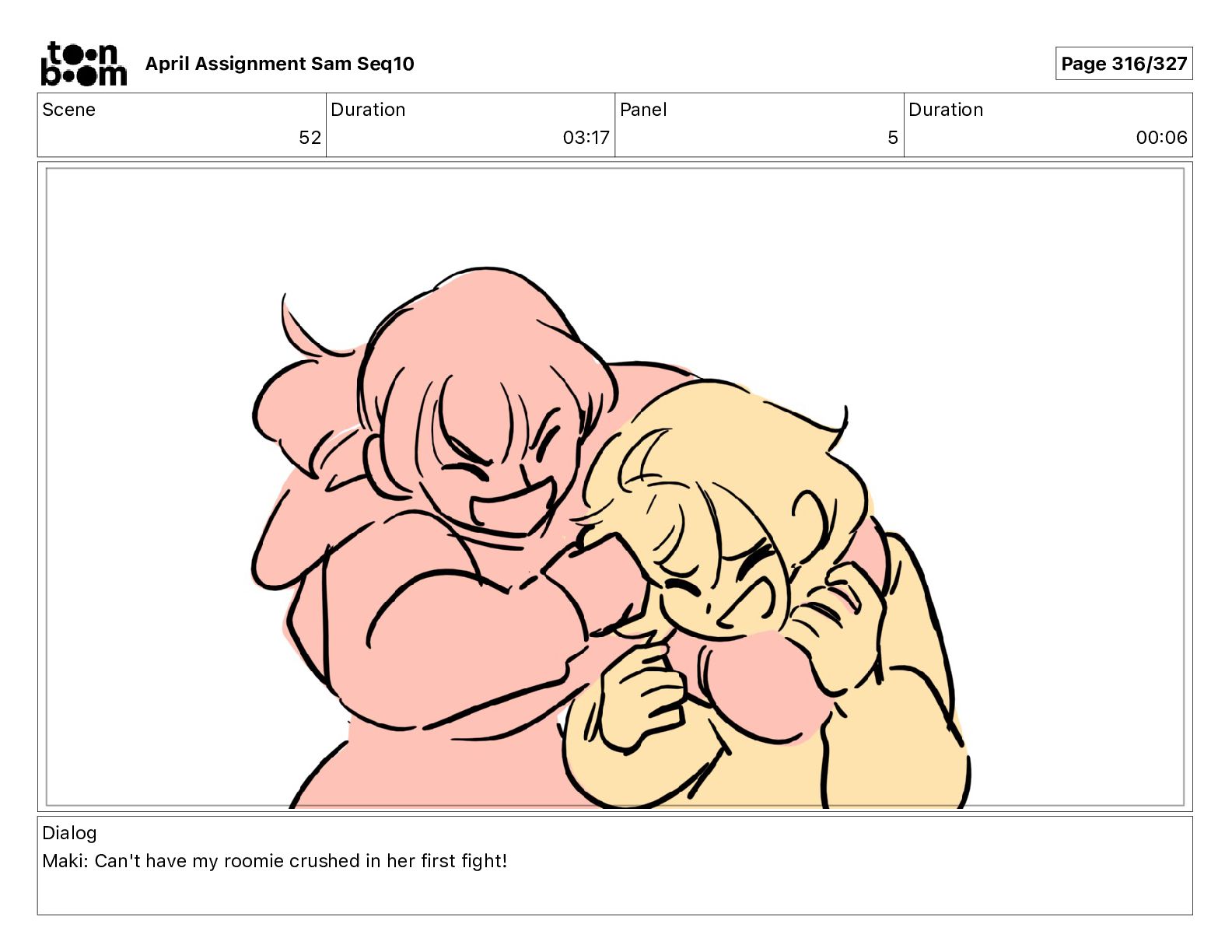 Dialog Maki: Can't have my roomie crushed in her first fight! April Assignment Sam Seq10 Page 320/327