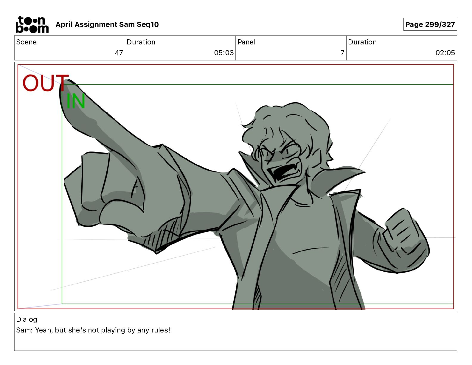 Dialog Sam: Yeah, but she's not playing by any rules! April Assignment Sam Seq10 Page 299/327