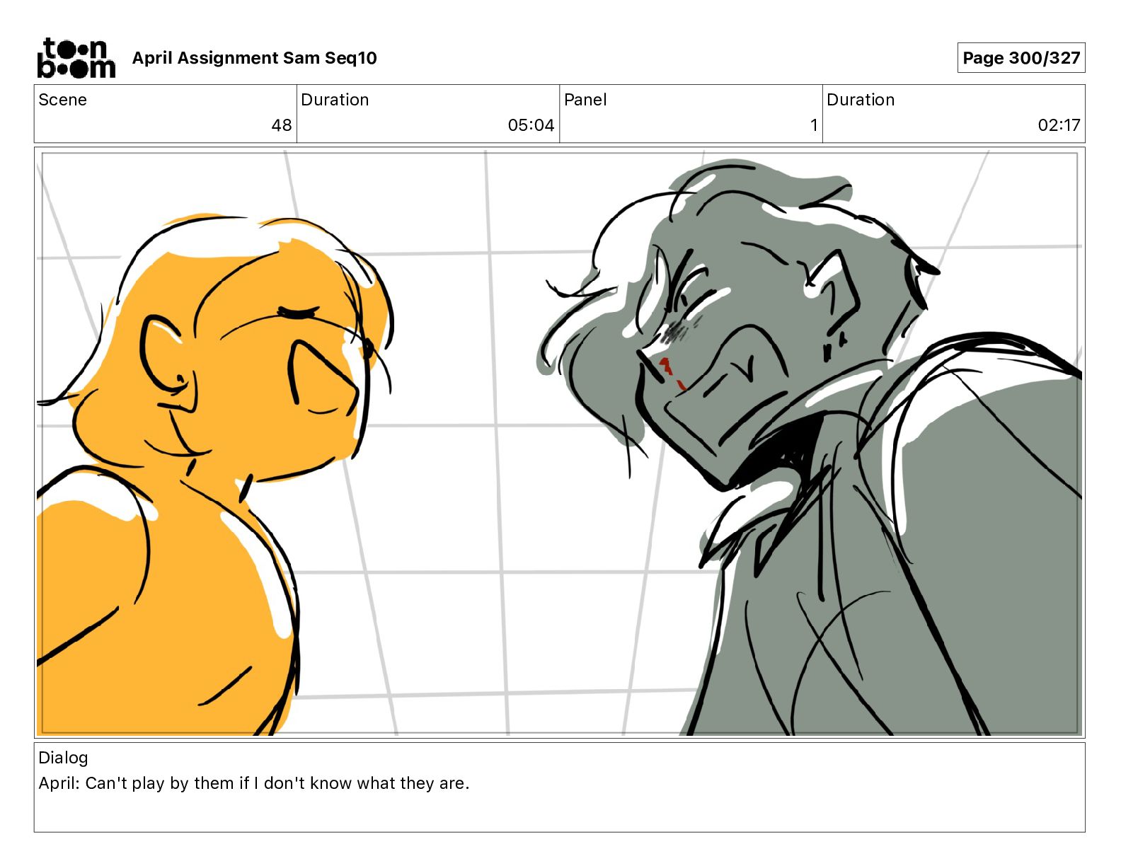 Dialog April: Can't play by them if I don't know what they are. April Assignment Sam Seq10 Page 300/327