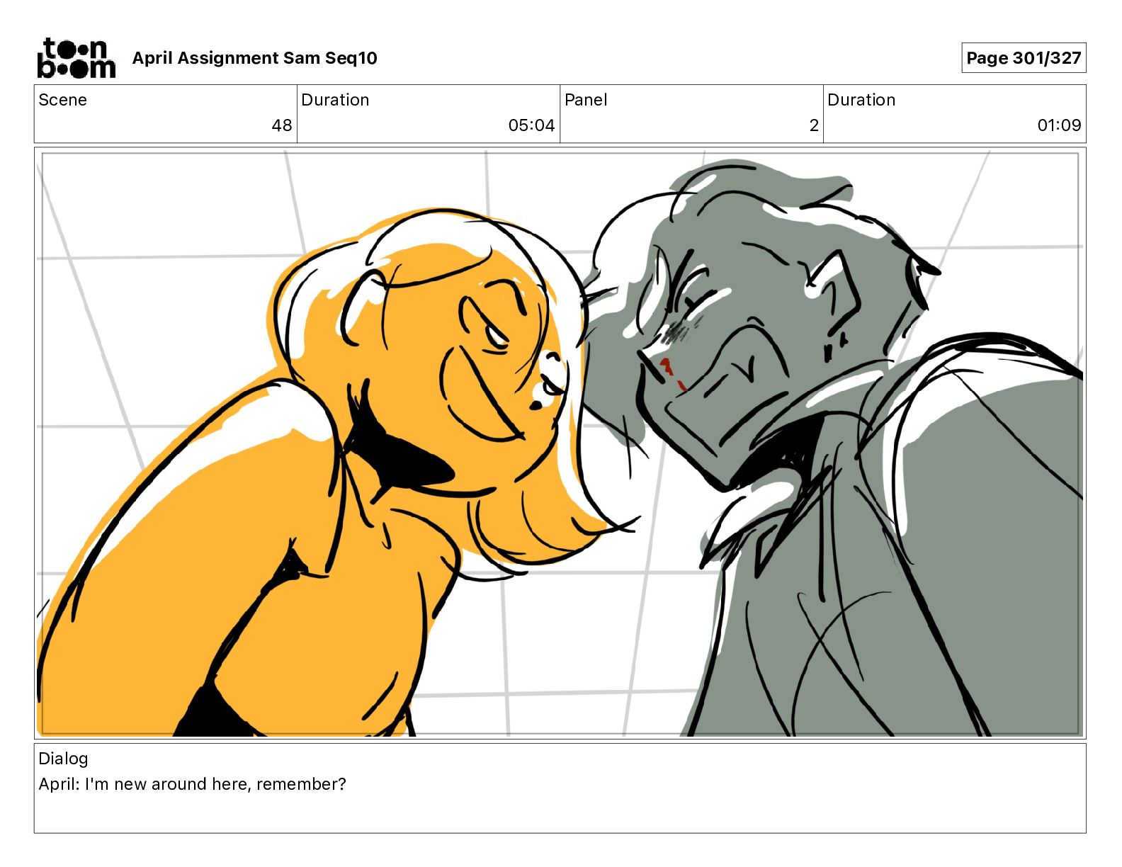 Dialog April: I'm new around here, remember? April Assignment Sam Seq10 Page 301/327