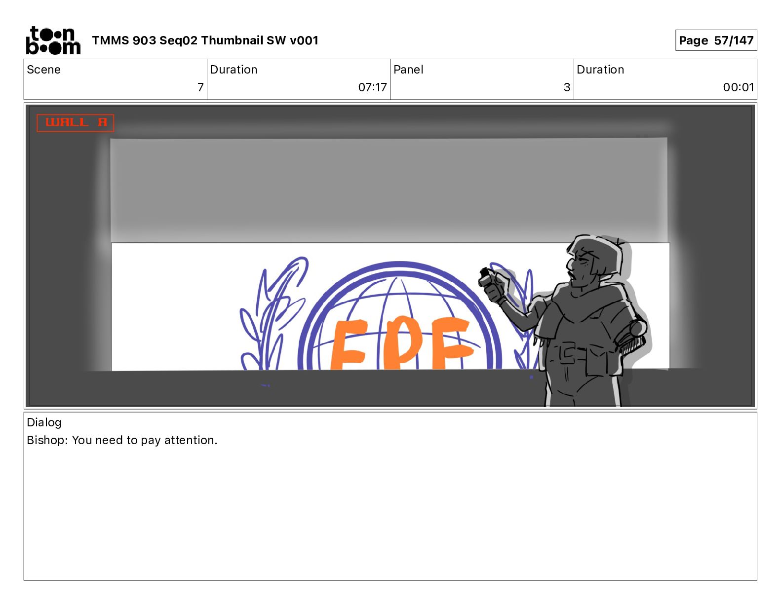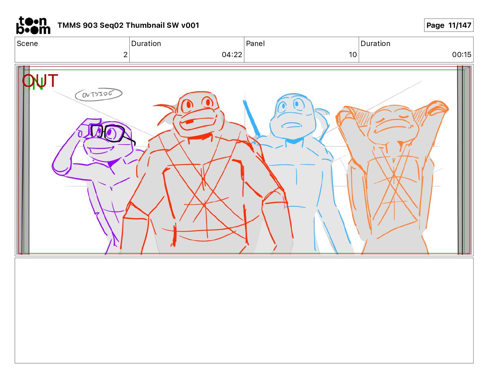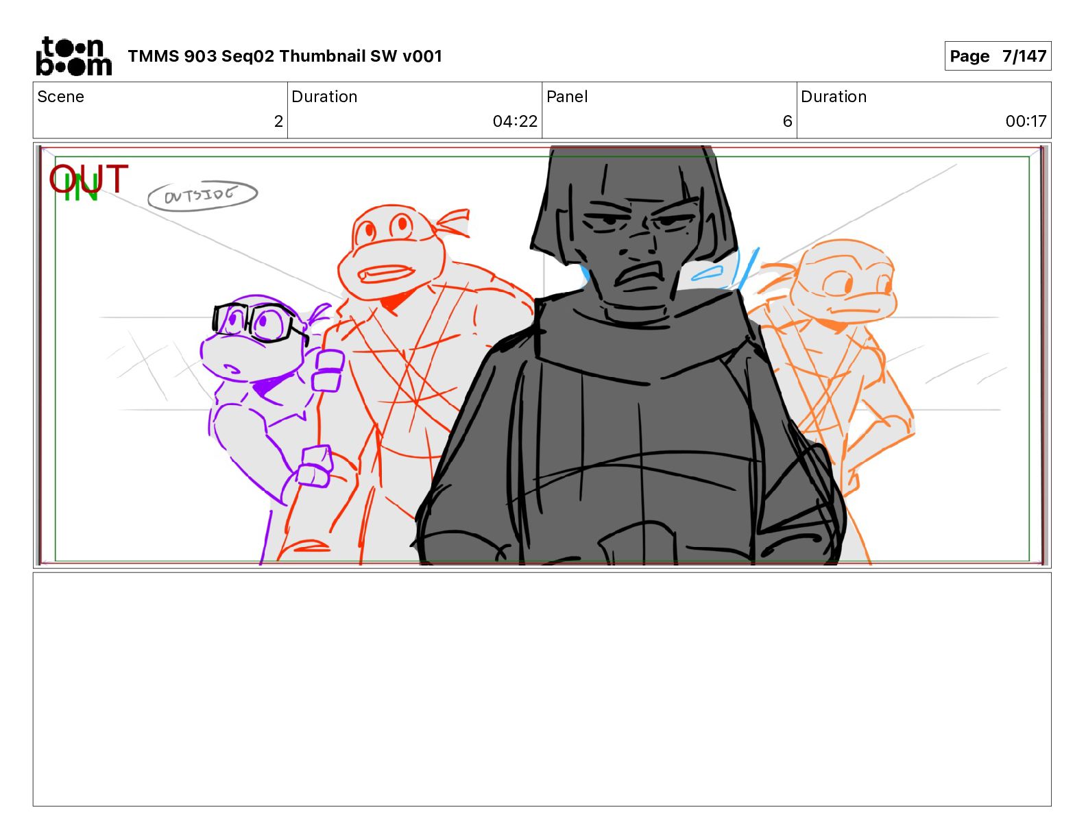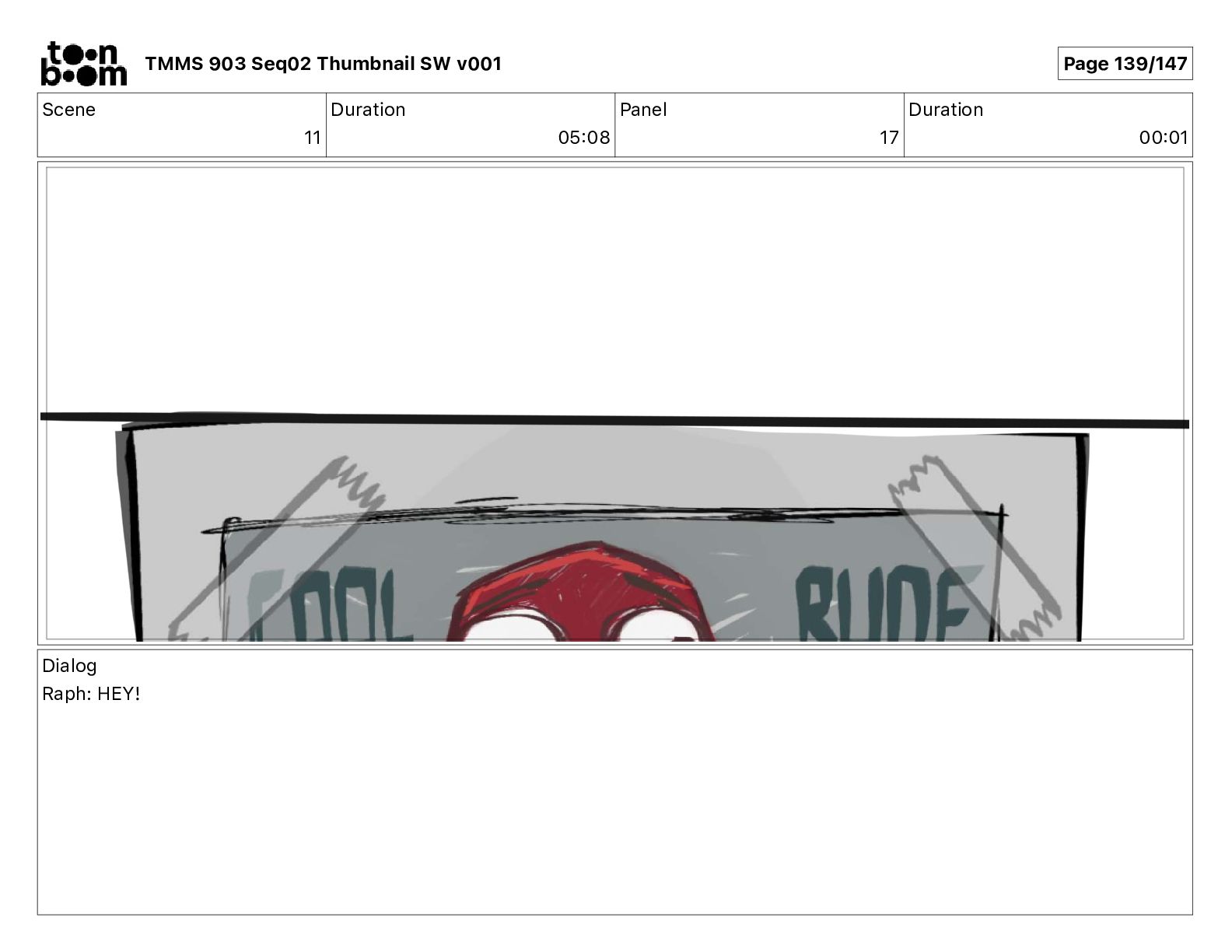 Dialog Mikey: It's not that secret, I found it on the internet. There's a giant hundred foot tall robot right behind that wall. TMMS 903 Seq02 Thumbnail SW v001 Page 17/147