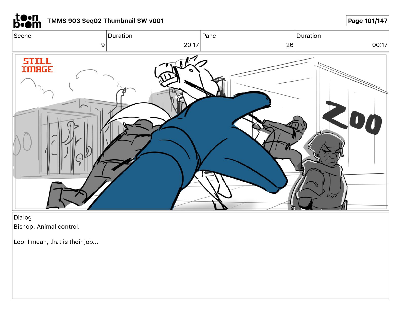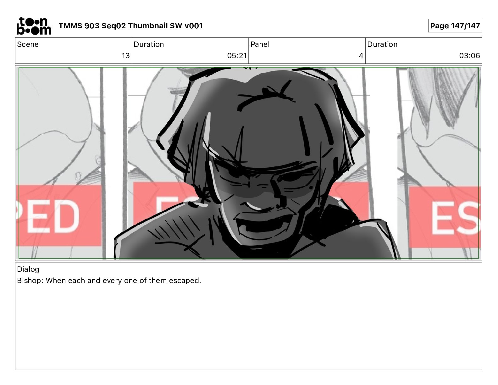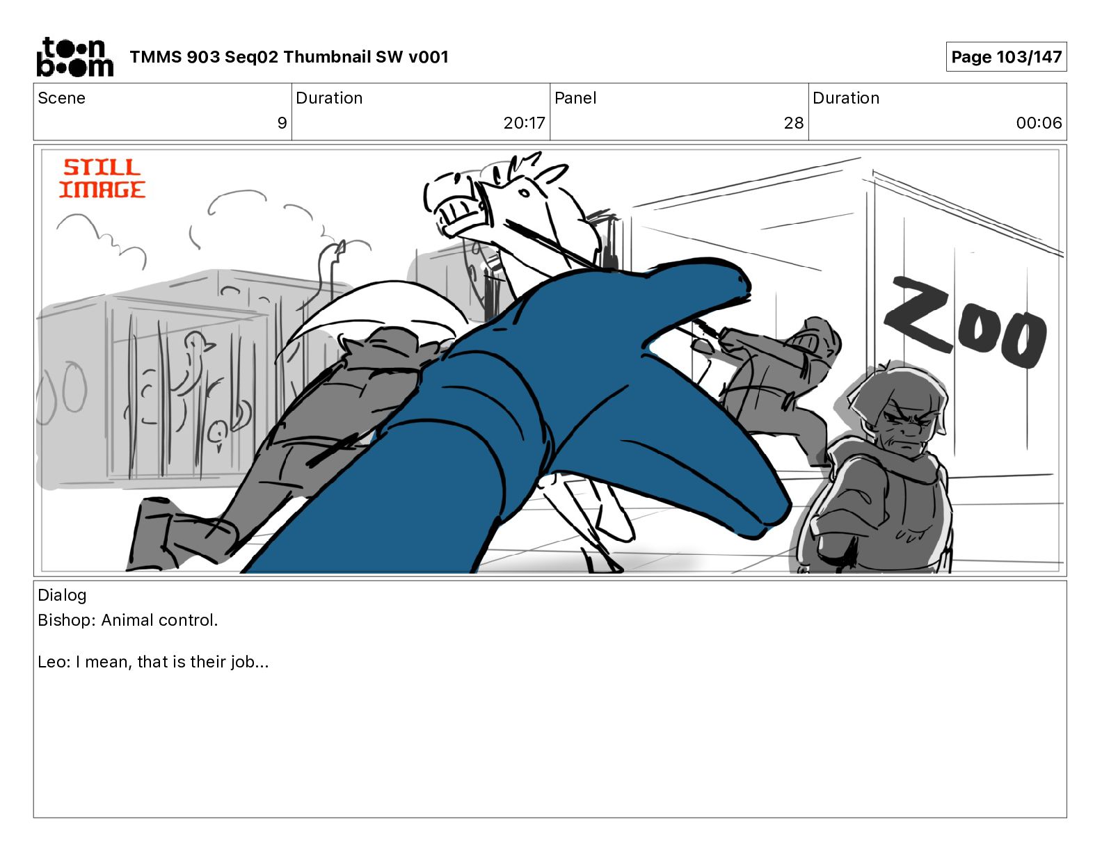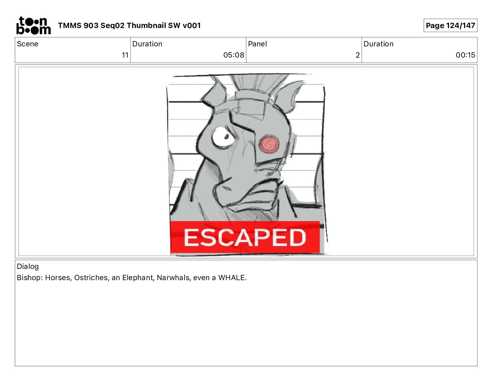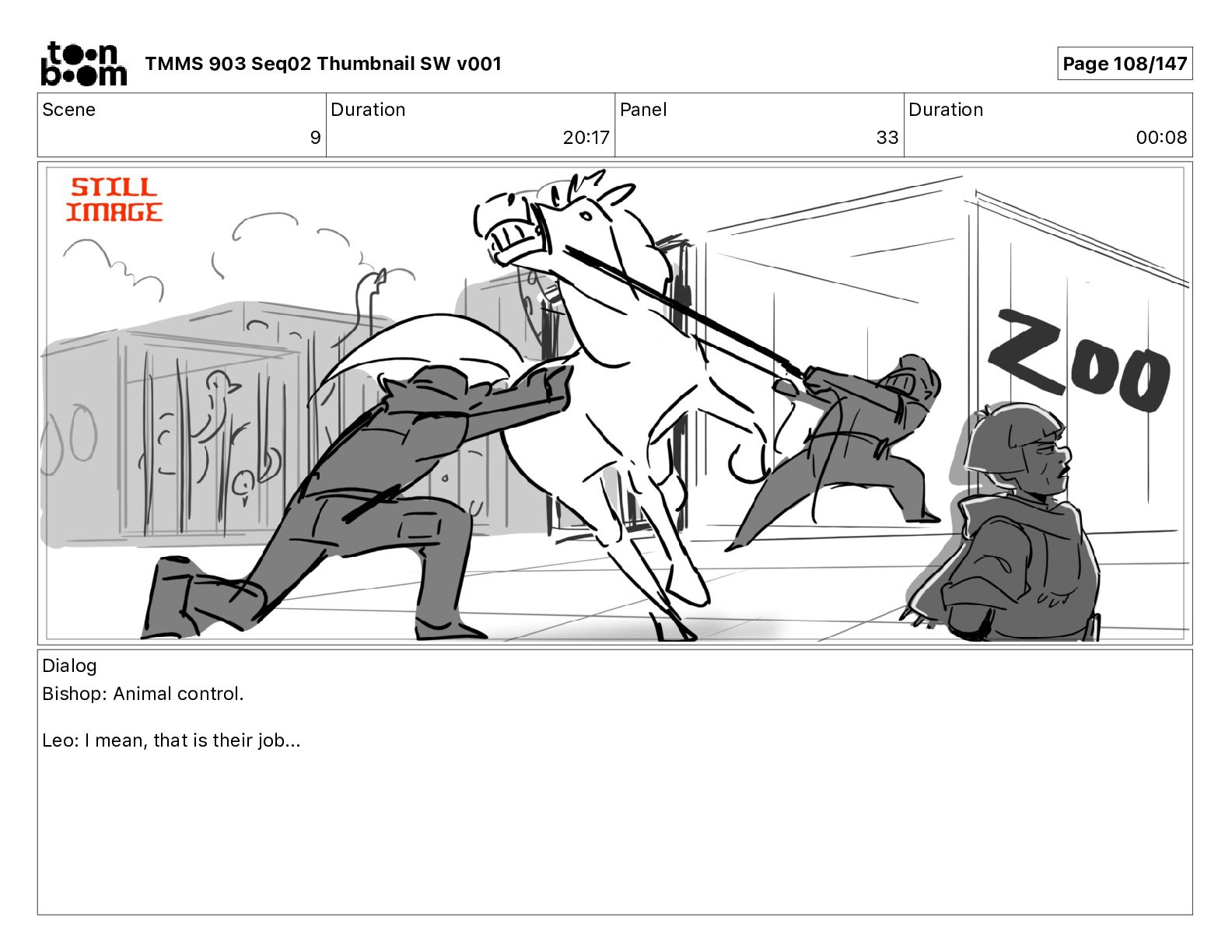 Dialog Bishop: When you somehow de-mutated the mutant fly, it separated into individual animals, all running wild in the street. TMMS 903 Seq02 Thumbnail SW v001 Page 81/147