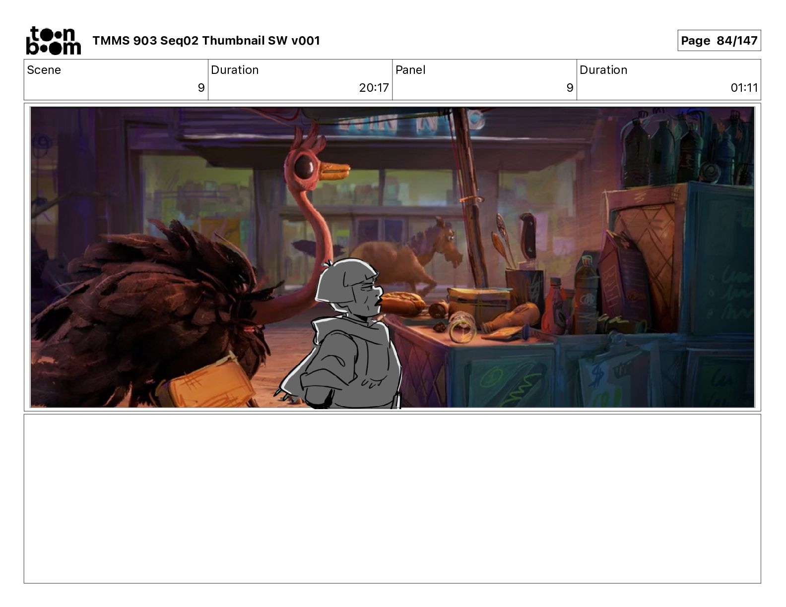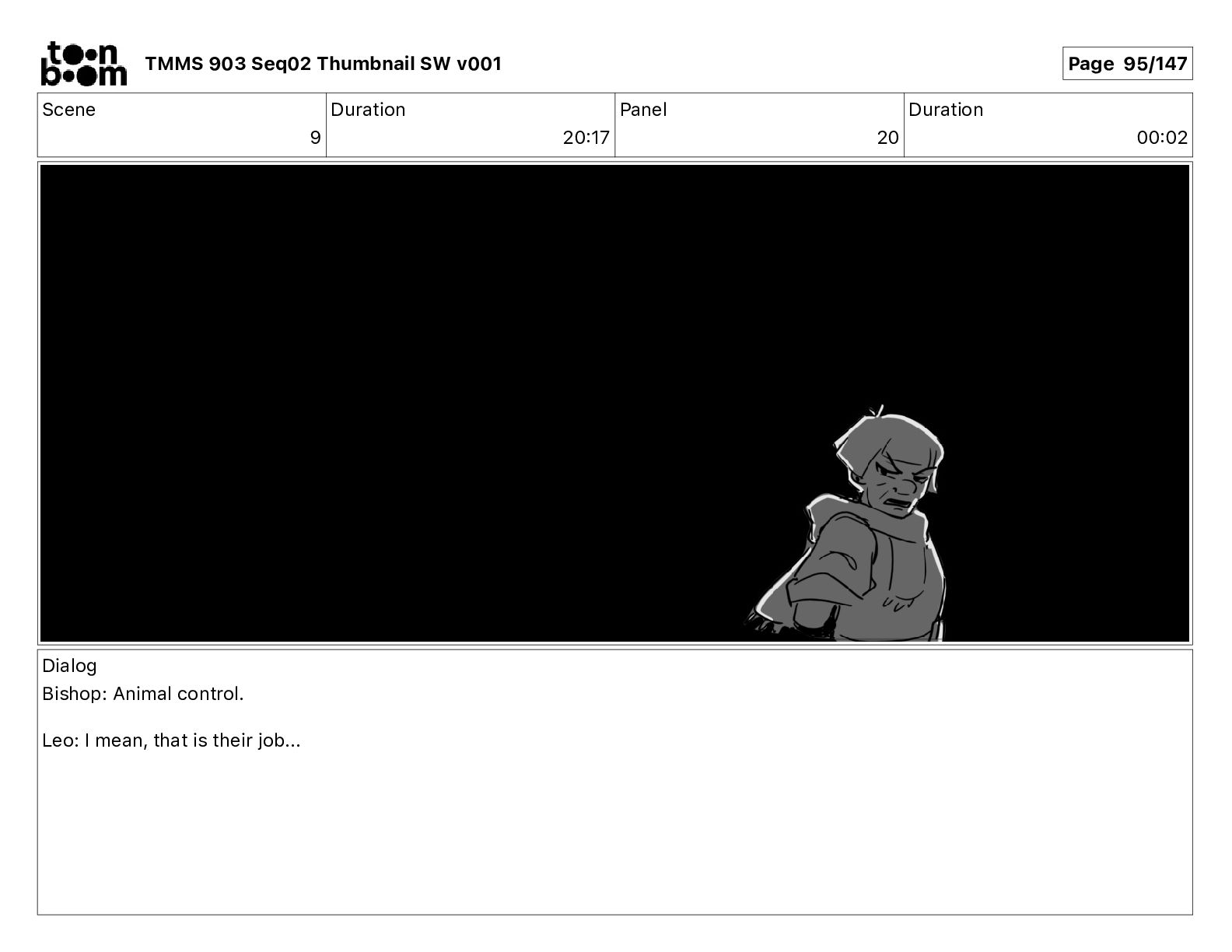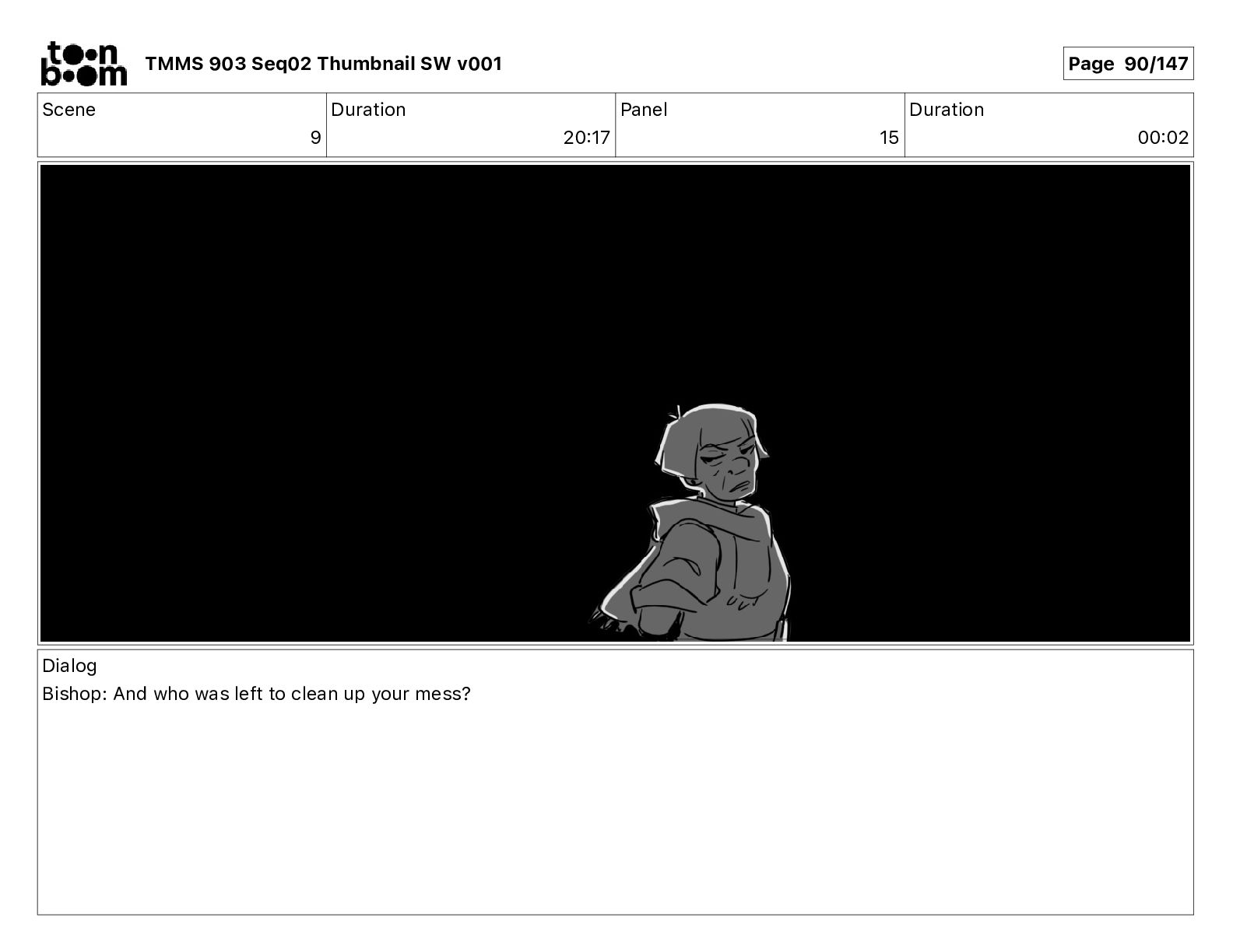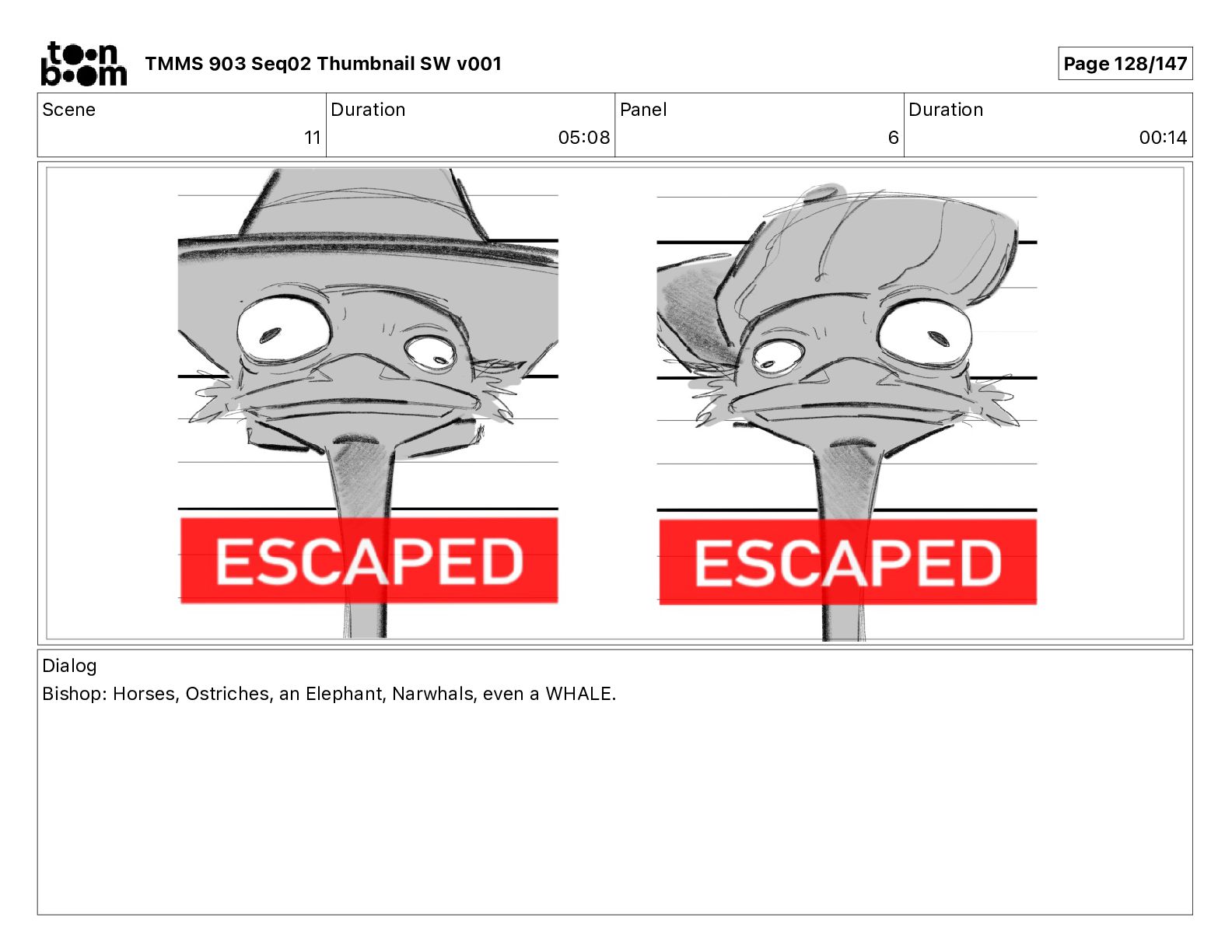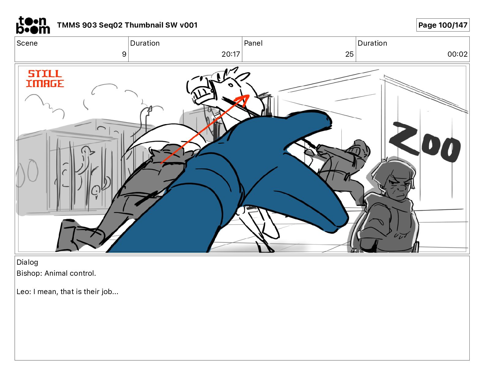 Dialog Bishop: When you somehow de-mutated the mutant fly, it separated into individual animals, all running wild in the street. TMMS 903 Seq02 Thumbnail SW v001 Page 81/147