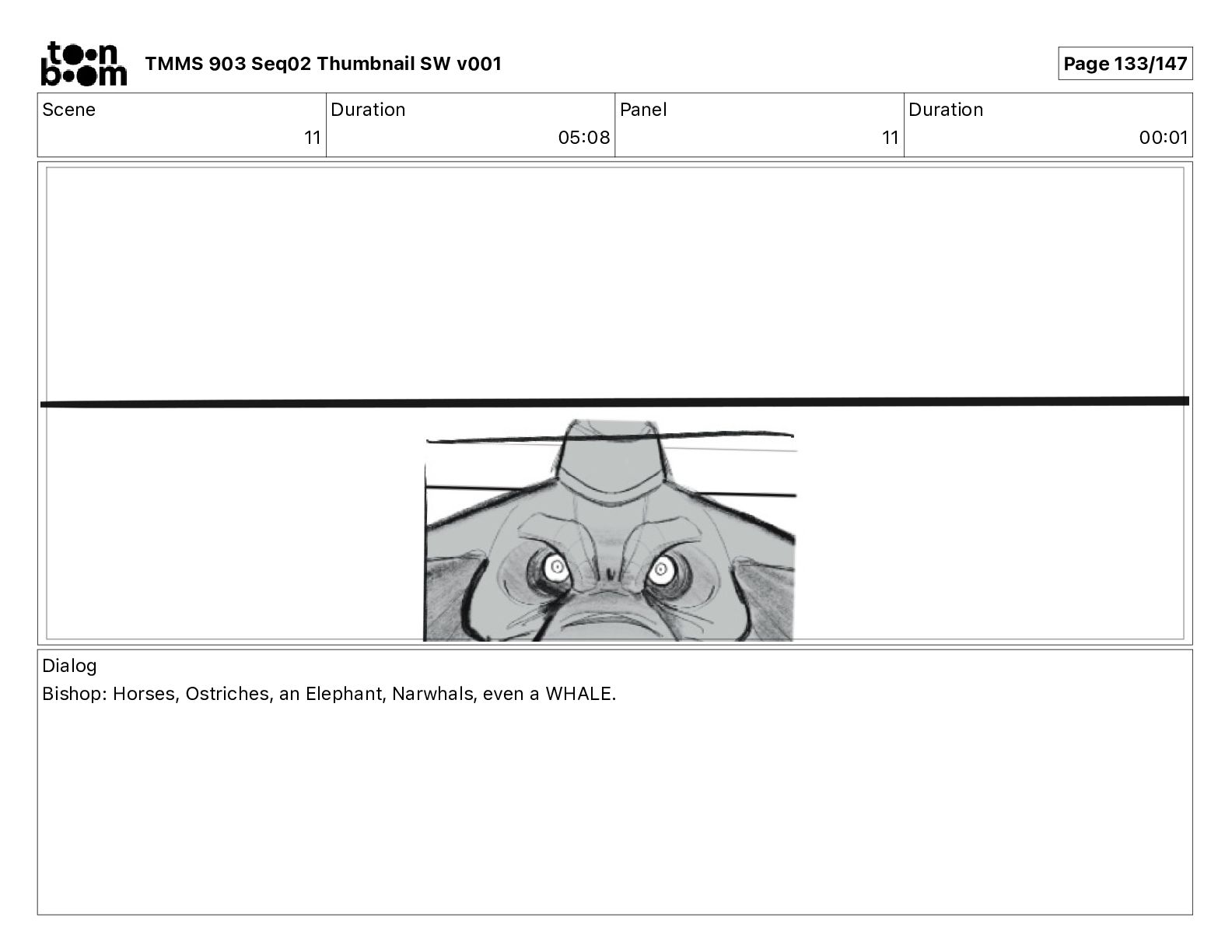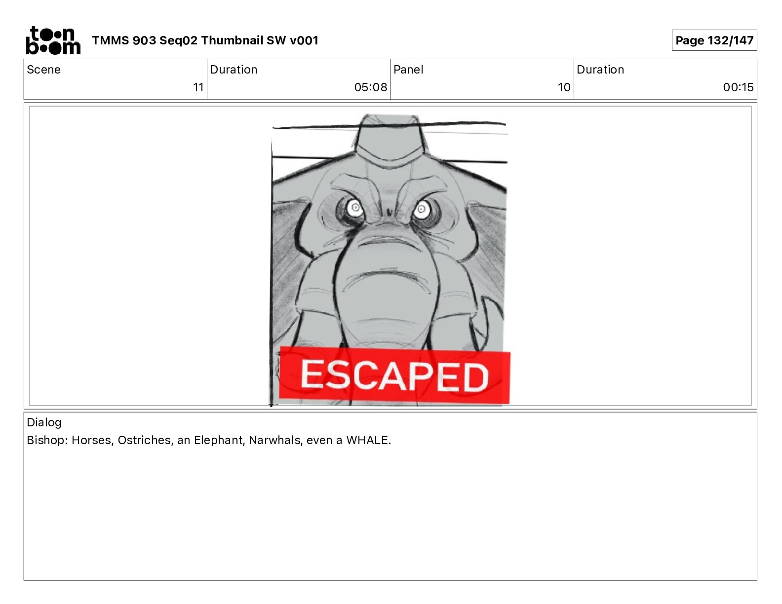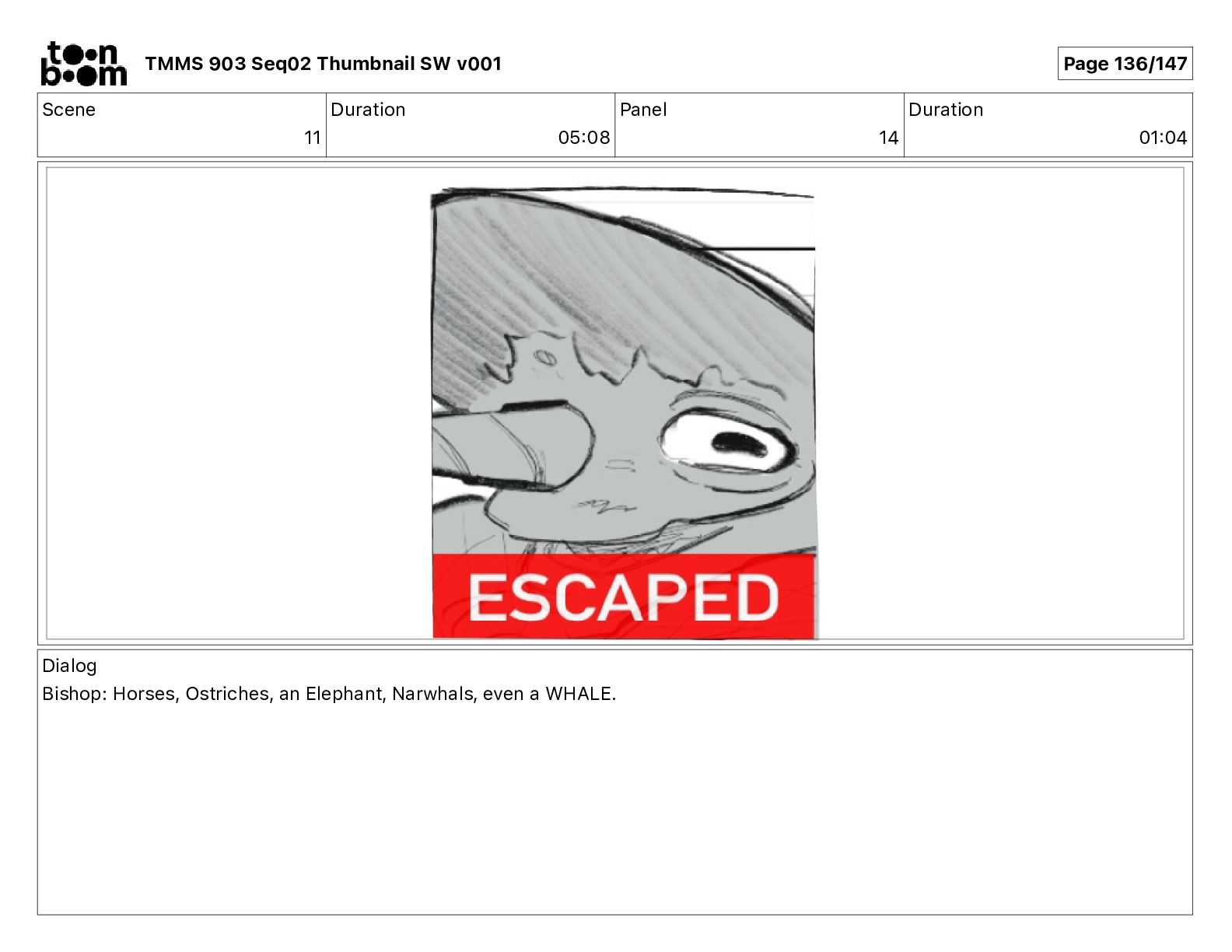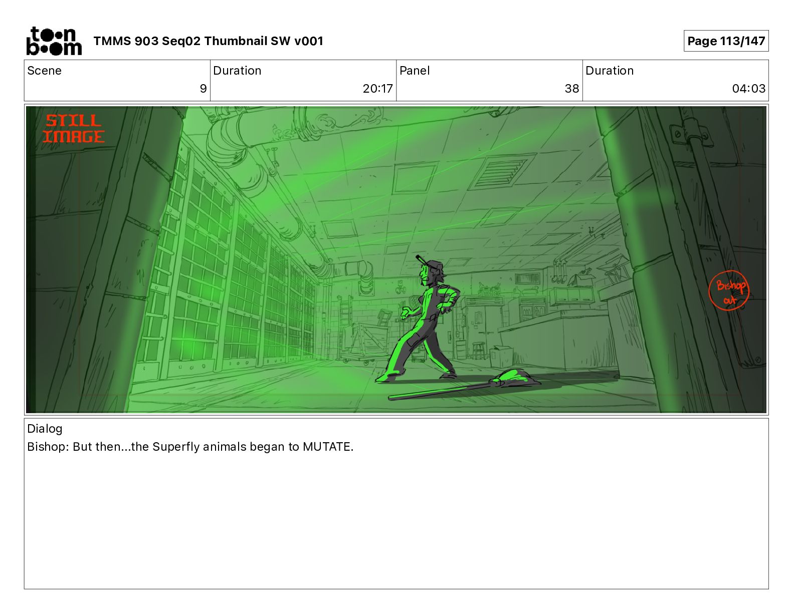 Dialog Bishop: When you somehow de-mutated the mutant fly, it separated into individual animals, all running wild in the street. TMMS 903 Seq02 Thumbnail SW v001 Page 79/147