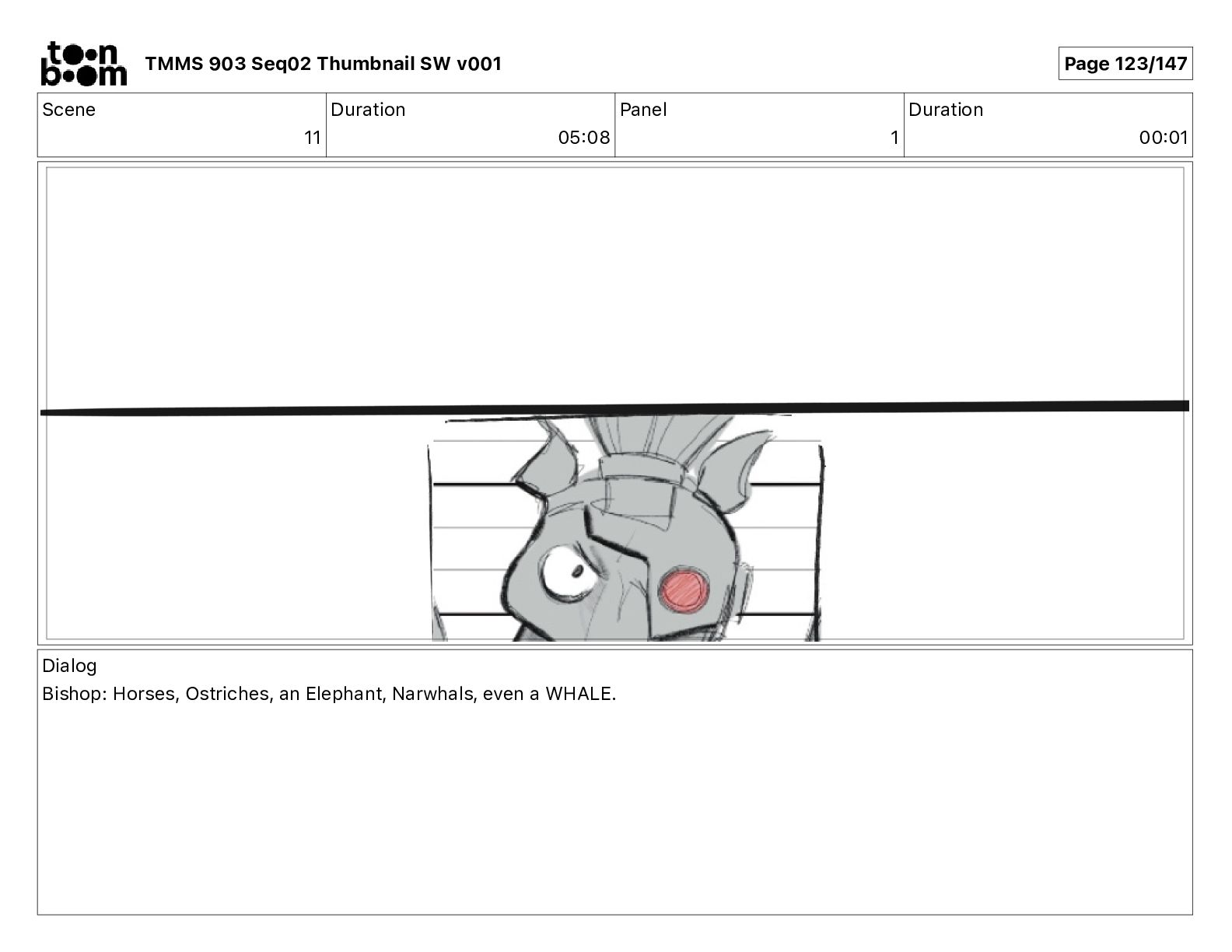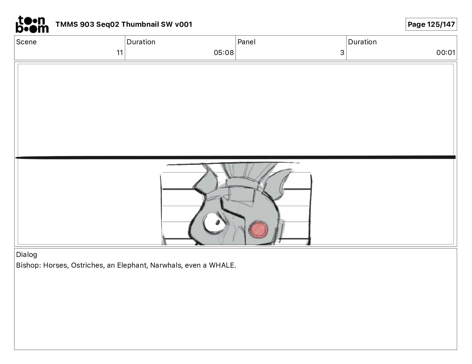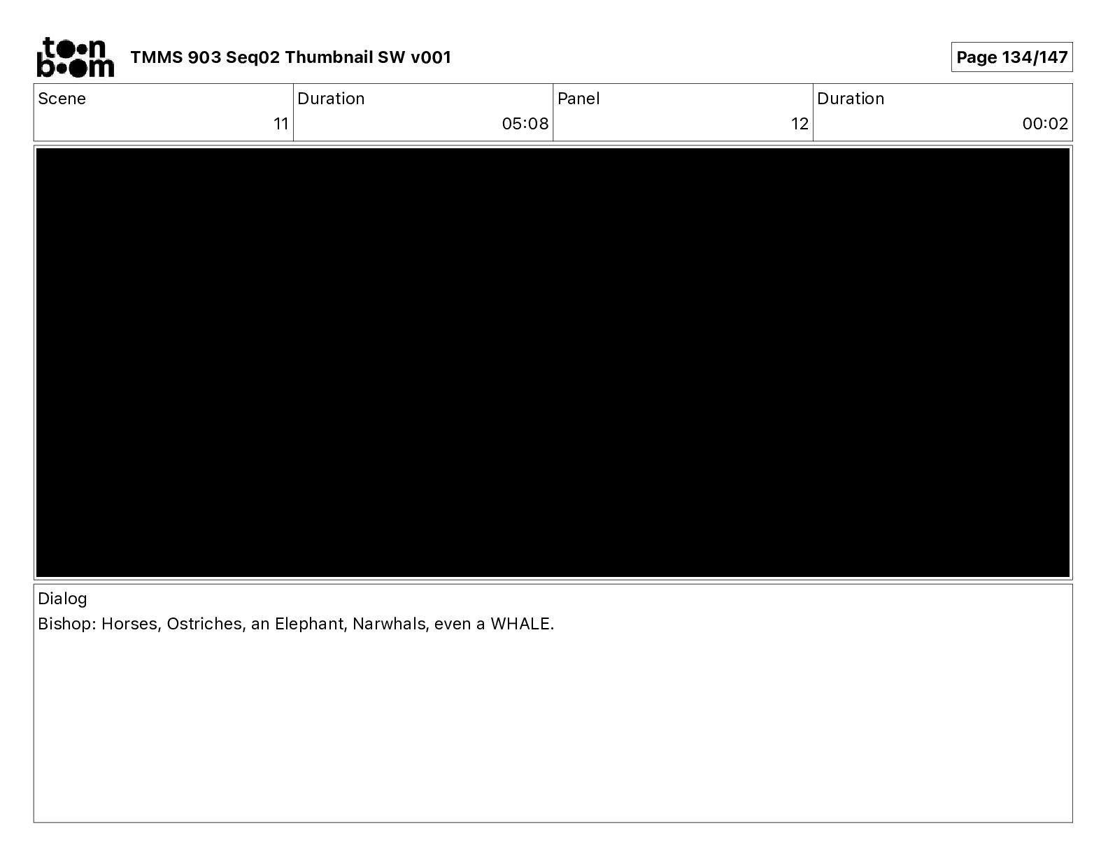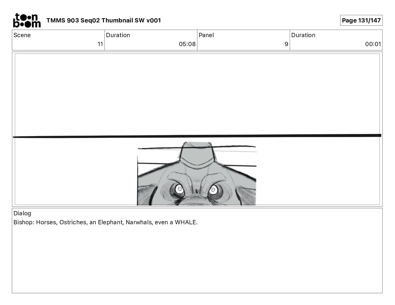 Dialog Bishop: When you somehow de-mutated the mutant fly, it separated into individual animals, all running wild in the street. TMMS 903 Seq02 Thumbnail SW v001 Page 79/147