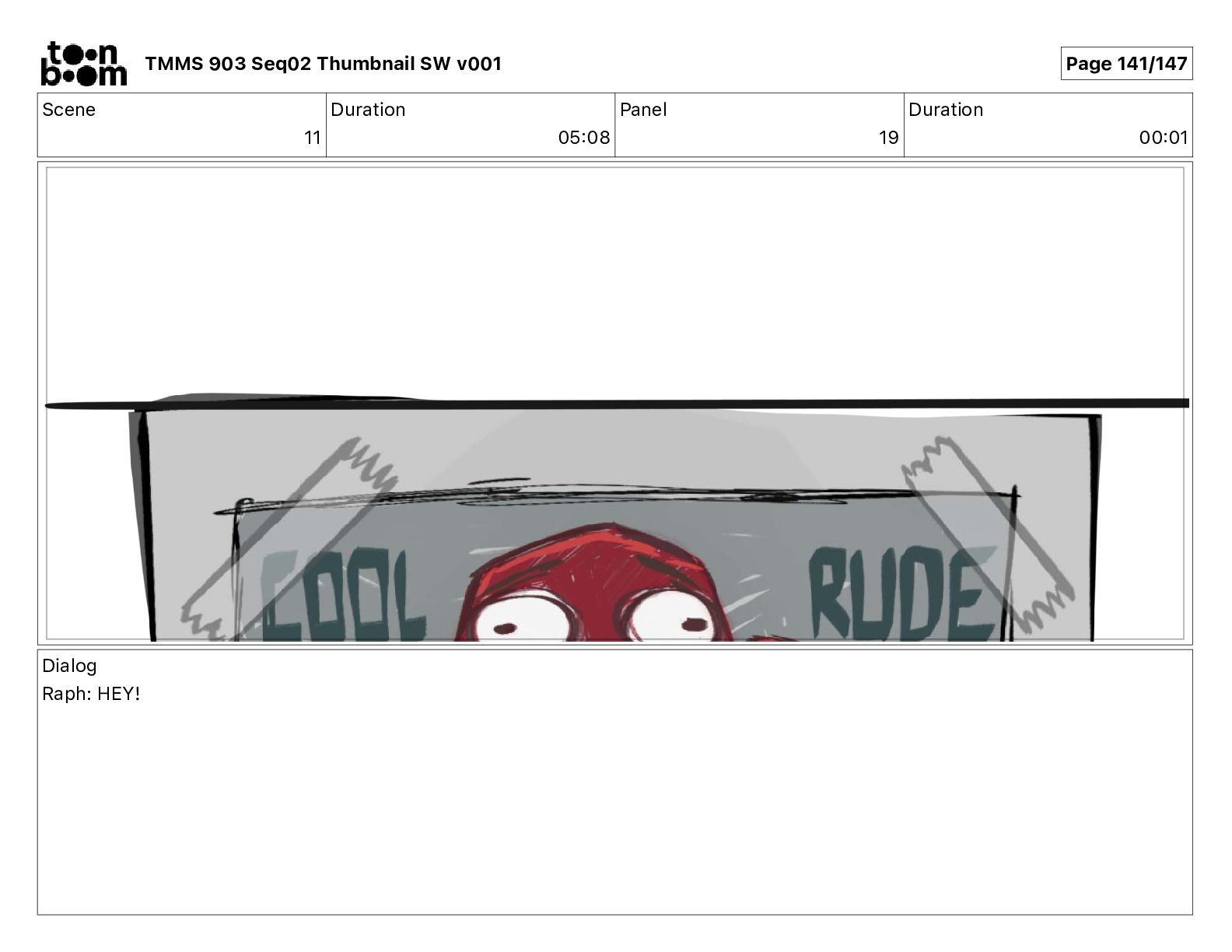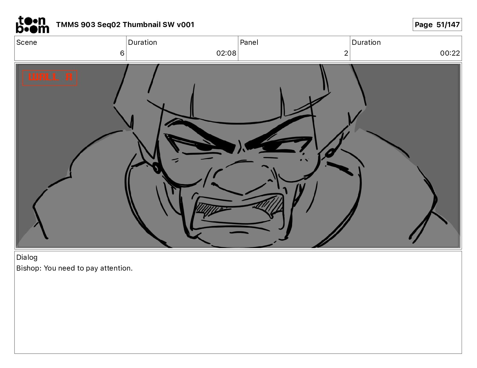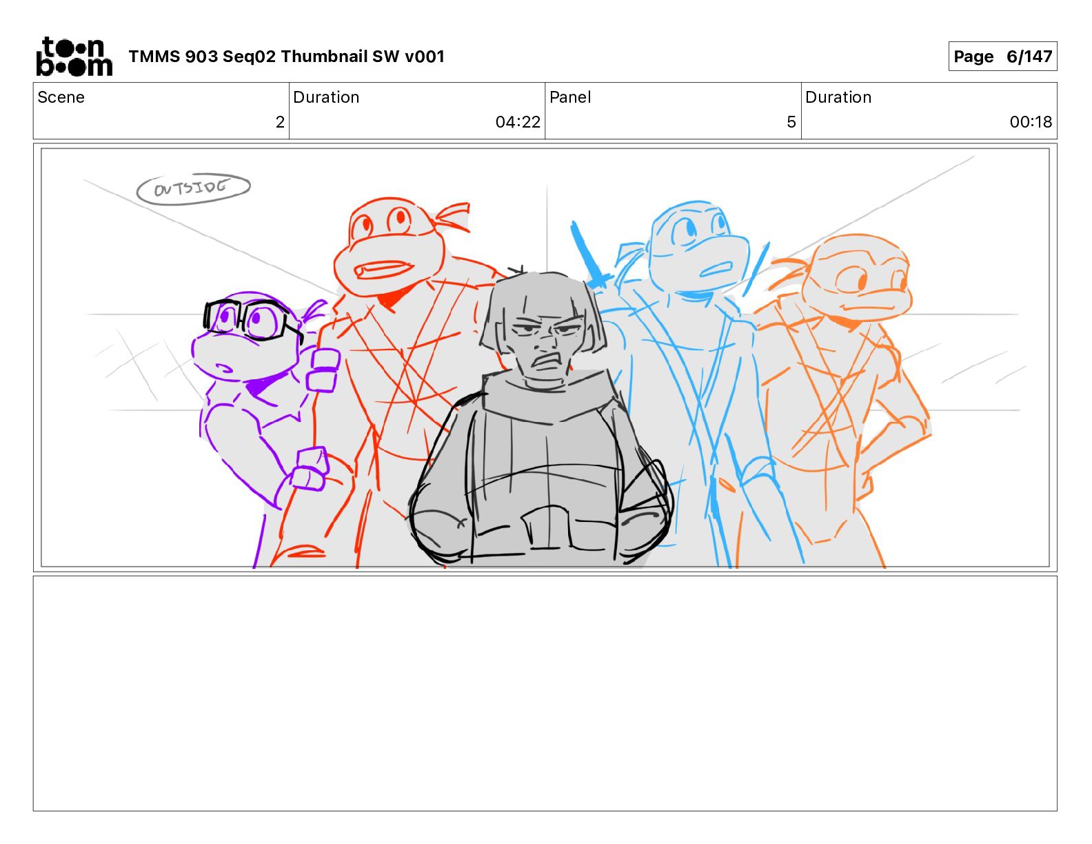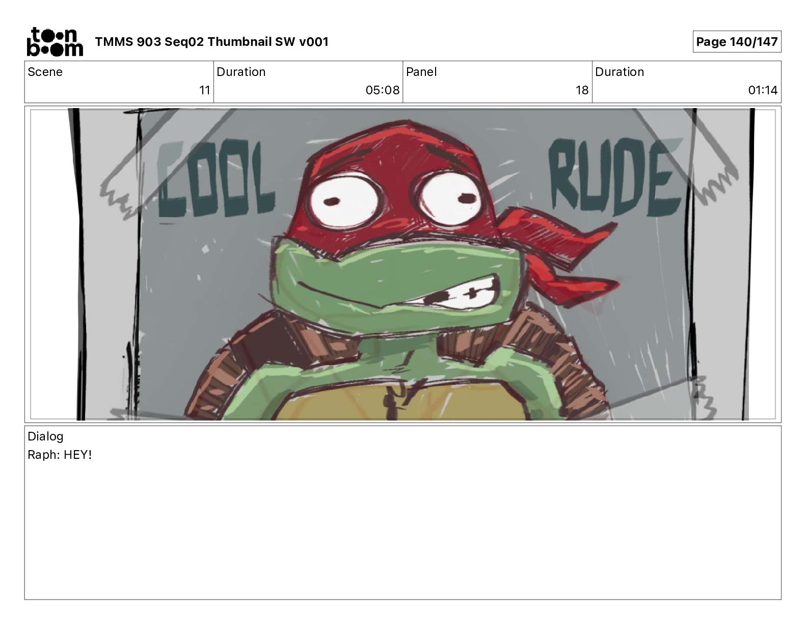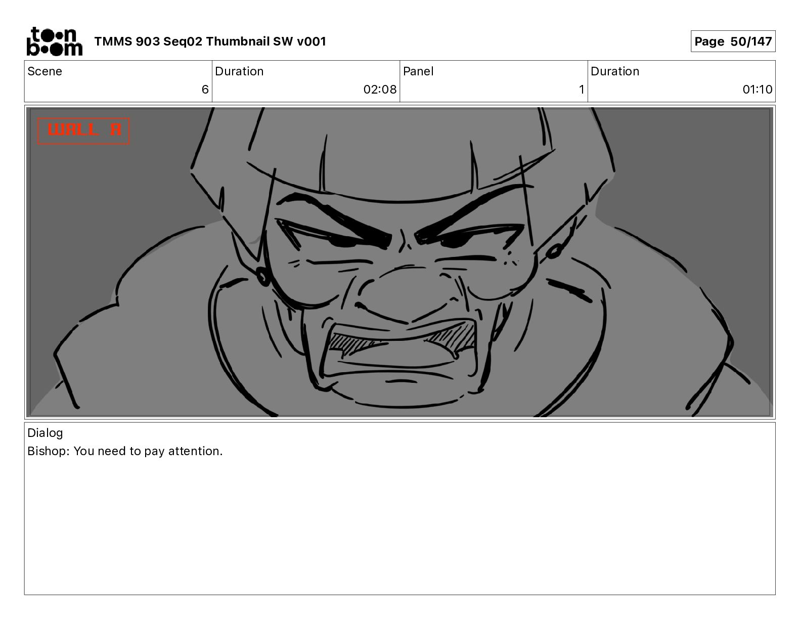 Dialog Mikey: It's not that secret, I found it on the internet. There's a giant hundred foot tall robot right behind that wall. TMMS 903 Seq02 Thumbnail SW v001 Page 20/147