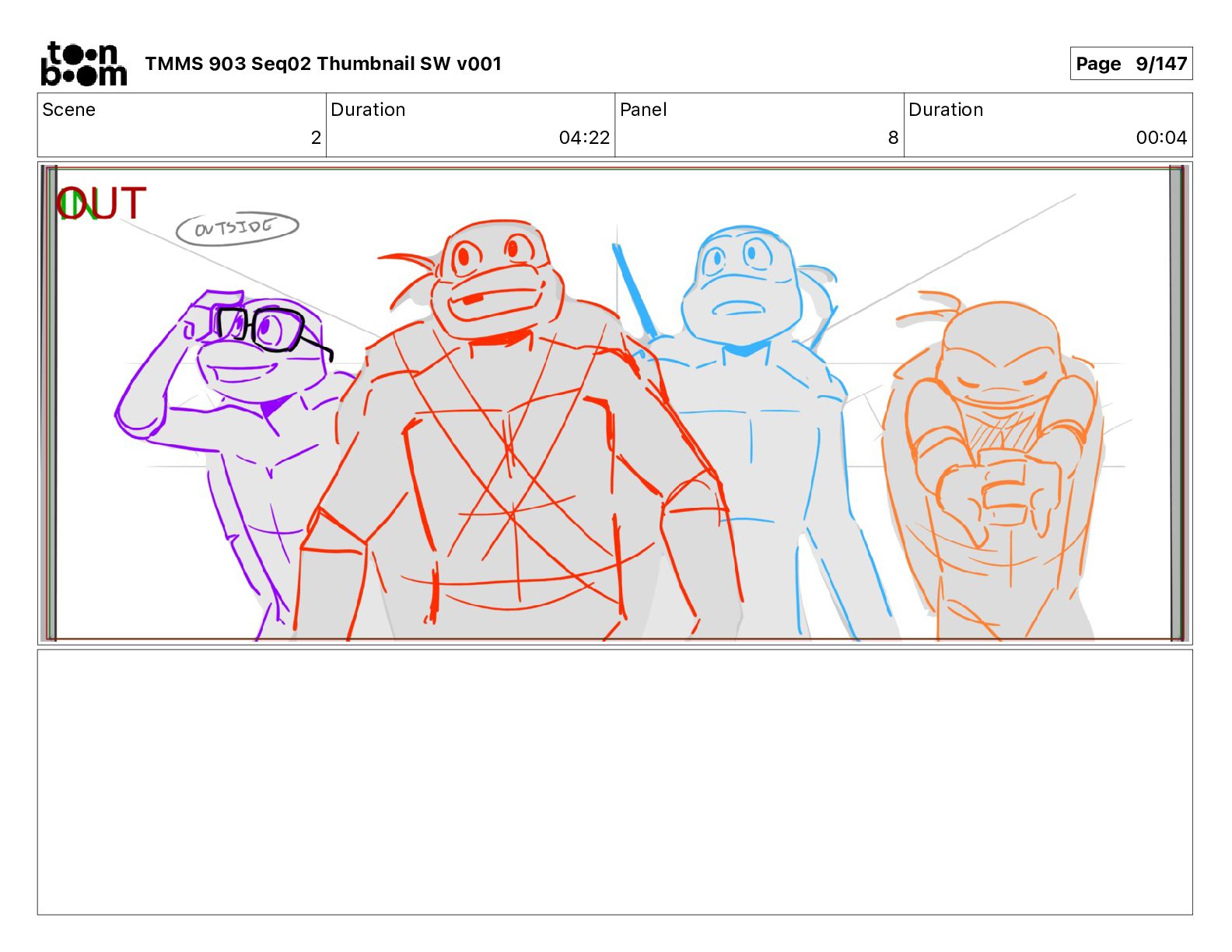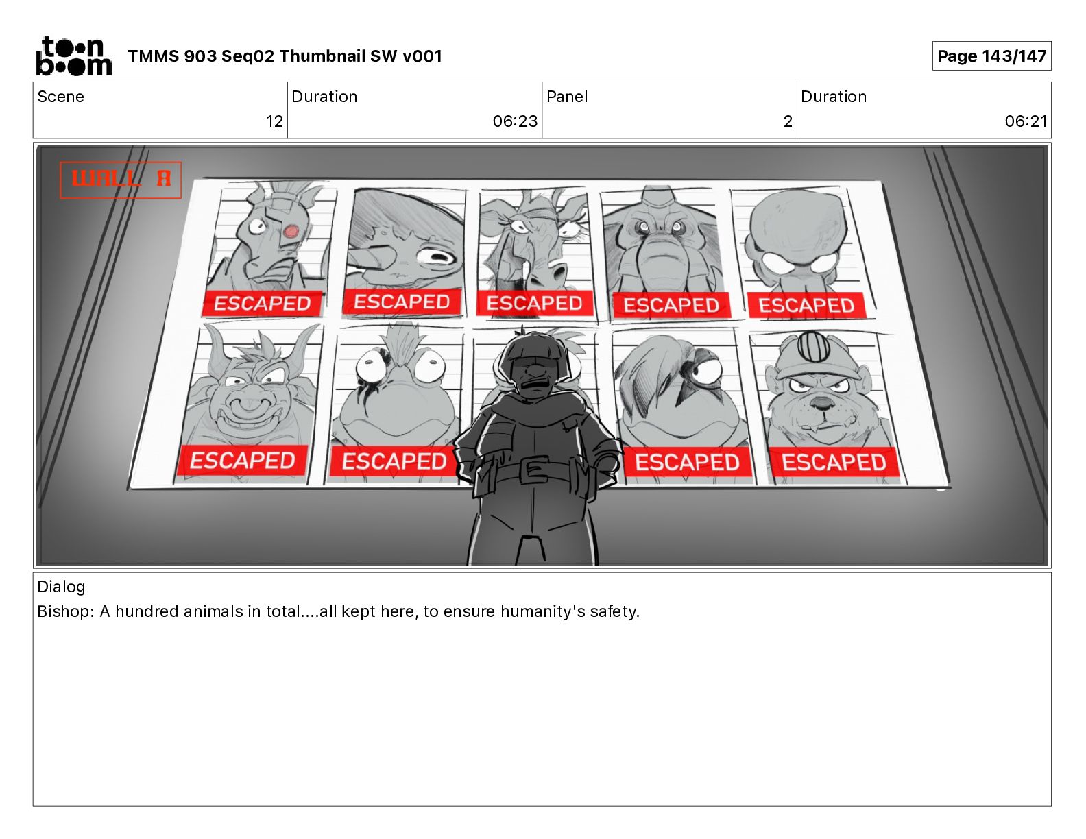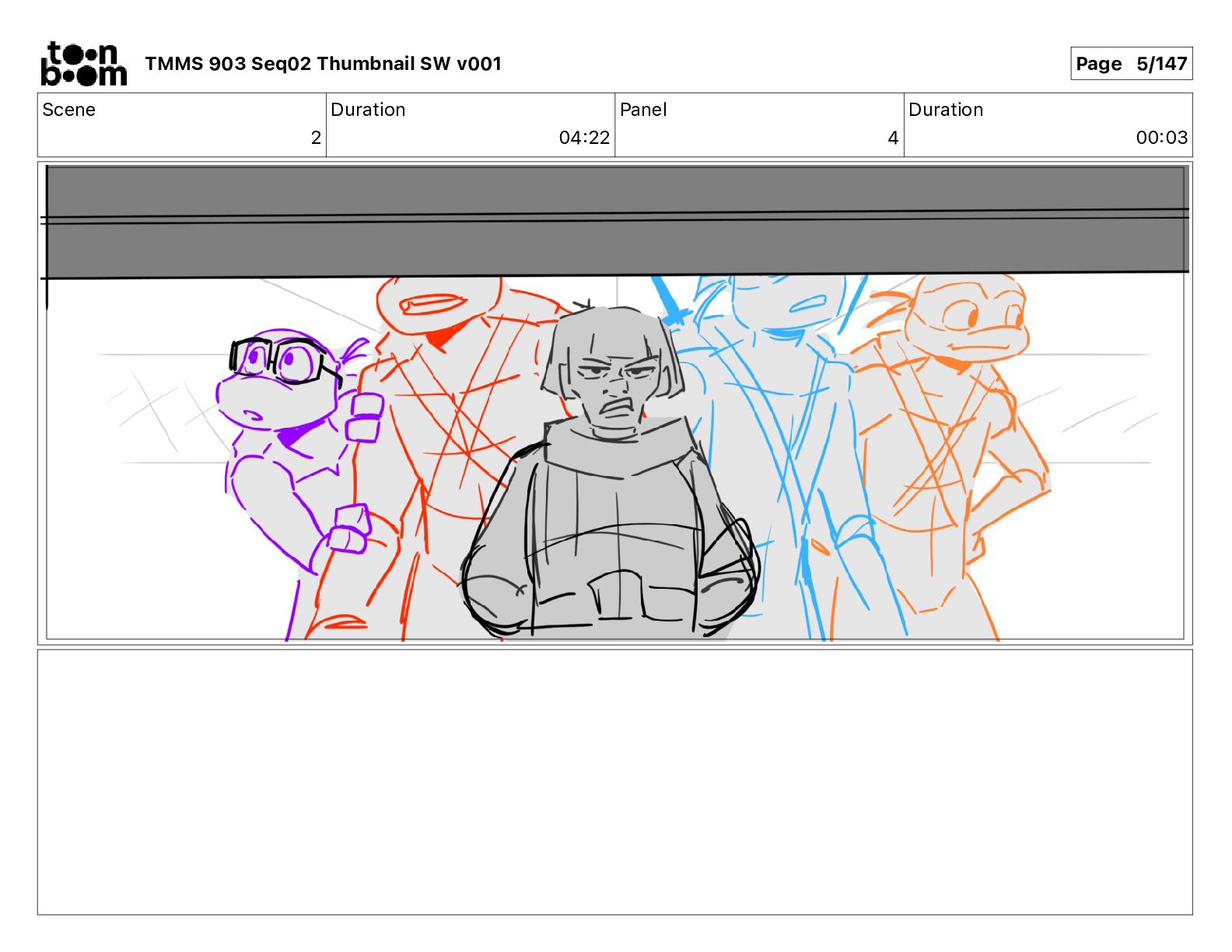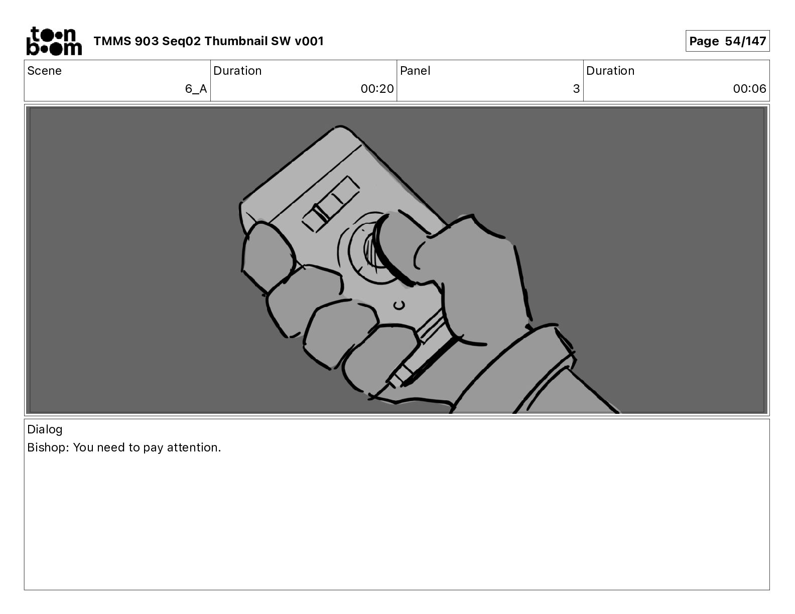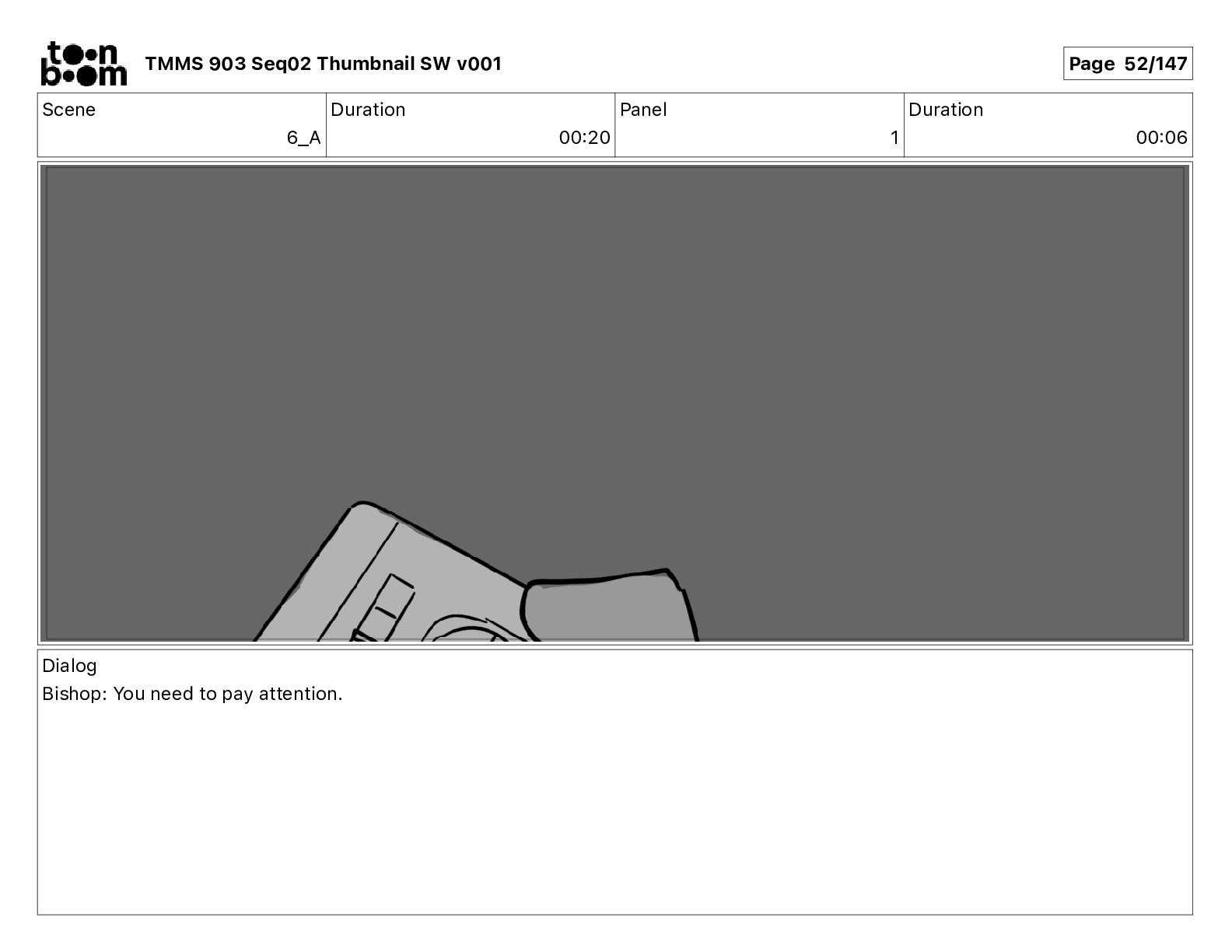 Dialog Mikey: It's not that secret, I found it on the internet. There's a giant hundred foot tall robot right behind that wall. TMMS 903 Seq02 Thumbnail SW v001 Page 20/147