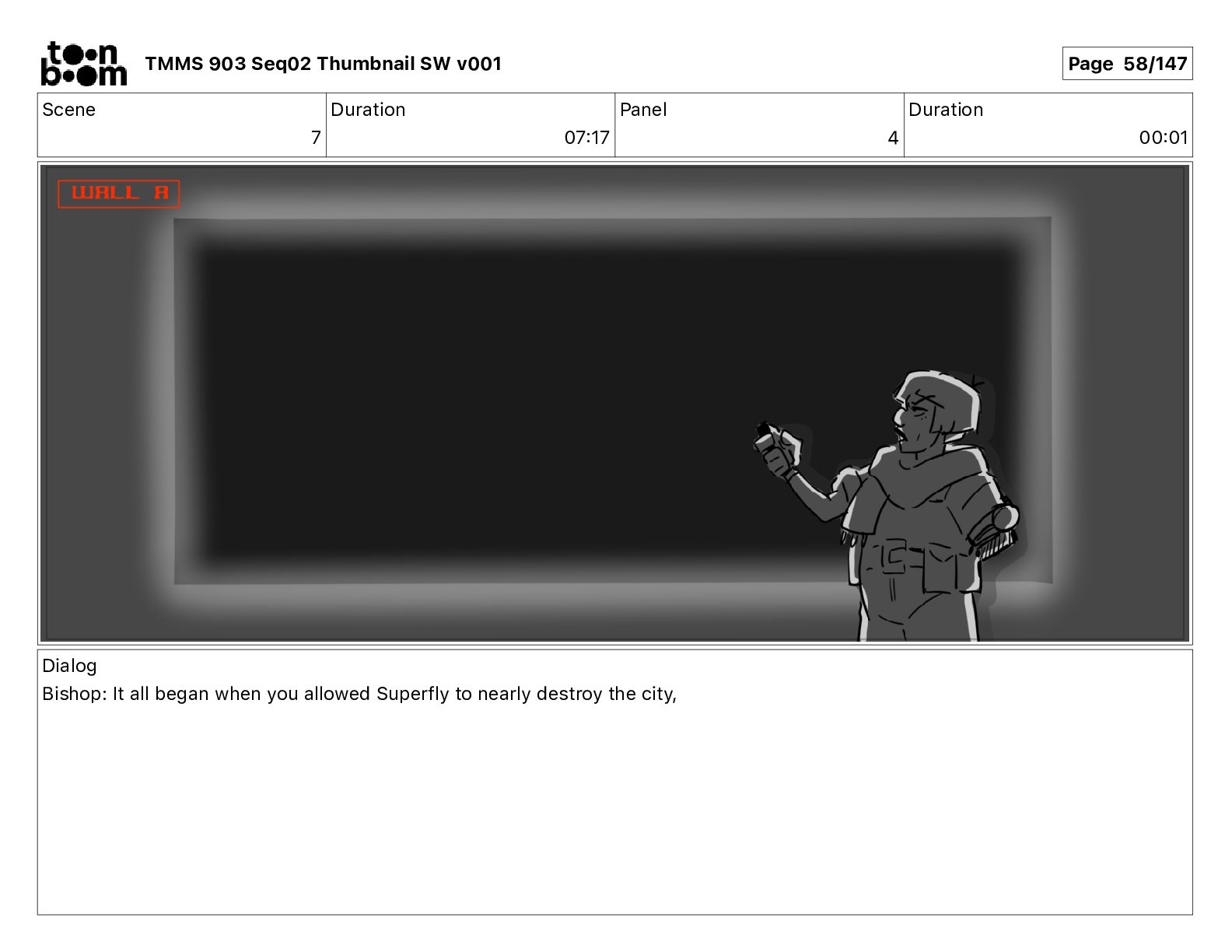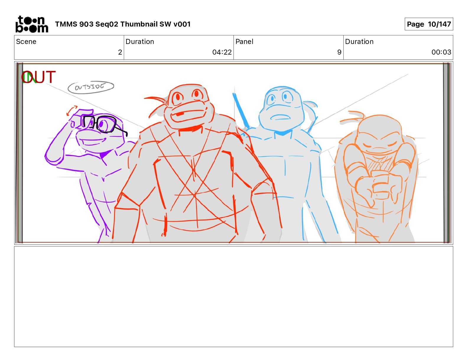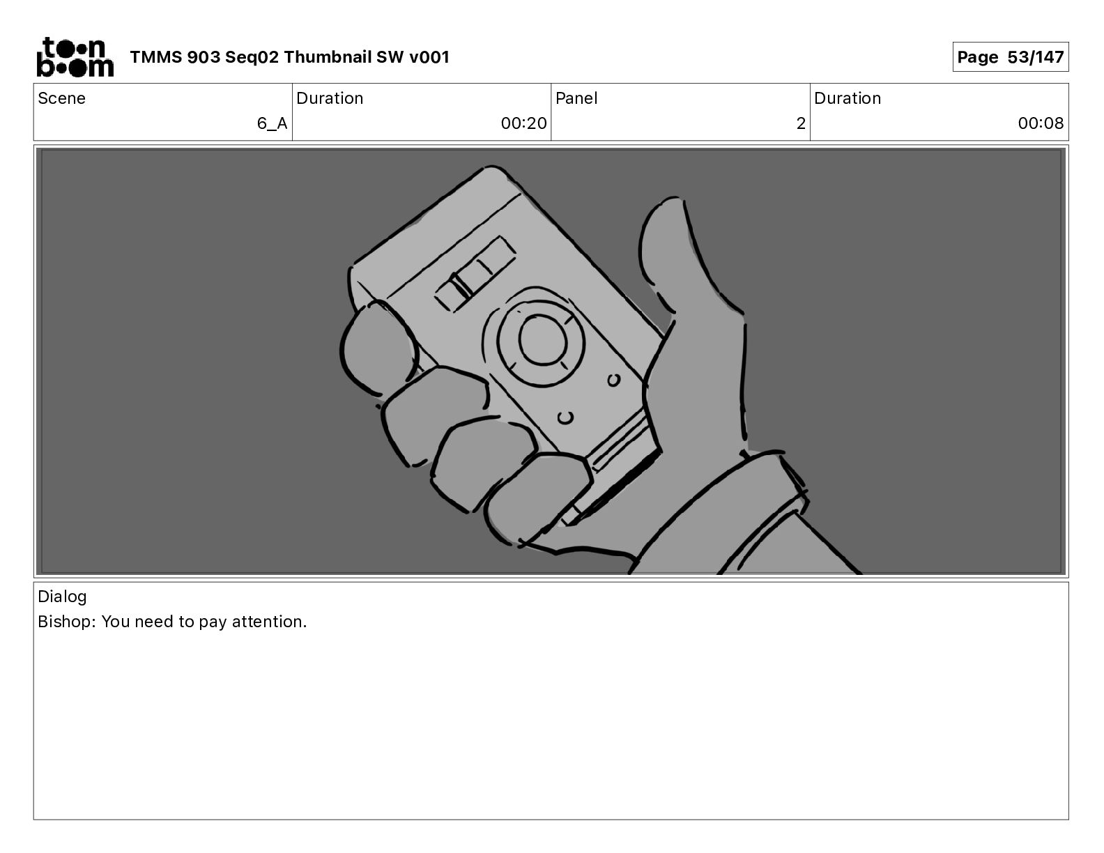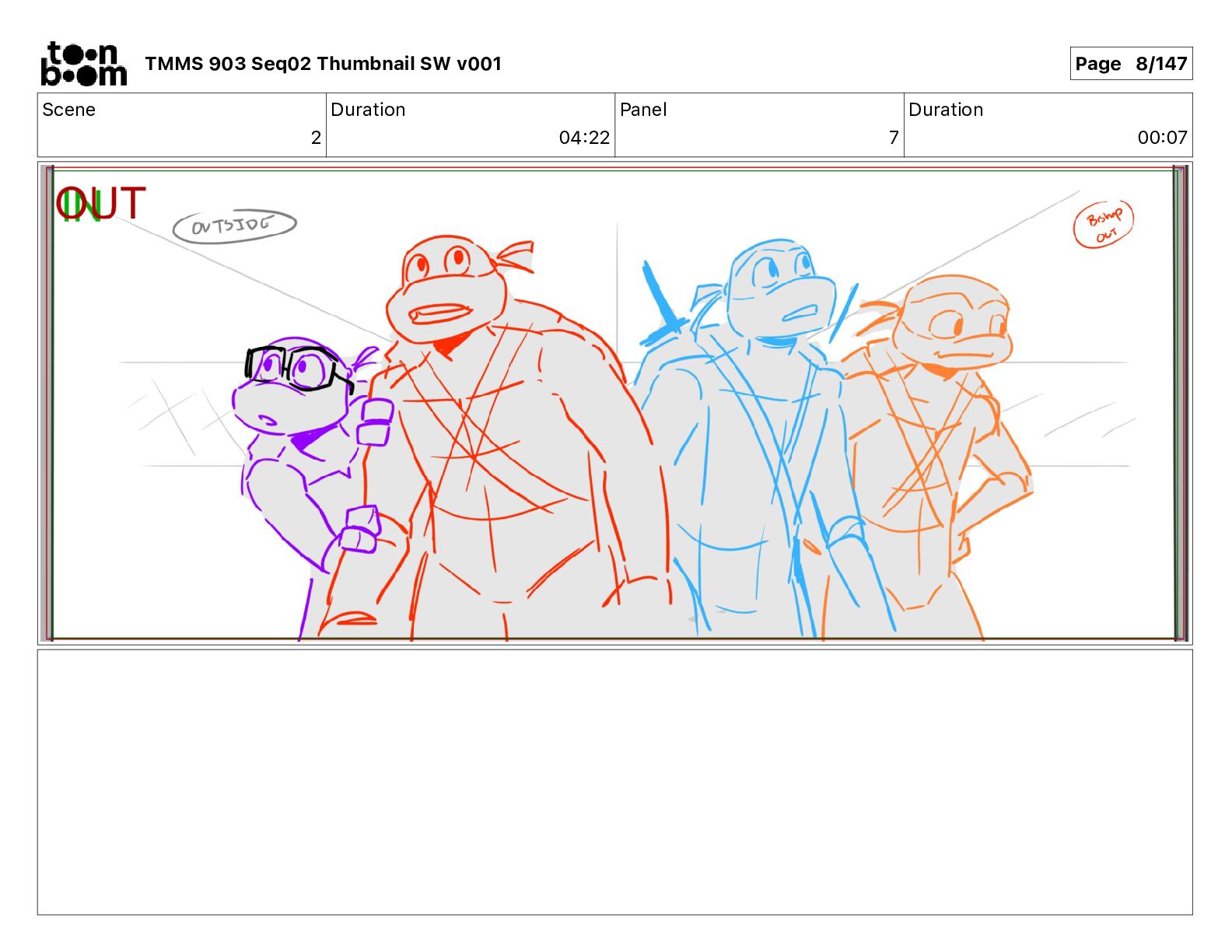 Dialog Mikey: It's not that secret, I found it on the internet. There's a giant hundred foot tall robot right behind that wall. TMMS 903 Seq02 Thumbnail SW v001 Page 20/147