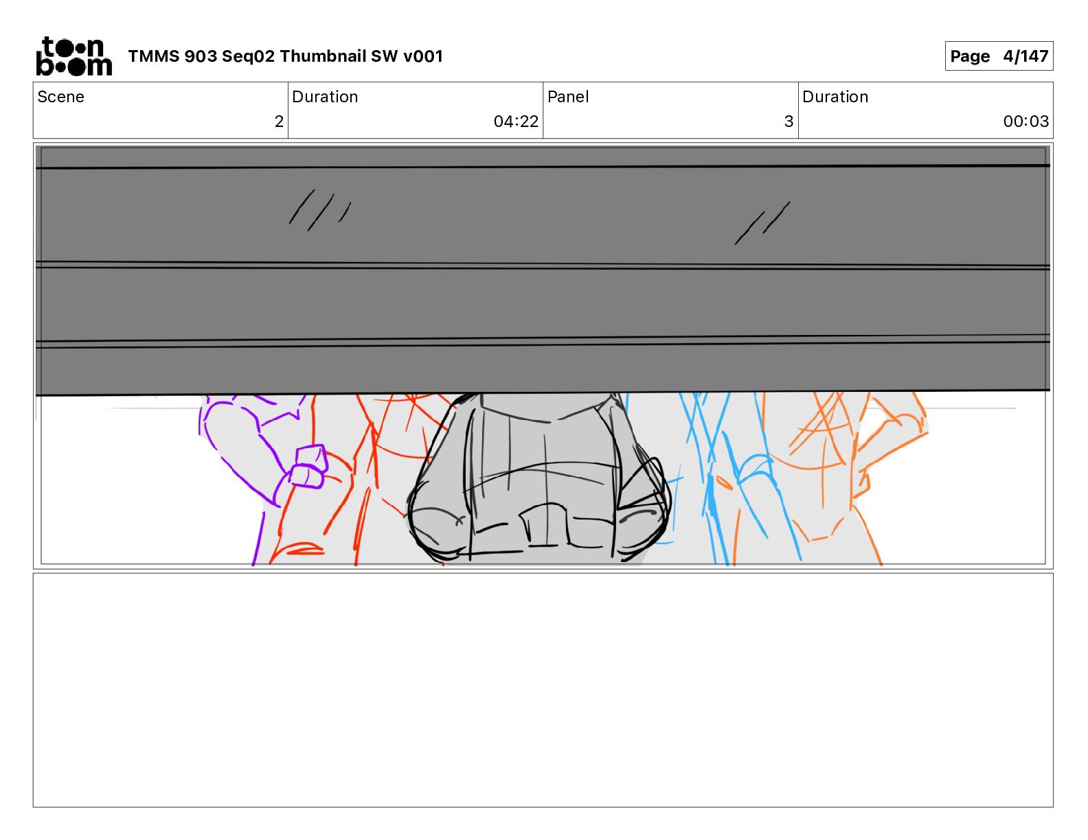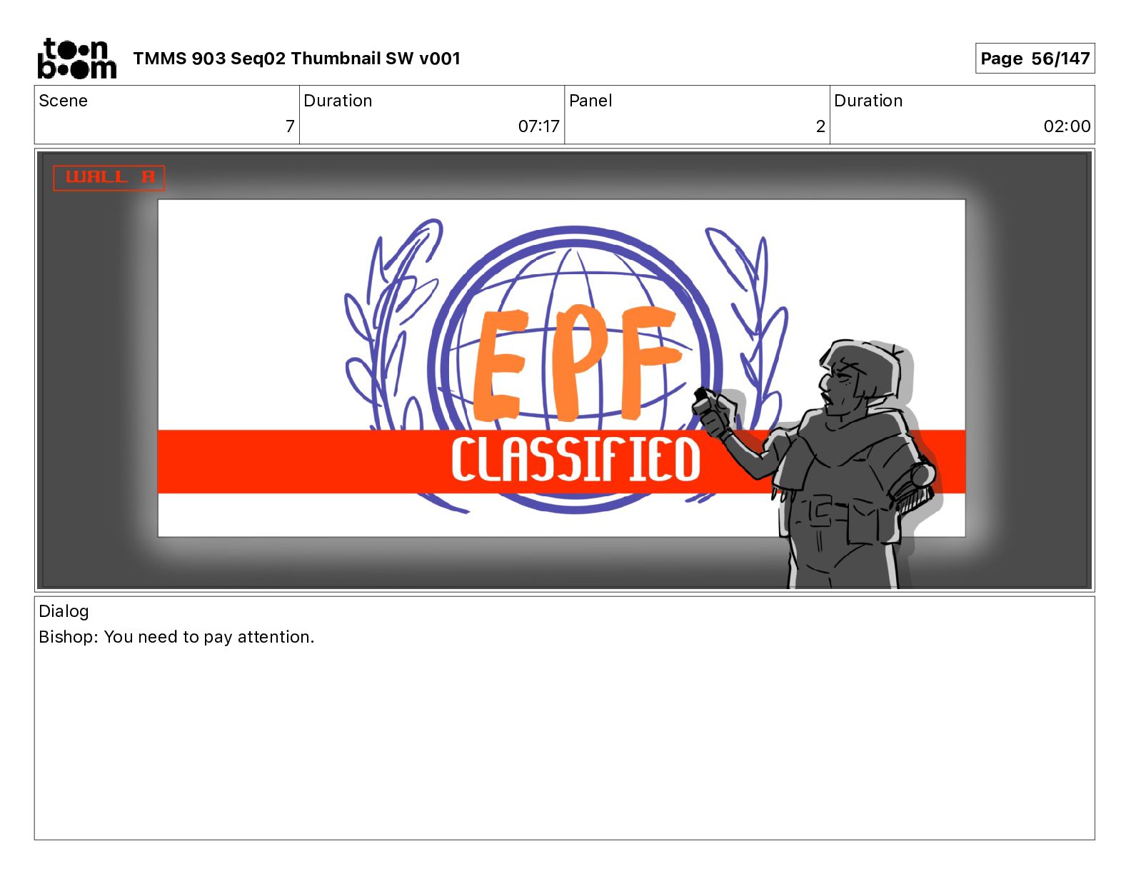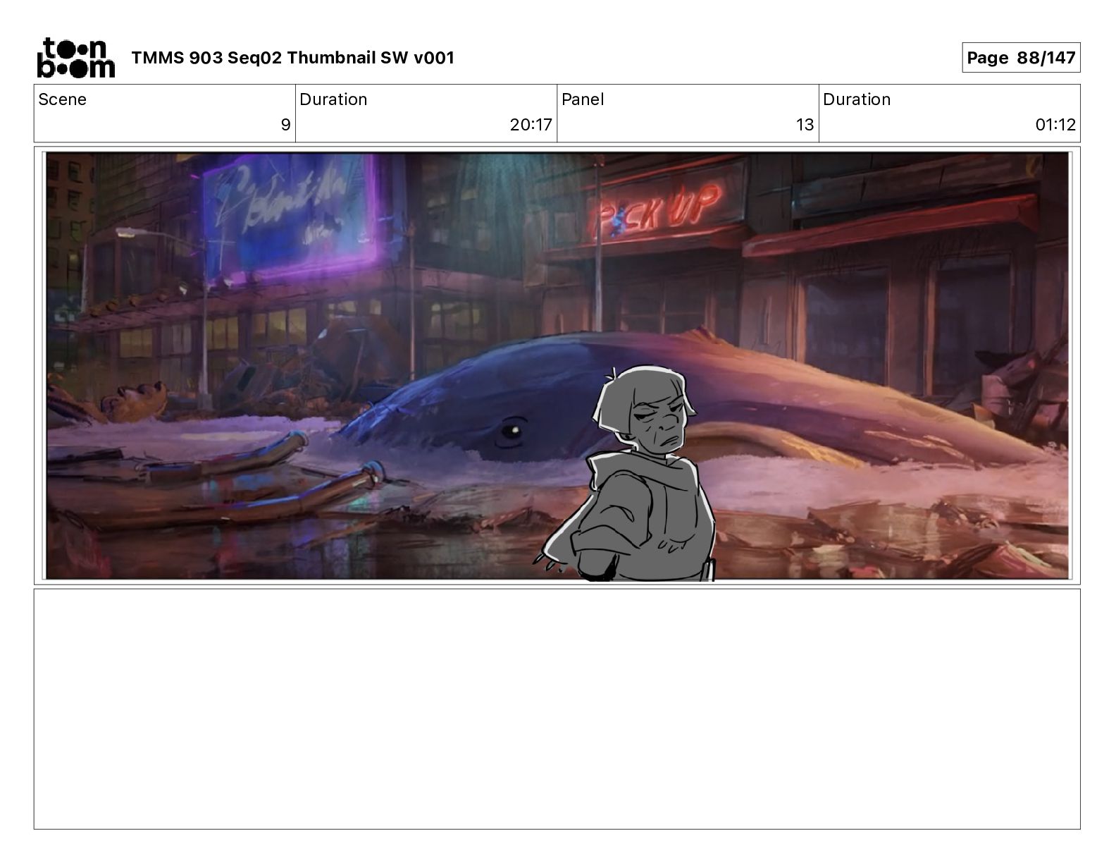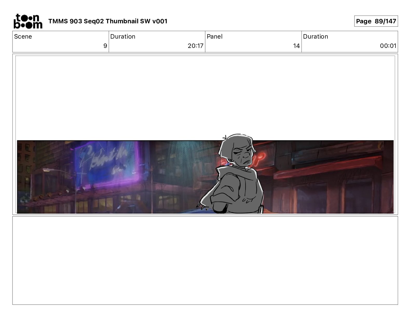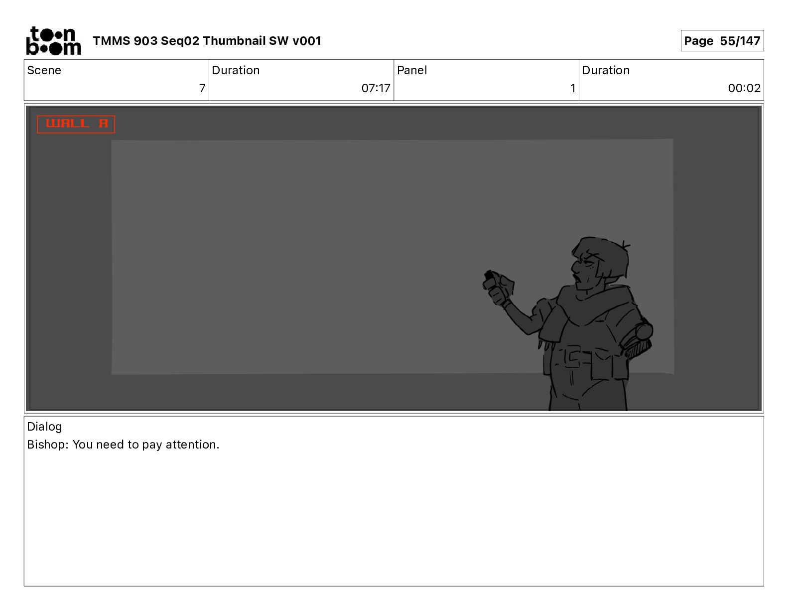 Dialog Mikey: It's not that secret, I found it on the internet. There's a giant hundred foot tall robot right behind that wall. TMMS 903 Seq02 Thumbnail SW v001 Page 20/147