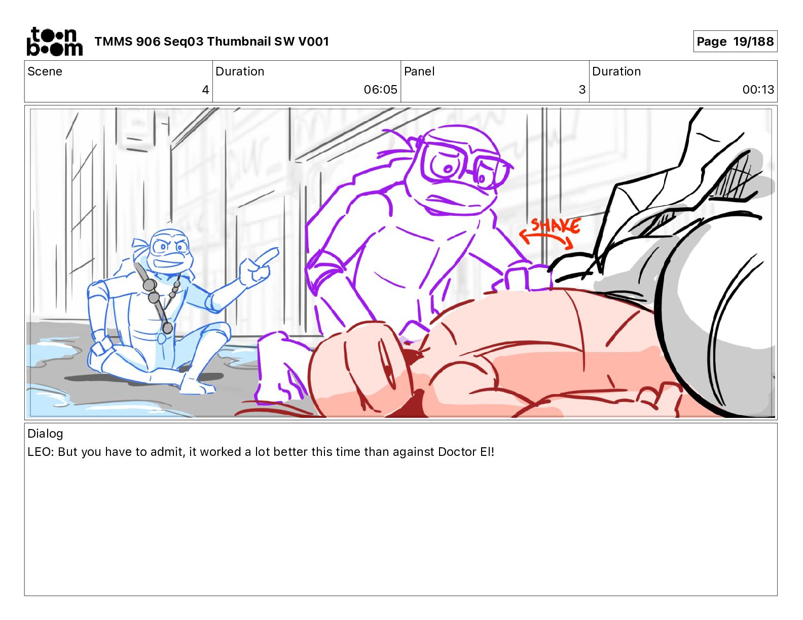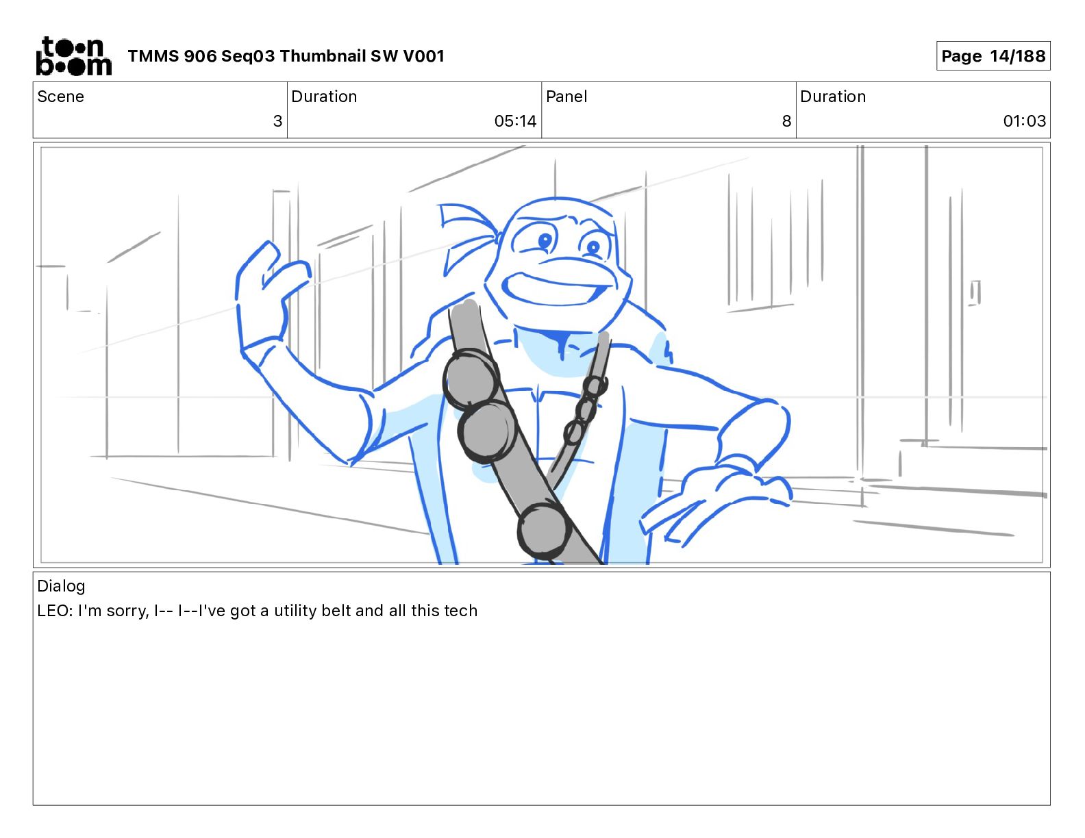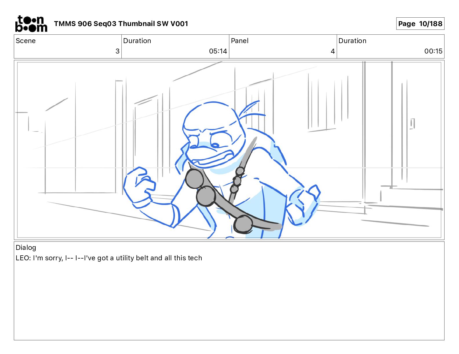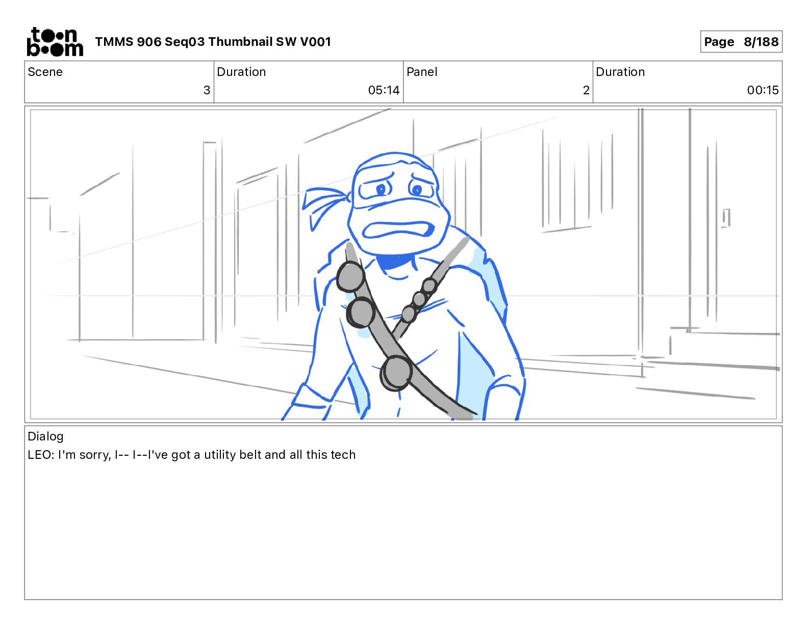 Dialog LEO (O.S.): I said I was sorry! TMMS 906 Seq03 Thumbnail SW V001 Page 158/188